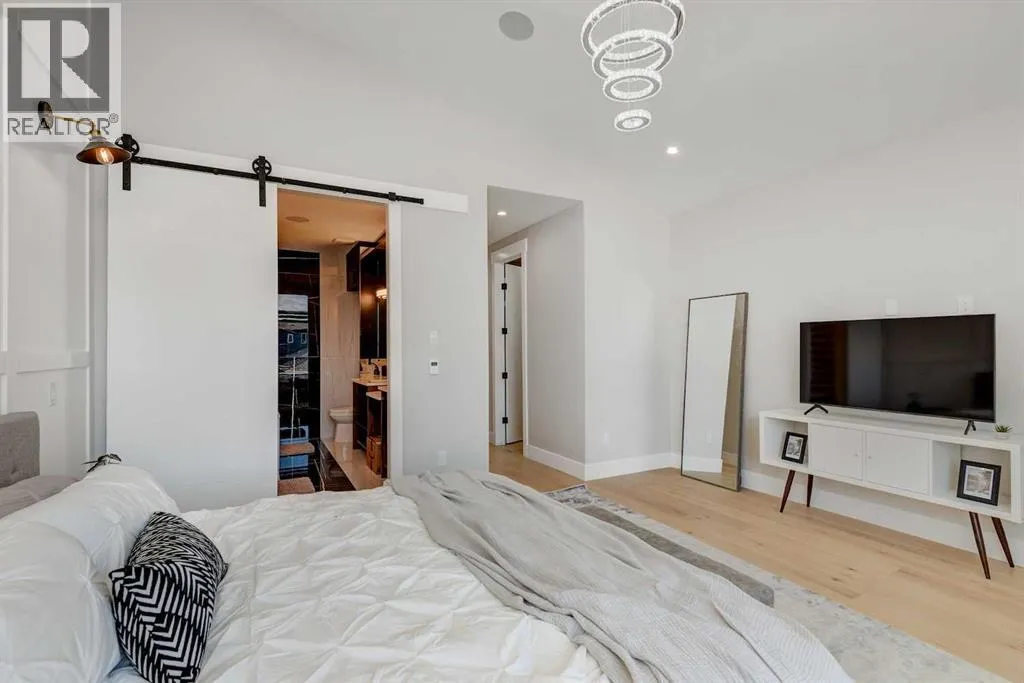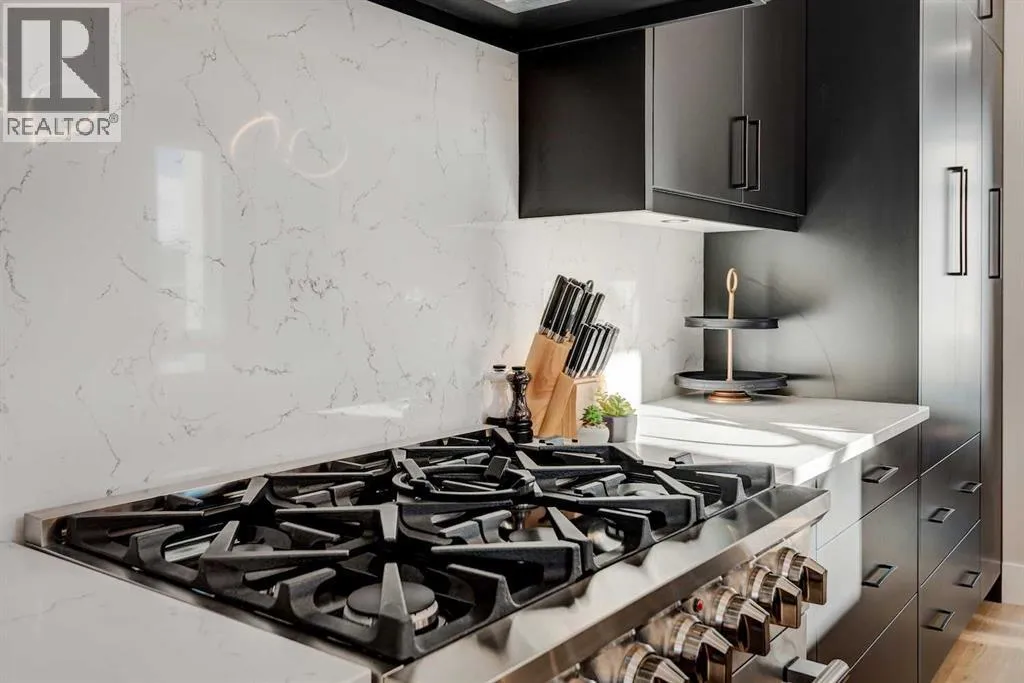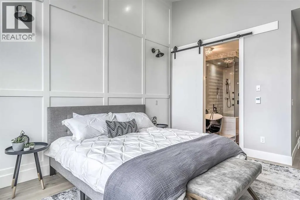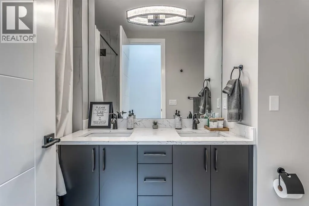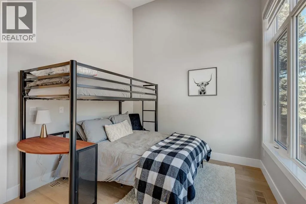 An exceptional opportunity to own a fully finished detached infill offering 3,178 sqft of refined living space, currently operating as a successful Airbnb and offered fully furnished with all décor and contents includedâa truly turnkey investment or effortless move-in opportunity. Designed with striking contemporary style and everyday functionality, this home impresses from the moment you arrive. The main level features an open, light-filled layout ideal for entertaining and daily living. A private main-floor office showcases a statement feature wall and elegant dual-sided fireplace, creating an inspiring work-from-home space. The heart of the home is the chefâs kitchen, complete with an oversized island and prep sink, premium stainless-steel appliances, gas stove, custom hood fan, and counter-depth refrigerator. Adjacent to the kitchen, the dining area is highlighted by a built-in wine display and offers ample space for hosting memorable gatherings. The inviting living room flows seamlessly to the outdoor retreat. Upstairs, enjoy a versatile bonus lounge, three well-appointed bedrooms, and a dedicated laundry room. The primary suite is a true sanctuary, featuring a generous walk-in closet and a spa-inspired five-piece ensuite with heated tile floors, glass-enclosed shower with body jets and dual shower heads (steam-ready), soaker tub, and a refined barn-door entry. Secondary bedrooms include custom wardrobes and share a beautifully finished four-piece bathroom. The bonus room, complete with a wet bar and beverage fridge, can easily convert into an additional bedroom or flexible living space. The fully developed basement rivals the upper levels with a spacious entertainment area featuring a custom wet bar and built-in media unit, perfect for hosting. A dedicated home gym with mirrored walls and luxury vinyl flooring, a large guest bedroom, and a full bathroom complete this level. Step outside to a private backyard oasis designed for year-round enjoyment, highlighted by a luxurious hot tub, ideal for both personal use and short-term rental appeal. Built with meticulous attention to detail, this home includes air conditioning, in-floor heating, and a central vacuum system. Located in the desirable inner-city community of Shaganappi, close to parks, schools, amenities, and the Shaganappi Point CTrain, and within the catchment for Western Canada High School, this property offers a rare blend of luxury living, income potential, and turnkey convenience. Book your private showing today. (id:27476)