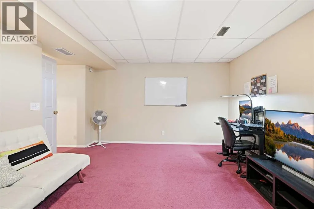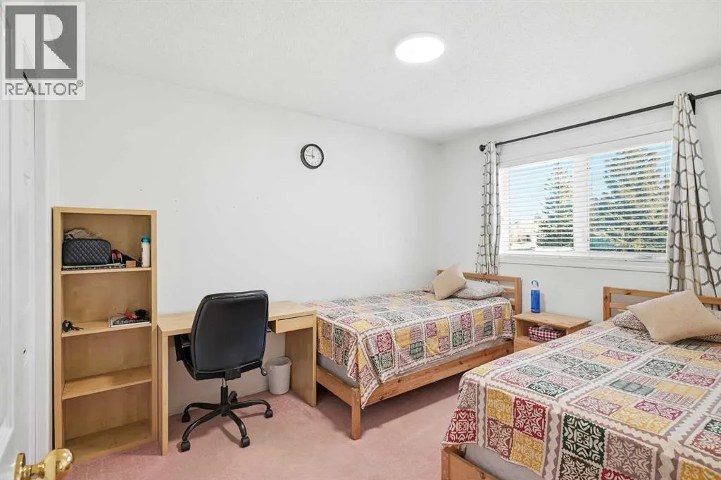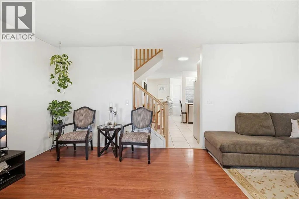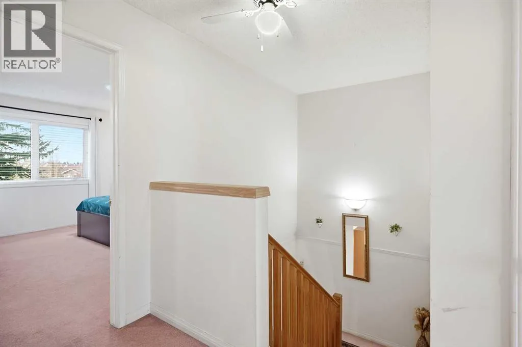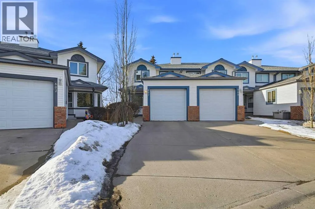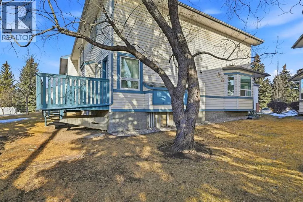 End-Unit Townhome in Quiet Citadel | Across from Park | Attached Garage. This well-maintained end-unit townhouse is located in a quiet Citadel townhouse complex, directly across from a park. The main level features a spacious kitchen with eating area, a bright living room with cozy gas fireplace, and access to a large rear deck and backyard, ideal for outdoor enjoyment. Upstairs offers a generous primary bedroom with walk-in closet and 4-piece ensuite, plus two additional bedrooms and another full bathroom. The finished basement includes a large recreation room, separate laundry area, and ample storage. Enjoy the convenience of a 22-ft single attached garage that comfortably fits an SUV, along with plenty of visitor parking. Original kitchen and baths have been well maintained, offering a move-in ready home with plenty of potential. An excellent opportunity in a desirable NW community. (id:27476)
