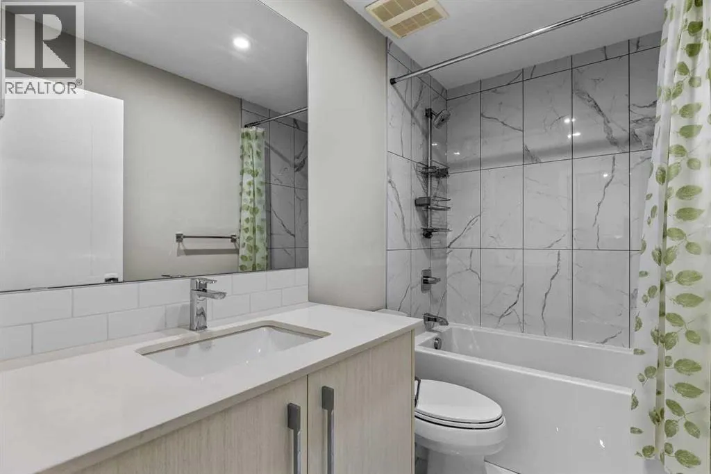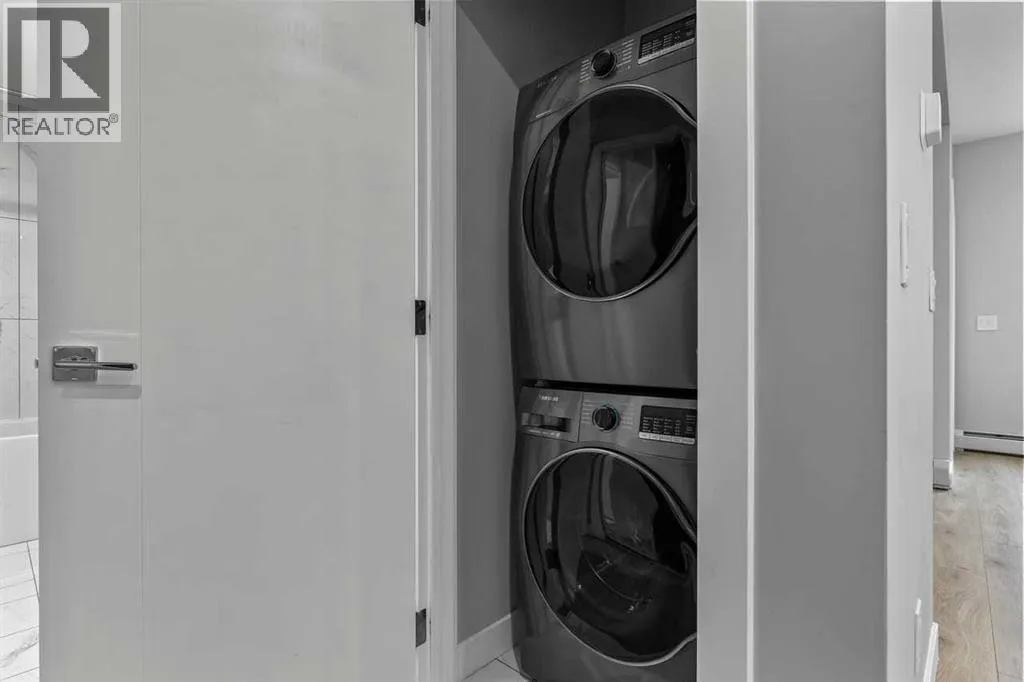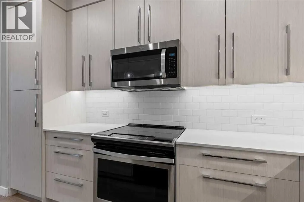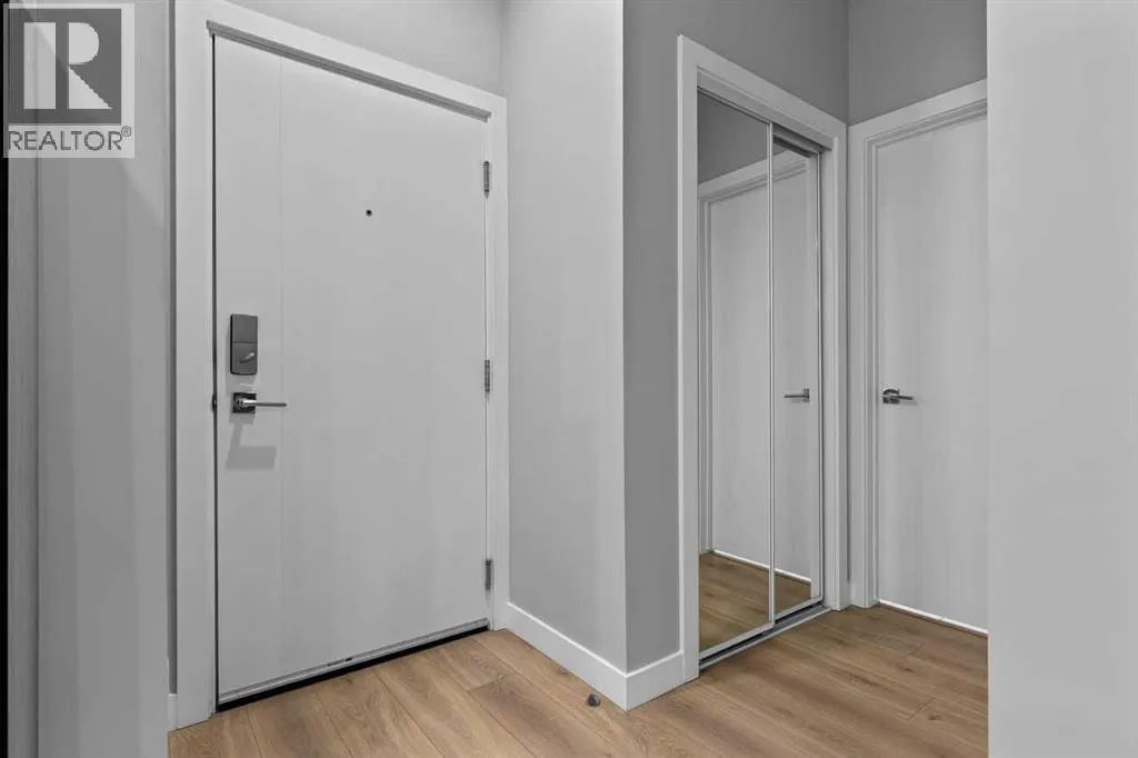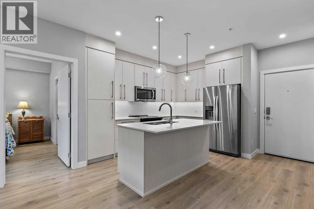 Catch the open house Valentine's Day Feb 14: 1-3pm or Sunday Feb 15: 4-6pm. Enjoy maintenance-free living in this spacious one-bedroom condo in the sought-after 55+ Maple building, ideally located in Calgaryâs vibrant University District. Built by Truman Homes, Maple offers a secure, social community with luxury finishes, perfect for those ready to simplify life without sacrificing lifestyle.Unit 107 is a convenient main-floor condo with direct access to the covered patio and walking paths; ideal for easy comings and goings or running a quick errand. This 728 sq ft home features an open-concept floorplan with 9-foot ceilings, engineered hardwood flooring, and large triple pane picturesque windows. The modern kitchen includes quartz countertops, stylish cabinetry, a designer backsplash, and stainless steel appliances. The large island is perfect for casual meals or prepping a beautiful dinner at home. The dining area is spacious and also great for hosting family visits or playing cards with the grandchildren. The kitchen and dining area open to the living room, creating a comfortable space to relax at the end of the day. The generously sized bedroom includes a walk-through closet and a spacious 4-piece ensuite. A second full bathroom adds extra convenience for any guests. This unit also includes in-suite laundry and your own titled, heated underground parking stall.The Maple building includes a heated underground parkade, plenty of visitor parking, elevators, and thoughtful âaging in placeâ features such as wide hallways, accessible entrances, and automated doors. Residents will also enjoy a beautifully landscaped courtyard with inviting seating areas.Living in the University District makes everyday life incredibly convenient. From groceries and banking to coffee dates and evening movies, everything is close by. Save-On-Foods, Staples, Shoppers Drug Mart, Cineplex, COBS Bread, Monogram Coffee, Market Mall, and a variety of cafés, restaurants, and shops along Main Street are all within easy walking distance. With more amenities opening all the time, the University District continues to stand out as one of Calgaryâs most vibrant and walkable communities.Next door is Cambridge Manor, a neighbouring residence offering independent and supportive living services. Maple residents are able to access select lifestyle and recreation amenities at Cambridge, including a bistro café, fitness centre, and a variety of fitness classes. A hair salon is also available, along with organized social activities such as coffee club, card games, crib club, drum circles, concerts, movies and documentaries, and special holiday meals.Whether youâre looking for a lock-and-leave lifestyle or a welcoming community to enjoy year-round, Unit 107 at Maple is an outstanding opportunity in one of Calgaryâs best urban neighbourhoods. (id:27476)