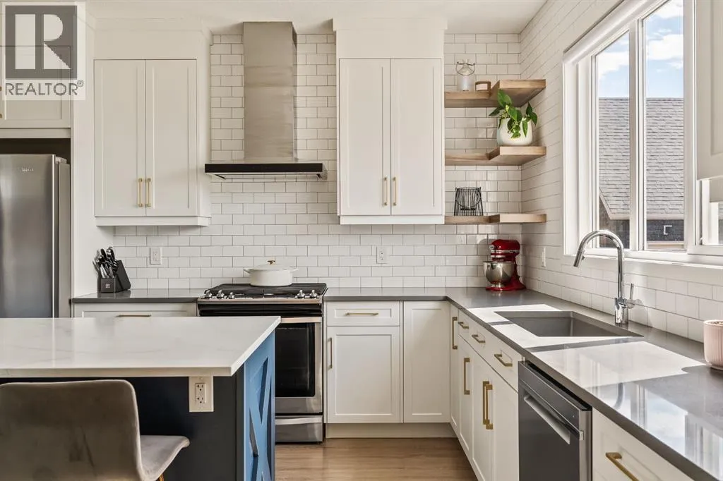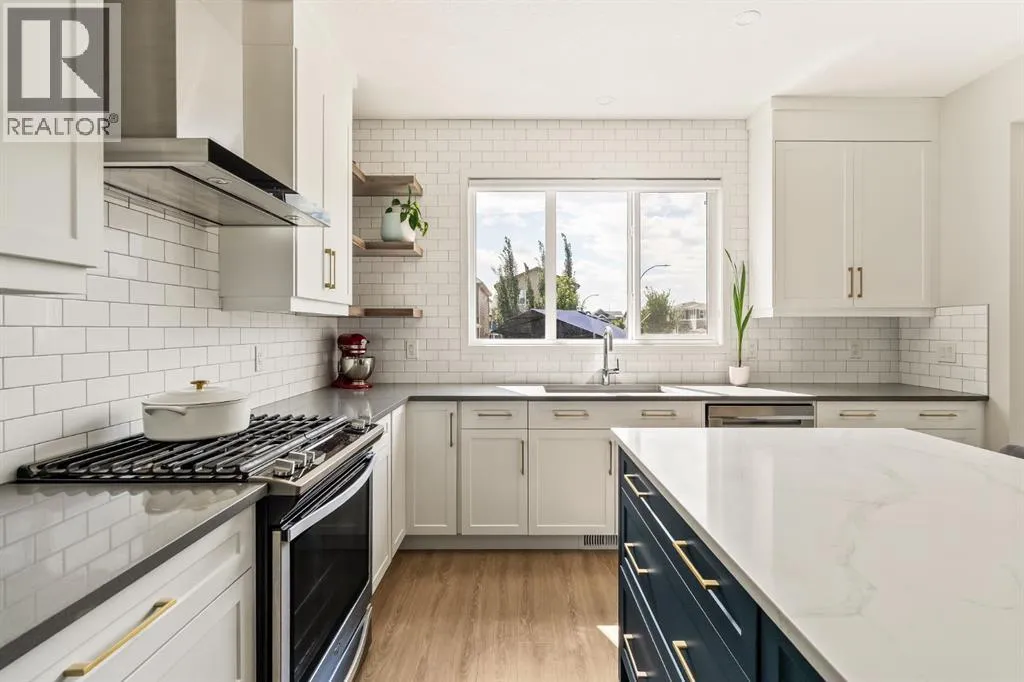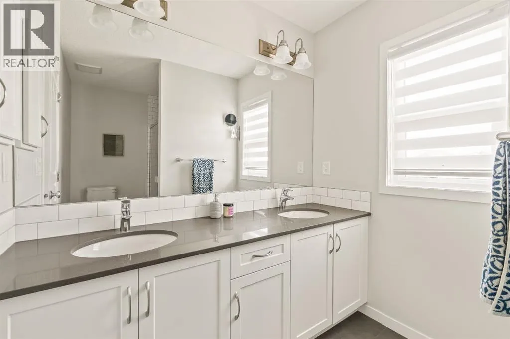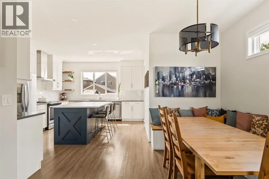 Welcome Home to this exceptional 4-bedroom, 3.5-bathroom laned home ideally situated on a corner lot directly across from a large green space and playground in the vibrant community of Seton. With a charming front porch, extensive upgrades throughout and a professionally finished basement, this home offers comfort, style, and functionality year-round. The open-concept main floor is filled with natural light from oversized windows and finished with luxury vinyl plank flooring throughout. The inviting living room features a cozy gas fireplace, seamlessly flowing into the dining area complete with custom built-in seatingâperfect for everyday living and entertaining. The fully upgraded kitchen is a true showstopper, featuring extended-height shaker cabinets, quartz countertops, a central island, silgranite sink, gas range, range hood fan, corner pantry, topped with floating shelves that add both style and function. At the back of the home, the custom mudroom with built-ins and a large walk-in closet provides exceptional storage and organization. Upstairs, youâll find a spacious bonus room, three generous bedrooms as well as a convenient upper-level laundry room. The primary suite is a relaxing retreat, complete with dual sinks with quartz counters and a fully tiled walk-in shower. The professionally developed basement adds incredible versatility, featuring a striking decorative brick wall, wet bar, expansive recreation space, complete with a large fourth bedroom that flows into a Jack-and-Jill bathroom showcasing a stand-up shower. An abundance of storage, water softener and air conditioning further enhances the homeâs functionality. Step outside to the southwest-facing backyard, designed for low maintenance and maximum enjoyment, highlighted by a poured concrete patio, fully landscaped with two storage sheds and plenty of space for a future detached garageâall beautifully accented by custom outdoor gemstone lighting, perfect for year-round curb appeal and entertaining. Enjoy an unbeatable lifestyle, where residents enjoy close proximity to South Health Campus, excellent schools, shopping, dining, and everyday conveniences. Setonâs brand new 14,000sf recreational building, known as The Block, offering a splash park, casual skating, hockey rink, basket ball nets, playground gymnasium, a fire pit with picnic shelters and much more! Extensive pathways, parks, and green spaces encourage an active, connected way of life. With easy access to major roadways and transit, Seton is ideal for families and professionals alike. This stunning home delivers exceptional upgrades, a prime location, and the best of modern living in one of Calgaryâs most vibrant communities. (id:27476)