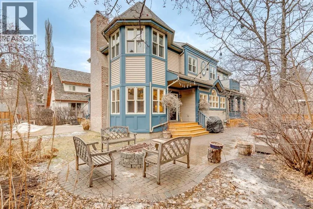 Perfectly positioned in the heart of Elbow Park just steps from the Glencoe Club, this distinguished Queen Anneâstyle residence offers a rare opportunity to plant roots in one of Calgaryâs most cherished family neighbourhoods. Set on an exceptional oversized lot with coveted 75â frontage and a sun-drenched west-facing backyard, this is a home where children can walk to social activities, swimming, skating, or tennis lessons at the Club. This is a home for generations to gather for the holidays, celebrations, and everyday living. Rich in warmth and architectural authenticity, the home was masterfully built in 1993 to reflect and respect the historic charm of Elbow Park, showcasing timeless design through its classic center hall plan, gabled rooflines, wrap-around veranda, and signature hexagonal tower feature. Inside youâll find extensive wainscotting, crown moulding, decorative tile-work, and elegant 9â ceilings. The main floor unfolds beautifully for both entertaining and daily life, with a living room anchored by a wood-burning fireplace and charming bay window, and a gracious dining room across the entry. The kitchen presents remarkable opportunity with its stunning wall of south-facing arched windows, premium Wolf double oven range, Sub-Zero refrigerator, and generous cabinetry, all offering exceptional space and flow for future personalization. A sun-filled breakfast nook wrapped in windows within the tower opens to a cozy family room with built-in bookcases and brick fireplace, creating a natural gathering space. A generous, quiet office with clerestory window, a powder room, and practical mudroom complete the level. Upstairs, a flexible lounge or homework area supports busy family life, while the expansive primary retreat offers a private sanctuary with a fireplace, dual walk-in closets, and a breathtaking turret sitting area with south and west views beneath a vaulted hexagonal ceiling. Three additional spacious bedrooms, full bath, and upper laundry room en hance functionality for growing families. The fully developed lower level adds approximately 1,535 square feet of versatile living space including a recreation area, media room and built in cabinets and bookcases. A fifth bedroom is an ideal room for guests, teens, or live-in support, and the bathroom has a secondary laundry. With refinished hardwood floors, new carpeting, and Poly-B plumbing already removed, this home offers the rare advantage of being move-in ready while allowing thoughtful updates over time, a far easier and faster process than building new in this premier location. Surrounded by mature trees and exceptional outdoor living spaces including a large south patio with fire-pit, lawn, side driveway, and a heated triple detached garage, this is a legacy property where lifestyle, community, and opportunity come together beautifully. (id:27476)