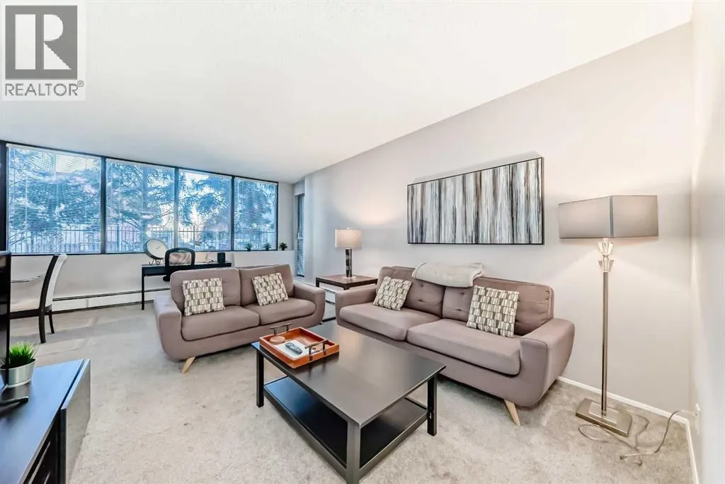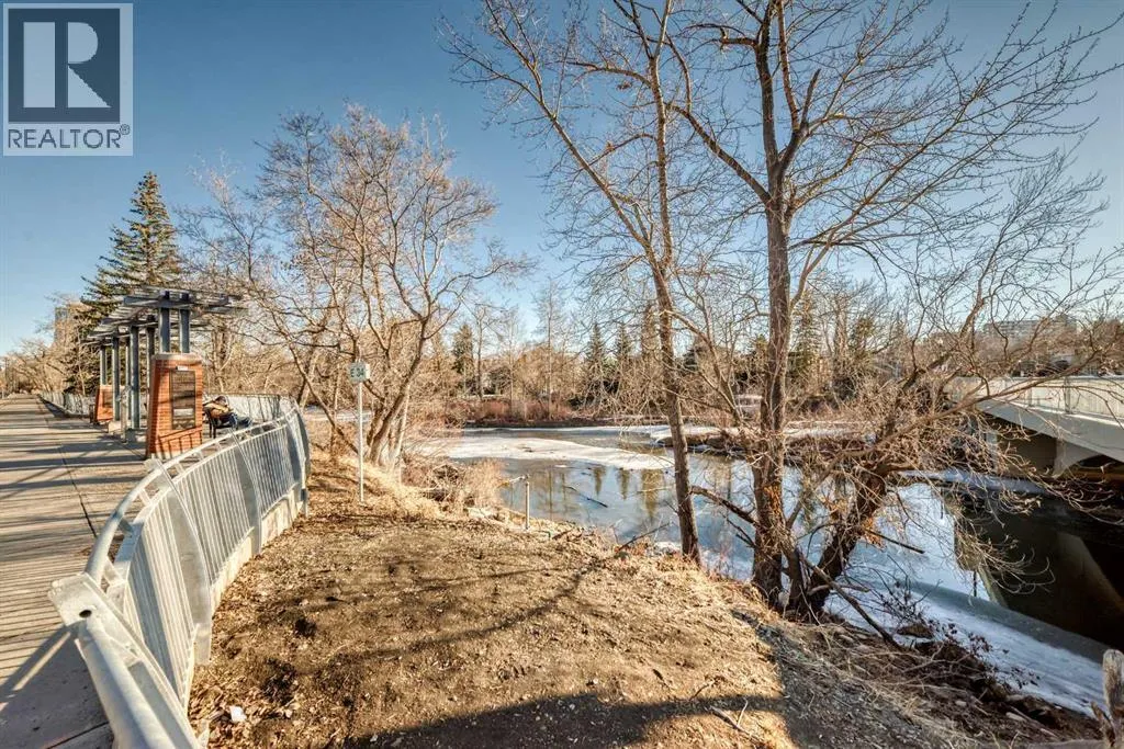 Spacious corner unit: 2 bedroom plus den with 2 full baths in Mission's prestigious Roxboro House! This well-maintained suite offers cityscape vistas and an open, bright layout. From the balcony and main living areas, you'll be greeted with a sweeping view of the city skyline along with some picturesque westerly scenes. Kitchen includes a desk area and a brand new refrigerator. In the generous primary bedroom, the cherry on top is the view of the river valley and the Elbow River. While it's lovely in the winter, it's a gorgeous green view to wake up to in the summer. At almost 1,500 sqft, all the rooms are amply sized and both bedrooms have double closets. The den is large enough to be converted to a third bedroom should you wish. Features in-suite storage, plus an assigned storage locker (#115 in the basement) so you have room for everything. Large parking stall in the heated parkade (#145) plus all the building's luxury facilities: huge, beautifully landscaped 4th floor sundeck, pool, hot tub, sauna and yoga area, party room, gym, games room, hobby workroom, guest suite, visitor parking, 24 hour security staff, and bike storage! Roxboro House is undergoing hallway modernization and the 6th floor has already been upgraded - the new look is elegant and stylish. This locale is perfect for walking or biking as you're conveniently near the Elbow River pathway, groceries, and amenities in the heart of Mission and 4th Street. Utilities, including electricity, are in the condo fee (except cable/phone). (id:27476)