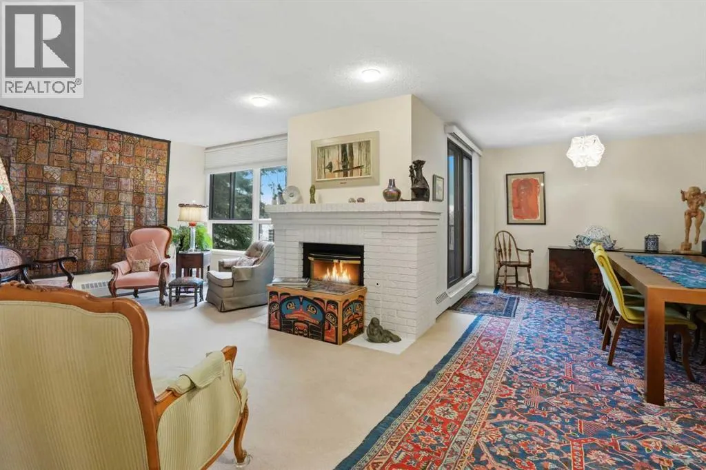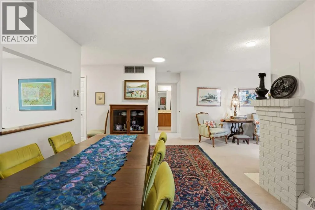 Welcome to Bayshore Park, a place where easy living and everyday comfort come together. Step inside this one bedroom, two bathroom home and imagine settling into a space designed for both relaxation and connection. The open layout invites you in, anchored by a large kitchen with abundant cabinetry and a convenient pass through breakfast bar, and additional eating nook; perfect for morning coffee, casual meals, or hosting friends.The expansive dining area offers exceptional space to host family and friends, flowing seamlessly into the open living room, where a cozy gas fireplace creates warmth and comfort. Patio doors extend the living space to a private balcony, perfect for relaxing with a book or enjoying the changing seasons. The primary bedroom feels like a true sanctuary, featuring a large window, generous closet space including a walk-in, and a four-piece ensuite for everyday comfort. A large in-suite laundry room and a convenient two-piece guest bath complete the layout, offering the practicality homeowners appreciate.This home also includes an assigned indoor parking stall and a separate storage locker, adding ease and peace of mind. Bayshore Park is a well maintained, adult only (25+) community known for its welcoming atmosphere and impressive amenities. Residents enjoy access to a fitness room complete with change room and sauna, a library, games room- with shuffleboard and a pool table, a boardroom, a workshop and an expansive lobby with multiple social spaces, perfect for staying active and connected. The location is exceptional, offering quick access to transit and shopping, and just steps from the Glenmore Reservoir, Glenmore Sailing Club, and South Glenmore Park, where scenic walking paths and outdoor activities are part of daily life.This is more than a condo, itâs a place to settle in, personalize, and truly enjoy the lifestyle that comes with calling Bayshore Park home. (id:27476)