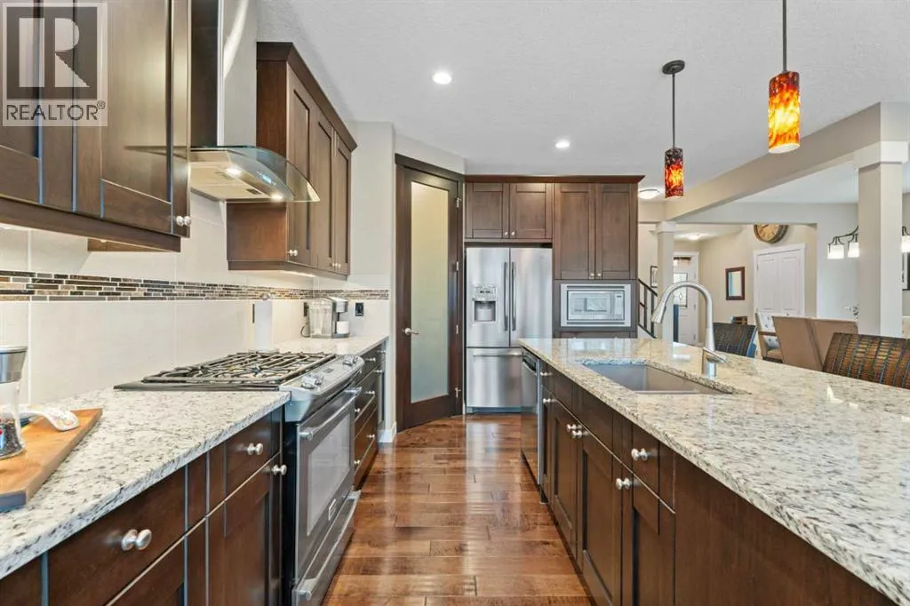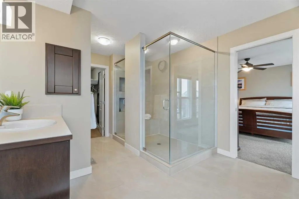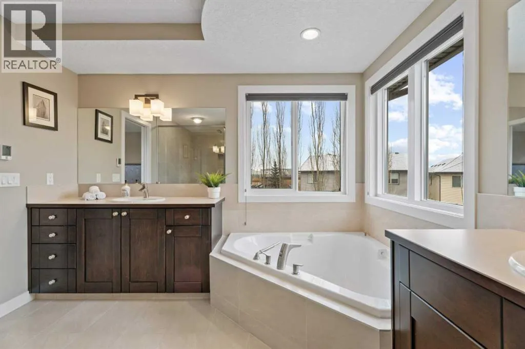 **OPEN HOUSE SUNDAY, FEB 15 12PM-2PM**Step inside this stunning family home in Calgaryâs sought after Cranston community and immediately feel the warmth and flow of a space designed for both comfort and style. Sunlight floods the open concept living area, highlighting the cozy fireplace and the seamless connection to the modern kitchen, complete with sleek cabinetry, plenty of counter space, and a bright breakfast nook perfect for casual mornings. The formal dining area is ready for family dinners or entertaining guests, while a convenient main floor 2 pce bath adds everyday ease. Upstairs, discover your private sanctuary in the primary suite, featuring a luxurious 5-piece ensuite and a spacious walk-in closet. Two additional bedrooms share a beautifully appointed 4-piece ensuite, while the second-floor family room invites endless possibilities, from a movie nights haven, to a home office, or the ultimate man cave. Even the laundry is upstairs, thoughtfully placed for convenience along with bench seating with storage, built in desk and plenty of storage. The unfinished basement, nearly 800 sq ft is a blank canvas for your imagination, envision a home theater, playroom, or fitness area tailored to your lifestyle. Step outside and enjoy the nearly .18 of an acre private backyard oasis, surrounded by mature trees and offering a fire pit and charming BBQ shack, a perfect setting for summer evenings, entertaining friends, or quiet weekends relaxing in your own space.Living in Cranston means access to a vibrant community filled with parks, playgrounds, walking paths, and proximity to the Bow River. Schools, shopping, and amenities are just minutes away, making everyday life effortless and enjoyable. This home is more than just a place to live, itâs a canvas for your familyâs memories, celebrations, and everyday joys. With ample space, modern features, and a location that truly has it all, this is the perfect home to grow, entertain, and thrive. (id:27476)