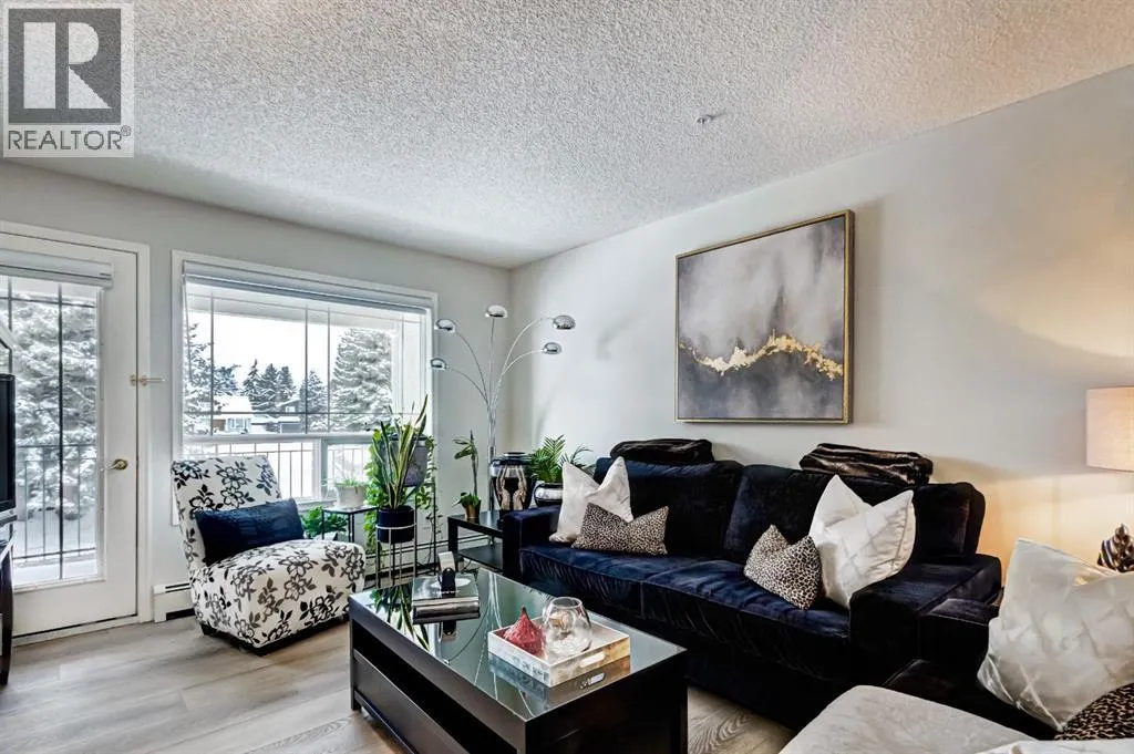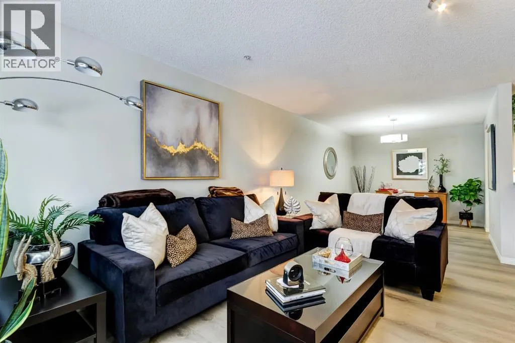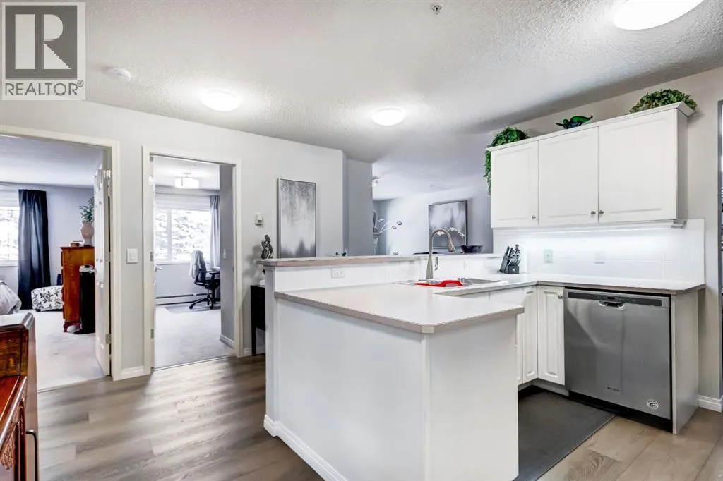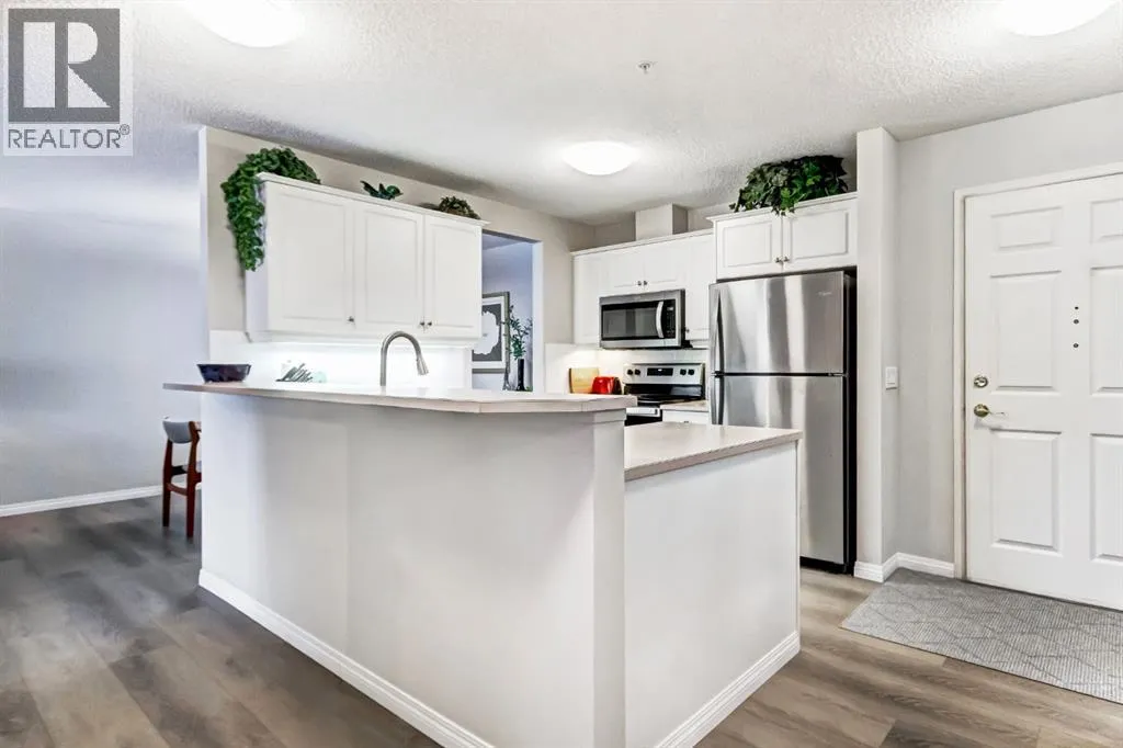 IMMACULATE 2 bedroom, 2 bathroom condominium located in the sought after Courtyards of West Park, Palliser. This UPDATED unit with top of the line luxury vinyl flooring features an open concept plan, combined living/dining area with a cozy gas fireplace that walks out to a large West facing balcony. The open Kitchen features stainless steel appliances and overlooks living/dining area that is great for entertaining. Large master suite complete with 4 piece ensuite bathroom. Spacious second bedroom with additional 3 piece bathroom as well as in-suite laundry. Building amenities include wheel chair access, elevator, secure front door entry, bike storage, and an additional residence storage room for items like winter tires. The complex offers fantastic amenities, including a no cost to book social room with a full kitchen for gatherings, a quiet courtyard for summer evenings, a sunroom, and a guest suite thatâs only $75 a night plus $50 cleaning fee. The unit also has titled, underground, heated parking # 89 / Storage #36. The Courtyards is a first-class, adult oriented complex built by Intrawest located just steps from Glenmore Reservoir and close to Glenmore Landing shopping, the location is unbeatable. This well-managed building has it all. Plus, thereâs ample parking for guests, including street parking. This condo checks all the boxes and must be seen to be fully appreciated! (id:27476)