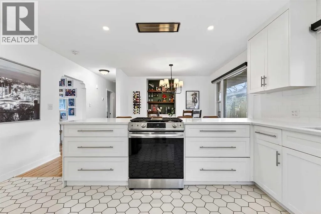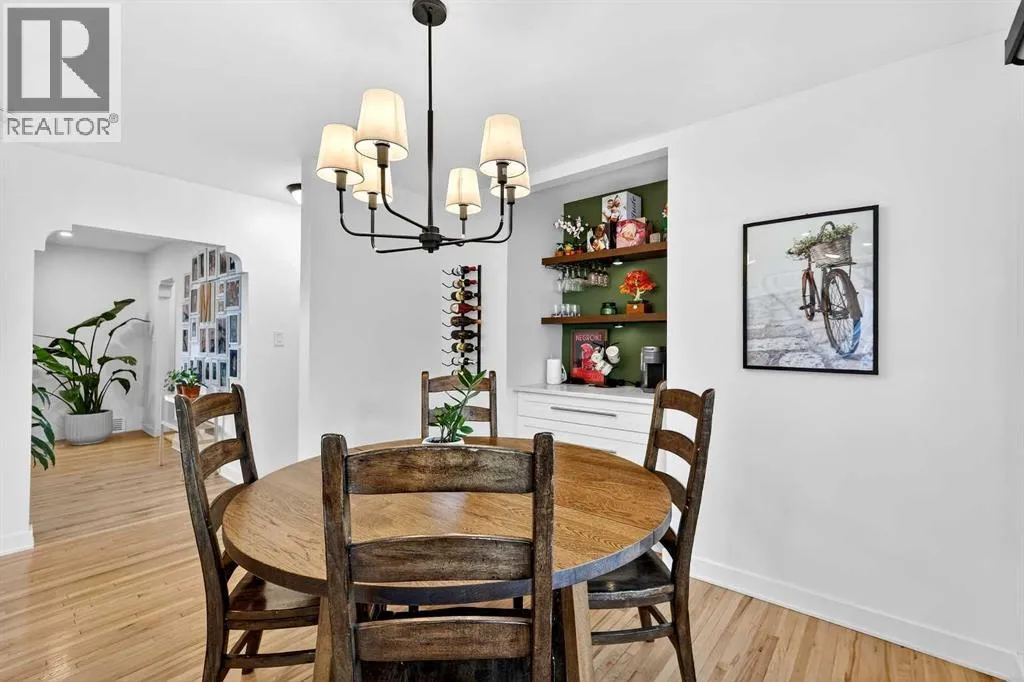 Welcome to this beautiful updated bungalow that blends preserved character with extensive modern renovations, ideally located on a quite street and set on a large corner lot in a mature , highly desirable neighbour. Offering exceptional indoor and outdoor living, this move-in-ready home is perfectly suited for families, professionals and those who love to entertain. The functional layout includes 3 bedrooms + 2 baths with 2 bedrooms up + 1 down allowing for a primary suite on either level. Original character doors and classic archways have been thoughtfully maintained adding warmth and architectural charm while complementing the modern updates. The bright main living space flows seamlessly into a custom kitchen featuring featuring quartz countertops custom cabinetry, spacious peninsula with seating for 5, gas range, stainless steel appliances, built-in coffee bar, and custom kitchen bench seating. Quartz counters in both baths pair with the tasteful black fixtures + updated finishing. Fully redeveloped basement with custom built in entertainment centre (ideal for movie nights + hosting guests), new plush carpeting + new windows. Extensive upgrades: new furnace, hot water tank, water softener, electrical, plumbing, attic insolation, gutters, upgrade tile, refinished hard wood floors, new window coverings + top quality materials throughout. Garage and storage options are exceptional, with a single attached garage + carport for a mud room, yoga and storage area. A double detached garage providing room for vehicles and equipment. Outdoor living is a true highlight with tasteful landscaping, private side yard framed by mature tree and perennials, professionally restored exterior fireplace + cabana area for entertaining. Expansive front grassed lawn on this corner lot with additional green space to enjoy. Ideally located minutes from downtown, walking distance to Marda Loop + close to Mount Royal University.This home offers a rare combination of character, modern upgrade s, flexible living space + an unbeatable inner city location. (id:27476)