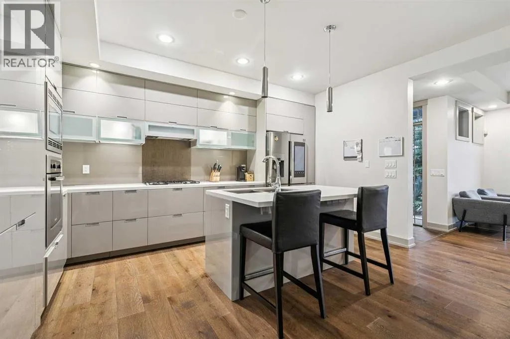 * SEE VIDEO * OPEN HOUSE Sunday, Feb. 15 2-4PM * Located on a prime corner lot in the heart of Altadore, just steps from schools, parks, shops, cafés, and restaurants, this stunning home offers 3,031 sq ft of thoughtfully designed living space with 4 bedrooms plus a loft and 4 bathrooms â delivering space, convenience, and an unbeatable inner-city lifestyle.The main floor showcases engineered hardwood throughout, featuring a spacious front living room, separate dining area, and a rear family room highlighted by a striking gas fireplace with porcelain tile surround. The high-end kitchen is designed to impress with full-height high-gloss cabinetry with BLUM soft-close hinges and slideouts, quartz countertops, island seating, exceptional storage, and premium appliances including a Bosch wall oven, wall microwave, dishwasher, Samsung touchscreen fridge, and gas range. A custom powder room vanity completes the main level.Upstairs, the primary suite is a true retreat with a luxurious 5-piece ensuite offering in-floor heating, dual sinks, spa tub, separate shower, and water closet. Two additional bedrooms, a 4-piece bathroom, and convenient laundry room complete the second level. The bright and open third-level loft is ideal for a home office, studio, or bonus living space.The fully developed basement features a large rec room, bedroom, and 4-piece bathroom, providing even more versatile living space. Notable upgrades include central air conditioning, aggregate walkways, a double detached garage, and landscaping.Set along charming tree-lined streets with walkable access to Marda Loop and quick proximity to downtown, this exceptional home is a must-see. Book your private showing today! (id:27476)