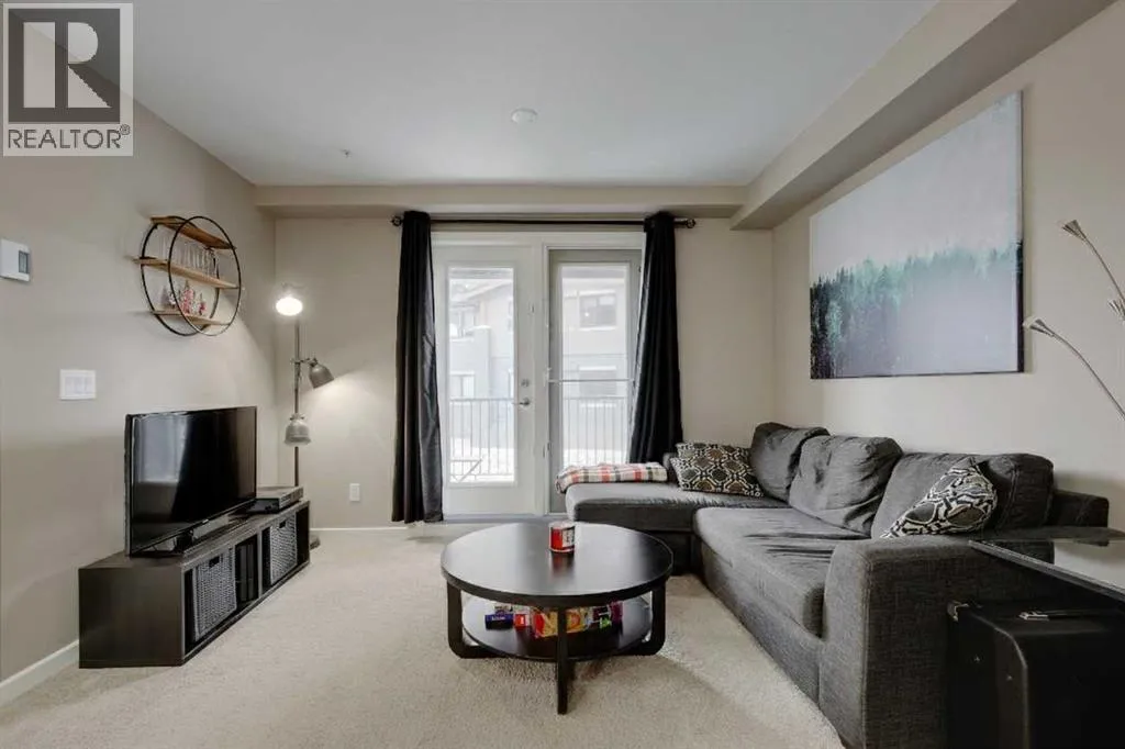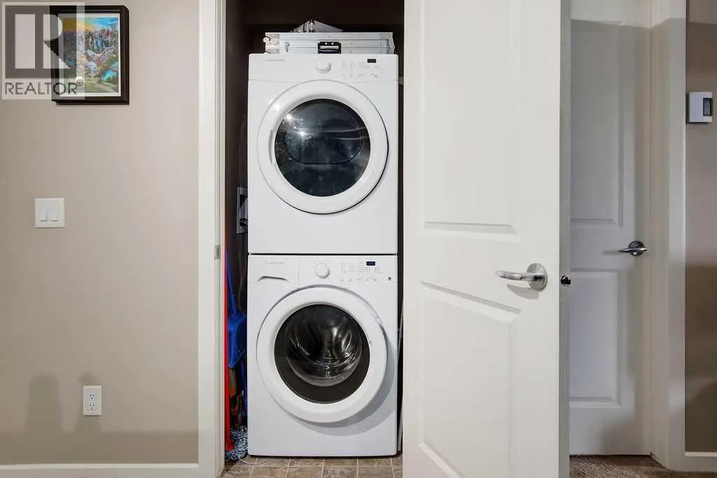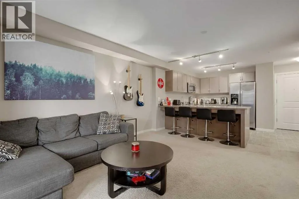 Beautifully appointed 1 bedroom unit in a quiet adult building in the Kincora Summit complex. Unit offers an open functional floor plan, upgraded appliance package and full-sized washer dryer. The u-shaped kitchen is exceptionally functional with ample counterspace and storage. Additional features in the kitchen include built-in microwave, breakfast bar and ceiling height cabinetry. The open concept living area provides a fantastic space for relaxing or entertaining with access to the SW facing LARGE 120 sq ft patio with BBQ gas line. Bedroom is a great size and offers a walk-through closet and cheater ensuite. Unit is uniquely located on the second floor and situated between a stairwell and elevator allowing a buffer from your neighbours! Enjoy low condo fees and efficient in floor heating in this safe and secure building. Excellent location close to all major traffic routes the airport and a quick walk to the newly constructed shopping plaza for all your shopping needs. (id:27476)