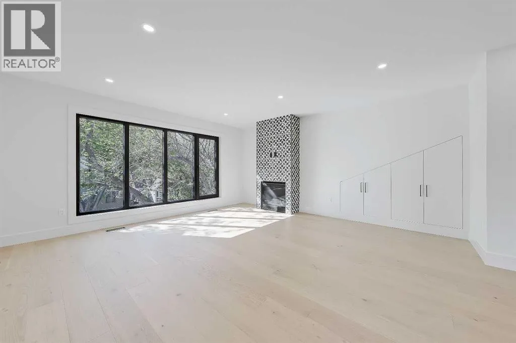 Tile detailing, modern finishes, designer lighting package, upgraded German-made KULU windows & doorsâ¦itâs everything youâre looking for in a luxury 3-STOREY SEMI-DETACHED INFILL! Now MOVE-IN READY, this designer home is located just off 26th Ave in the heart of Killarney â the ideal location for your new family home! The main floor opens into a welcoming foyer w/ built-in closet & bench, offering views into the spacious living room w/ a gas fireplace w/ full-height tile, as well as a stunning wood-panelled feature wall. Beautiful oak hardwood flooring leads you into the open-concept kitchen â fully equipped w/ an oversized island w/ quartz countertop, timeless shaker-style cabinetry w/ numerous lower drawers, & a contemporary flat-panel built-in cabinetry pantry. The designer kitchen is nicely finished w/ a full stainless steel appliance package, complete w/ a panelled French door refrigerator, a Dacor double wall oven, a gas cooktop w/ pot filler, & a built-in dishwasher. The custom built-ins continue into the dedicated dining room, w/ open shelving & lower cabinets w/ quartz counter for everyday convenience. Step out onto the back deck through the rear mudroom, complete w/ a built-in bench, coat cabinet, & tile flooring. Before you head upstairs, the stylish powder room is tucked away w/ a beautiful skirted vanity & vessel sink. Up the bright stairwell w/ glass wall awaits the primary suite â as sleek & modern as the rest of the home, w/ oversized windows, a private balcony w/ KULU door, & an extra-large walk-in closet! The chic ensuite features a dual vanity w/ a quartz countertop & a bank of lower drawers, a freestanding soaker tub, & a stand-up shower w/ full glass walls, rain showerhead, & bench. Two secondary bedrooms share the main 4-pc bath & the laundry room features a sink, upper cabinetry, hanging rod, tile backsplash, & a folding counter. A luxury home isnât complete without a THIRD FLOOR LOFT, & this space has not been overlooked. More oversized windo ws bring in lots of natural light, shining across a spacious rec area w/ gas fireplace, full wet bar w/ extended quartz countertop, bar sink, & statement open shelving. A lovely sitting area w/ built-in desk overlooks the COVERED BALCONY & of course, thereâs a full bath w/ fully tiled shower, too. The living space continues into the basement, w/ a full wet bar w/ quartz island, dual basin sink, & a designer tile floor, w/ a large family room, built-in media centre, a glass walled home gym w/ sports flooring, a 4th bedroom, & a full 4-pc bath. Killarney offers the perfect balance of community & convenience. From here, youâre within walking distance to Glendale School, Killarney School, & Bishop Carroll High. Westbrook Mall & the CTrain are only 5 minutes away, making downtown access effortless. The Killarney Aquatic & Recreation Centre, Optimist Athletic Park, & Shaganappi Golf Course are all nearby. Call to view today! (id:27476)