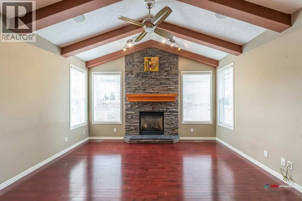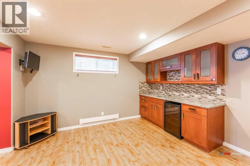 Open House Feb 14th 2-4pm! Welcome to this beautifully maintained, original-owner home offering over 3,000 sq ft of developed living space in the highly sought-after, family-friendly community of Kincora. Ideally located on a quiet street just steps from scenic green space, this spacious 4-bedroom residence combines comfort, functionality, and thoughtful upgrades throughout.The main floor features an inviting open-concept layout with a soaring vaulted ceiling in the living room, highlighted by a stunning floor-to-ceiling stone-faced fireplace and decorative ceiling beams. The chef-inspired kitchen boasts granite countertops, maple cabinetry, a raised breakfast bar, corner pantry, and newer stainless steel appliancesâincluding a refrigerator and electric stove replaced within the last two years. A bright and expansive breakfast nook opens onto a newly painted oversized deck with a BBQ gas line, perfect for outdoor entertaining.A generously sized main floor office with French doors, large window, and hardwood flooring provides an ideal work-from-home space. A convenient 2-piece powder room and laundry room complete the main level.Upstairs, a sun-filled bonus room with corner windows offers serene ravine views. The spacious primary suite includes a luxurious 5-piece ensuite with a relaxing corner soaker tub. Two additional bedrooms are thoughtfully positioned for privacy and share a 4-piece bathroom.The professionally developed basement is a true showstopperâdesigned for entertaining with a large recreation area, wet bar with wine fridge, and a full home theatre system. A fourth bedroom and another full 4-piece bathroom complete this level.Additional features include hardwood flooring on the main, upgraded underlay on the stairs, built-in sound system, central vacuum, and extra windows for enhanced natural light. Recent updates include new roof shingles, partial new siding, and a new garage door with windows.Enjoy all that Kincora has to offerâravines, parks, pla ygrounds, and extensive walking/biking pathsâwhile being close to schools, shopping, and with easy access to the airport and the mountains.Donât miss your chance to own this exceptional homeâcontact your favorite REALTOR® today to schedule a private showing! some photos are virtually furnished. (id:27476)