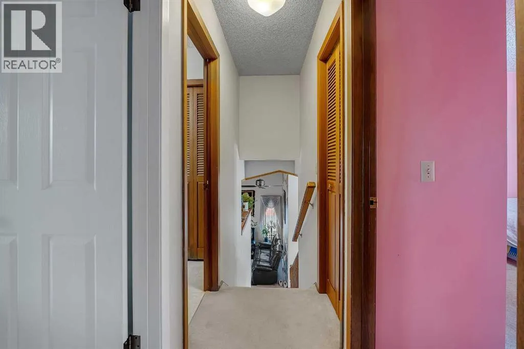 Welcome to this impressive two-storey home in Castleridge, sitting proudly on an oversized corner lot with a front-attached garage an ideal setup for a growing family.The main floor offers incredible space, featuring both a formal living room and a comfortable family room, perfect for everyday living and entertaining. Vaulted ceilings with a warm wood grain finish and skylights flood the home with natural light, creating an airy and inviting atmosphere. The open-concept layout flows seamlessly into a large kitchen, with the dining area thoughtfully positioned between the living spaces for easy access and connection.An added bonus on the main floor is a versatile office or bedroom, bringing the total bedroom count to six.Upstairs, youâll find three generously sized bedrooms and two bathrooms. The oversized, renovated primary bedroom is a true retreat, complete with its own private balcony and a two-piece ensuite. The upper level offers privacy and separation from the main living areas, making it perfect for family life.The basement adds exceptional value with both interior access and a separate side entrance. Fully developed, it features its own kitchen, spacious living room, bathroom, and two bright bedrooms ideal for extended family or additional living space. From the side entrance, step directly into a cozy 20-foot living area that flows into an L-shaped kitchen, with a hallway leading to the bedrooms and renovated bathroom.Donât miss this opportunity to own a spacious and versatile home in a great location. Book your private showing today! (id:27476)