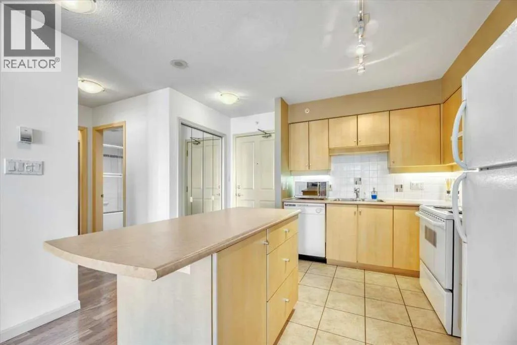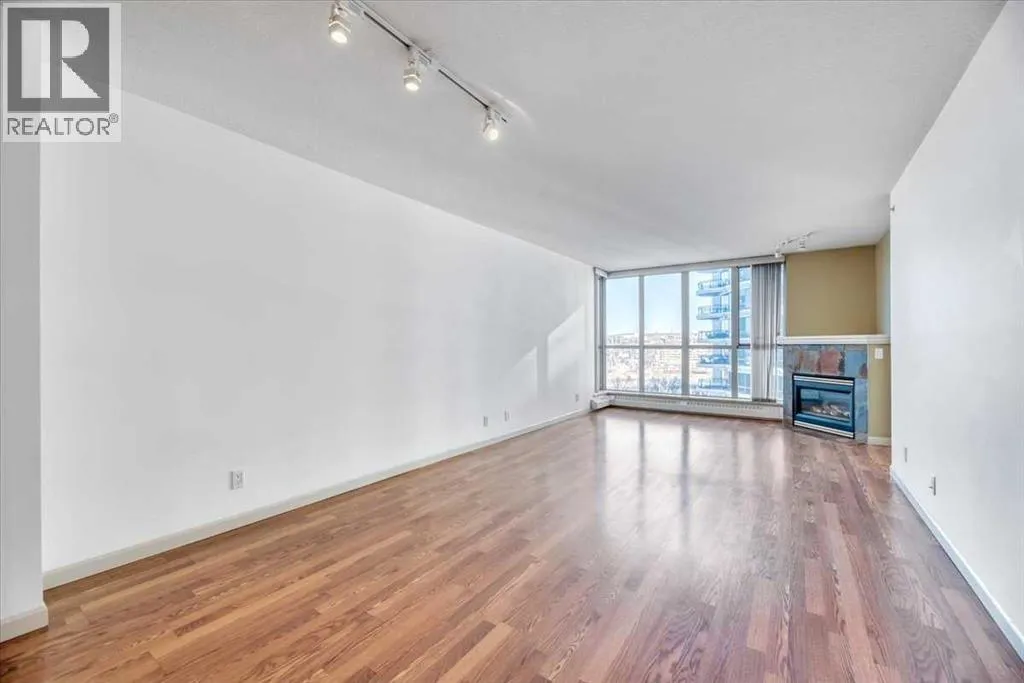 Just imagine working from home, meditating, painting, writing, or just relaxing in a glass-enclosed space with an 8th floor river view that is drenched in natural light during the day, and offers a 'sky-scape' view of Calgary's downtown West End at night. At just slightly below 775 square feet of living space, this one-bedroom plus a den is an affordable starter in one of Calgary's most desirable Inner-city neighbourhoods. Within walking distance to a scenic expanse of bike paths along the Bow River walkway, coffee shops, and restaurants, this unit is ideally located for anyone wanting to be in the heart of the City while, at the same time, being just steps away from nature. The unit itself is bright and open with a kitchen and breakfast bar, a large dining and living area, featuring an expansive wall of windows and an inviting, corner tile-faced fireplace. From both this area and the primary bedroom, you have access to the Den/Office/Sunroom. This extra living space is unique and inviting, with an abundance of windows; It is saturated with loads of natural light. The flooring consists of a neutral, sandy-coloured chestnut laminate for the entire living area, tiles in the front entrance, kitchen, and den, and carpet in the large bedroom. The unit also features in-suite laundry, one assigned underground parking stall and extra storage, all completely enclosed to ensure privacy for your contents. The Axxis includes security, a generous amenity/ party room, a gym, a spacious outside living area, and a designated space for any deliveries you have coming. Rare and seldomly available at such a desirable price point, this is an exceptional opportunity for anyone who'd love to affordably become a homeowner and step away from contributing to someone else's investment portfolio. Book your showing today! (id:27476)