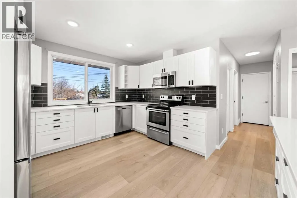 * OPEN HOUSE SUNDAY 15 FEB 3-5PM* Welcome to this beautifully updated detached bungalow with a large yard and over $100,000 in renovations and major upgradesâoffering true move-in-ready comfort and peace of mind. Freshly painted throughout and filled with natural light, the main level features durable luxury vinyl plank flooring and a spacious living room with an inviting, open feel.The heart of the home is the stunning kitchen, fully renovated in 2021 with crisp white cabinetry, soft-close drawers, quartz countertops, subway tile backsplash, stainless steel appliances, and a large central island with an eating barâperfect for everyday living and entertaining. Down the hall youâll find three good-sized bedrooms, including a comfortable primary with flat ceilings, plus a beautifully updated main bathroom with tile flooring, a modern vanity, and contemporary finishes.The fully developed basement adds exceptional additional living space with a huge family room, wet bar area, a large bedroom, a 3-piece bathroom with a tiled shower, laundry, and plenty of storage.Outside, enjoy the large backyard complete with a concrete patio pad, shed, and a new rear fenceâideal for summer BBQs, kids, and pets. A single garage with power adds everyday convenience.Major improvements include a full kitchen renovation, new appliances, new main-floor flooring, and new concrete sidewalk and stairs completed in 2021, along with a new 100-amp electrical panel, updated service into the home, and a sub-panel added to the garage. In 2022, the home had new roof shingles and both the sewer line and water supply line were replaced, including the addition of a backflow valve. Completing the package, a new high-efficiency power-vented hot water tank was installed in 2025.A fantastic opportunity to own an extensively upgraded bungalow with a great layout, a large yard, and significant renovations already done! View 3D/Multi Media/Virtual Tour. (id:27476)