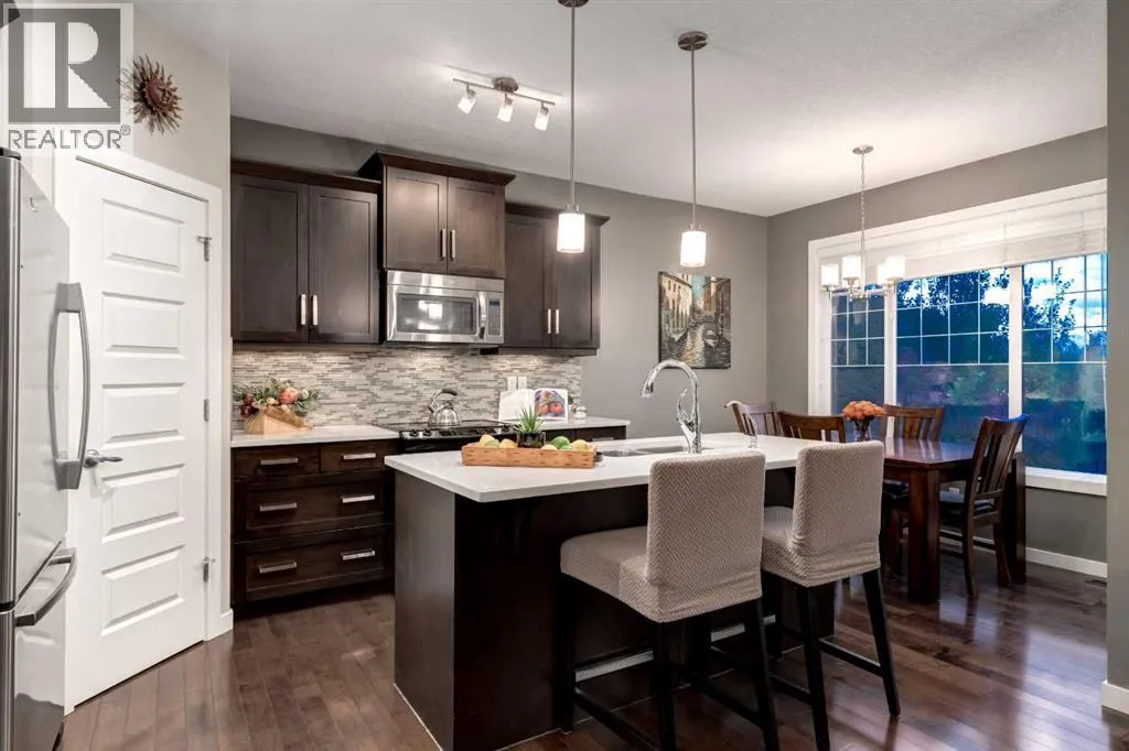 Nestled in the heart of family-friendly Evanston, this beautifully maintained two-storey home combines thoughtful design with timeless comfort. From the moment you step inside, youâre greeted by a warm, inviting layout that instantly feels like home. With three bedrooms and two and a half bathrooms, this home offers functionality for the whole family. Perfectly positioned beside walking paths to access the Evanston Lookout, this property enjoys extra privacy on one side and backs directly onto the communityâs scenic pathwaysâoffering peaceful ridge views and breathtaking sunsets that fill the home with golden light. The heart of the home is the kitchen featuring quartz countertops, stainless steel appliances, glass tile backsplash, corner pantry, and breakfast barâ ideal for morning coffee or casual family meals. The living room features a sleek gas fireplace and the dining space is ideal for family gatherings. Walk-out onto your patio from the dining space and enjoy the tranquil vistas with glass of wine in hand. Completing the main floor is your attached double garage, laundry room and 2pc powder bathroom. Upstairs, a spacious bonus room with 9-foot ceilings provides the perfect space for movie nights or play area and the built-in desk is ideal for an office or study space. The primary suite offers beautiful ridge views, walk-in closet and 4p ensuite bathroom with separate shower and large corner soaker tub. The undeveloped walk-out basement with a roughed-in bathroom is ready for your personal touch â whether thatâs a future bedroom, fitness space, recreation room... or a combination of all three! Step outside to a west-facing backyard made for entertaining, complete with a stone patio, wood pergola, and custom wood planters surrounded by sunshine. With a brand new roof, gutters, and vinyl siding (2025), you can move in with confidence. All of this, just minutes from the Evanston West Lookout Point, top area schools including Our Lady of Grace and Kenneth D. Tayl or School, parks and shopping â this home truly has it all. (id:27476)
