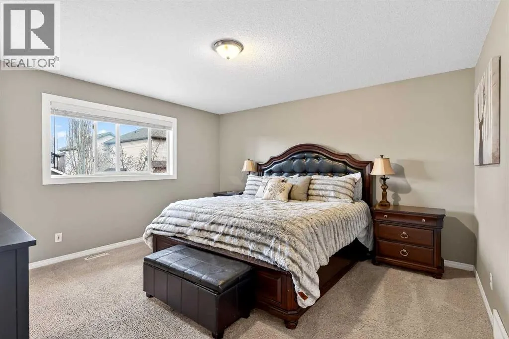 Welcome to this well-maintained 4+1 bedroom, 3.5 bathroom family home with an insulated, heated triple attached garage, ideally situated on a quiet street in one of Calgaryâs most desirable neighborhoods. The main floor is thoughtfully designed for family living, featuring formal living and dining rooms, an office den, and a convenient laundry/mud room. The kitchen offers maple cabinetry, granite countertops, and an island, opening to a family room with a gas fireplace perfect for everyday life and gatherings.Upstairs, youâll find four bedrooms, including a spacious primary suite with a 5-piece jetted ensuite, plus an additional 4-piece bathroom. The fully finished basement offers even more family space, with a fifth bedroom, hobby or exercise room, a 4-piece bathroom, and a recreation/media area with a wet bar, ideal for movie nights or playtime.Additional features include air conditioning and underground sprinklers for easy summer living. Conveniently located just 15 minutes from downtown and close to schools, shopping, recreation, and everyday amenities. Donât miss the chance to make this wonderful family home yours! (id:27476)