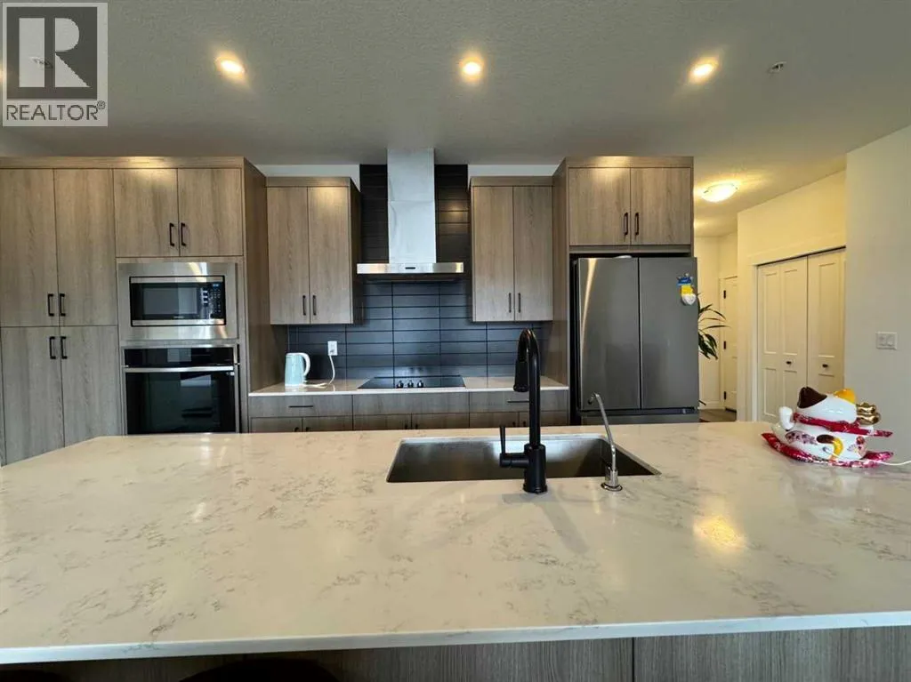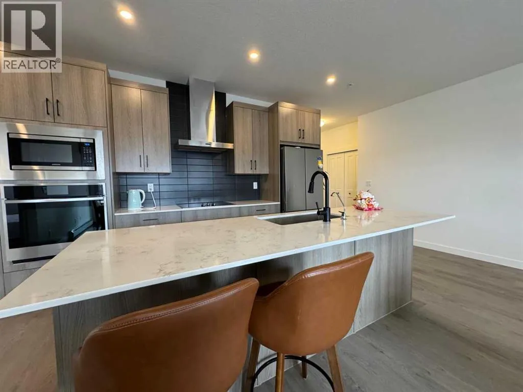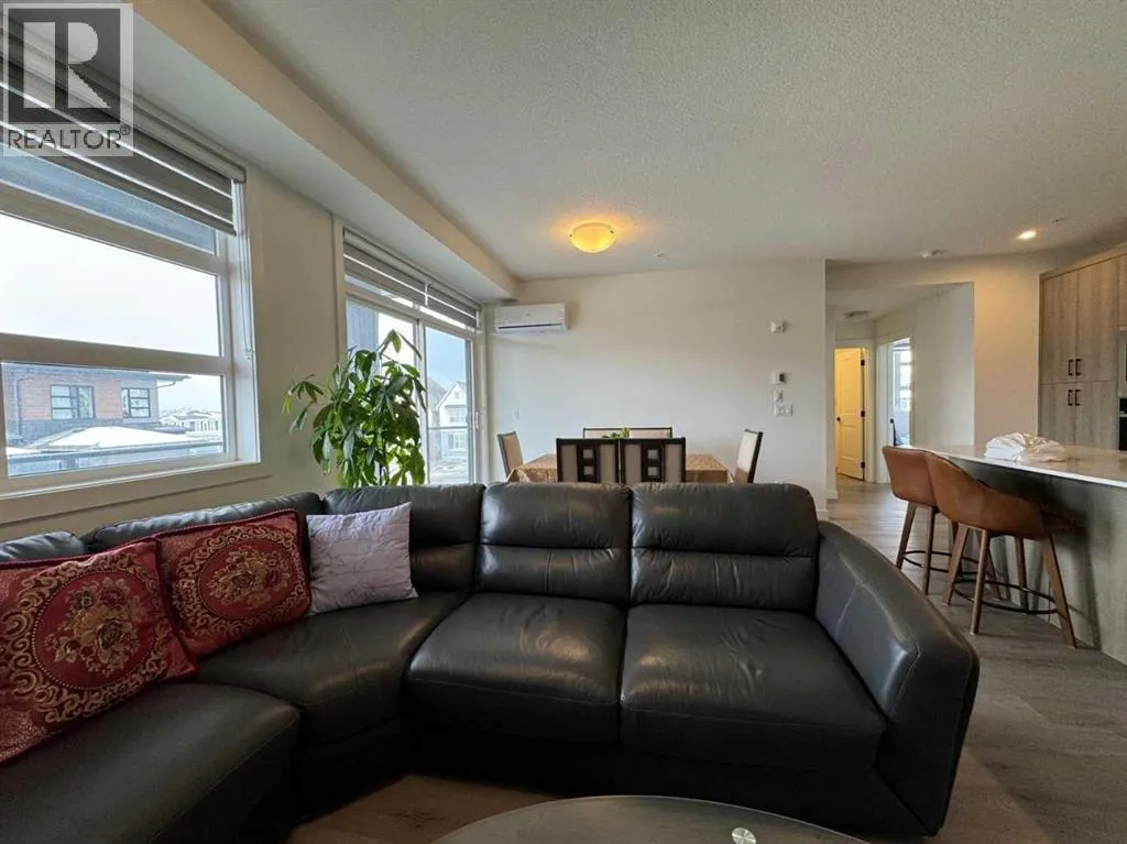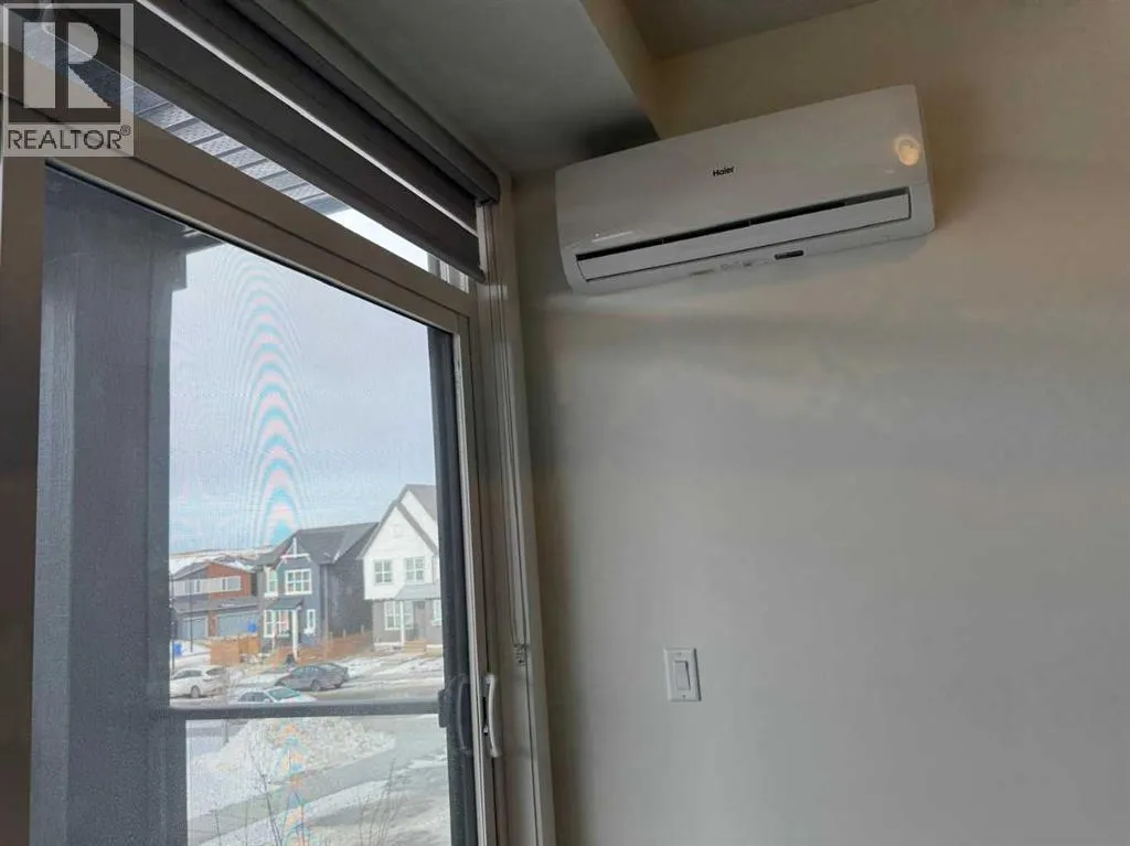Bright and Spacious with Functional layout! Experience the comforts of modern living with this stunning 2-bedroom, 2-bathroom corner unit, loaded with upgrades, well located in Logel Homes' Livingston Views â Livingston's vibrant, growing community. This home offers easy access to airport, downtown, shopping, dining, and major highways including Stoney Trail & Deerfoot Trail. Enjoy the upgraded Executive kitchen with open design and upgraded with a premium stainless-steel appliance package; built-in wall oven and microwave cabinet tower, quartz counters, oversize center island with large undermount sink, overlooking the huge living room and dining room with patio doors to oversize balcony (20â5â x 6â2â) where you can enjoy your BBQ and decorate with your favorite patio furniture. The Spacious Master bedroom includes a large ensuite bath: with double sinks with large quartz counter, toilet with separate door and a walk in closet with door. Spacious 2nd bedroom: - with windows on both sides which is an added feature of this corner unit. 2nd bathroom upgrade includes a walk in shower with glass doors, quartz counters. Other features of this beautiful unit: - 9-Ft. Ceilings, a breathe easy with Logel Homes' exclusive fresh air intake system, in unit Air Conditioning unit, spacious entry and a large laundry room with ample storage space. This unit also comes with a titled heated underground parking and an assigned storage unit. Accessibility feature: Ram to exterior front building entrance from parking stall. (id:27476)