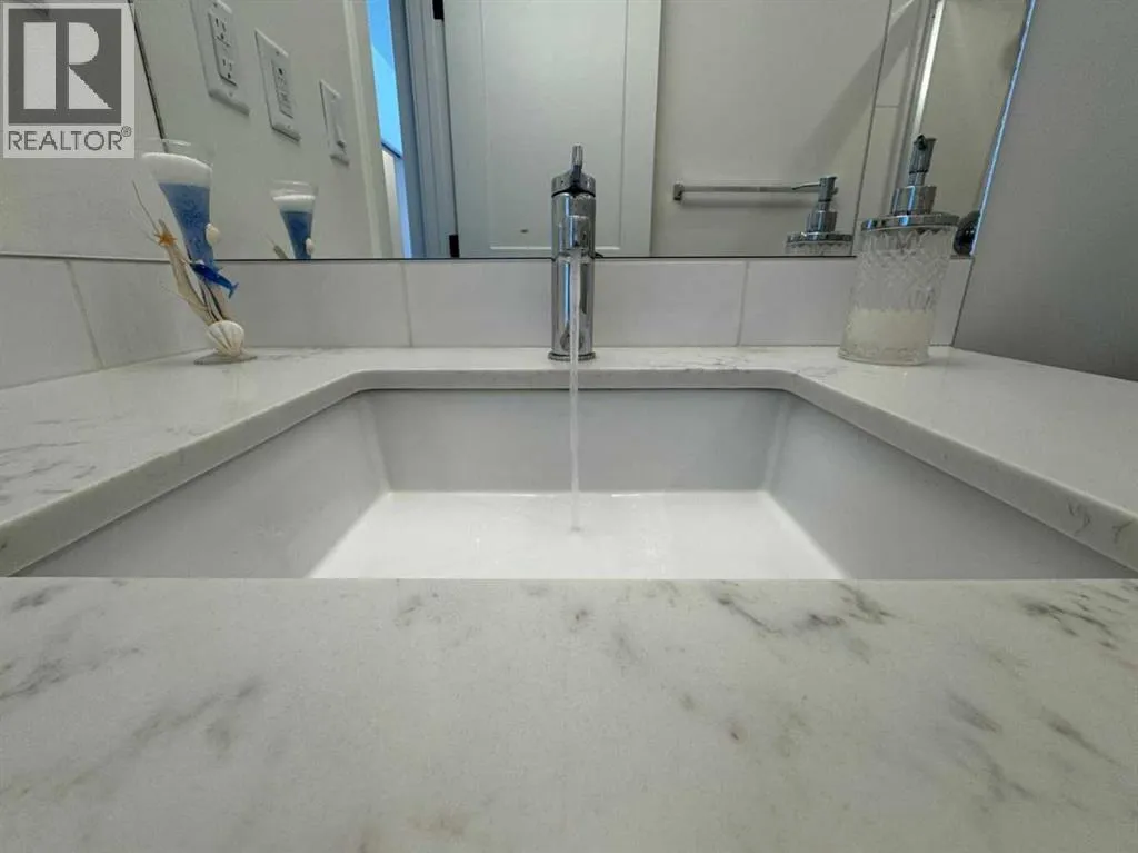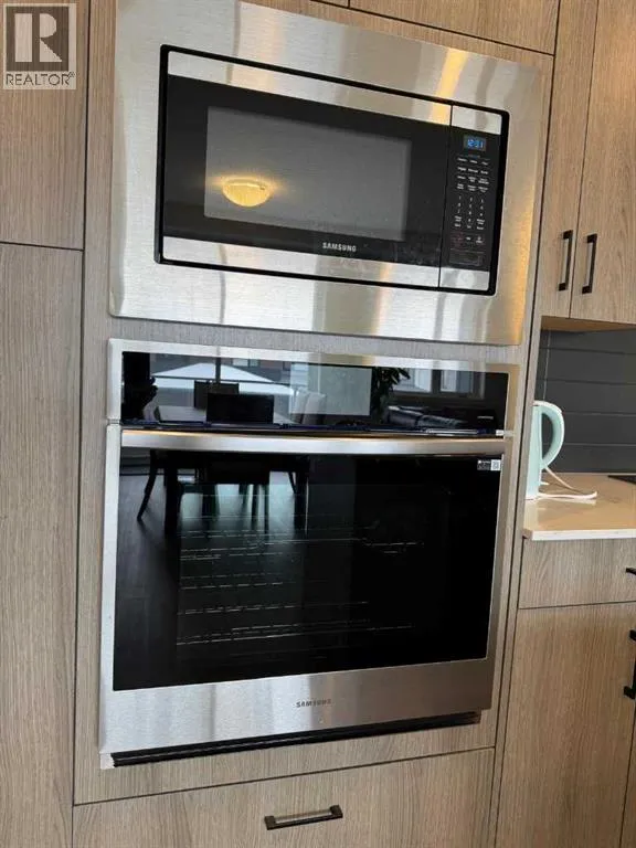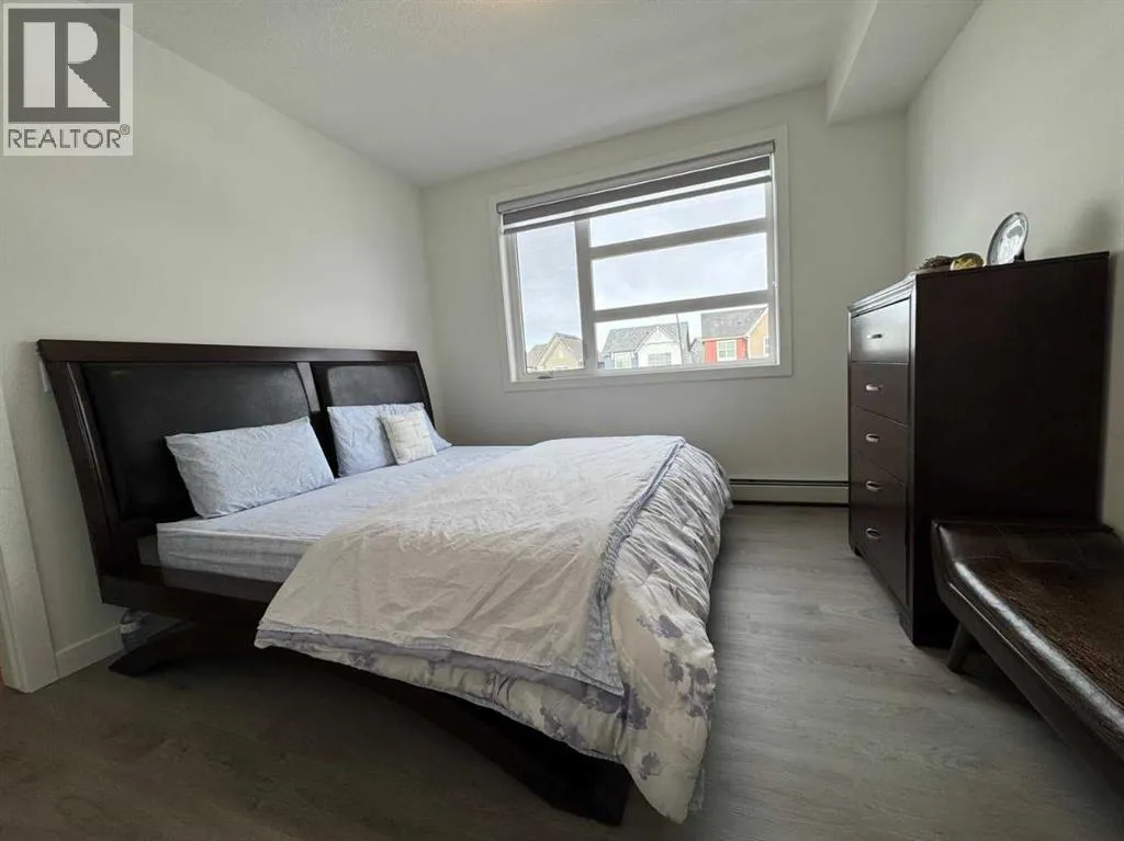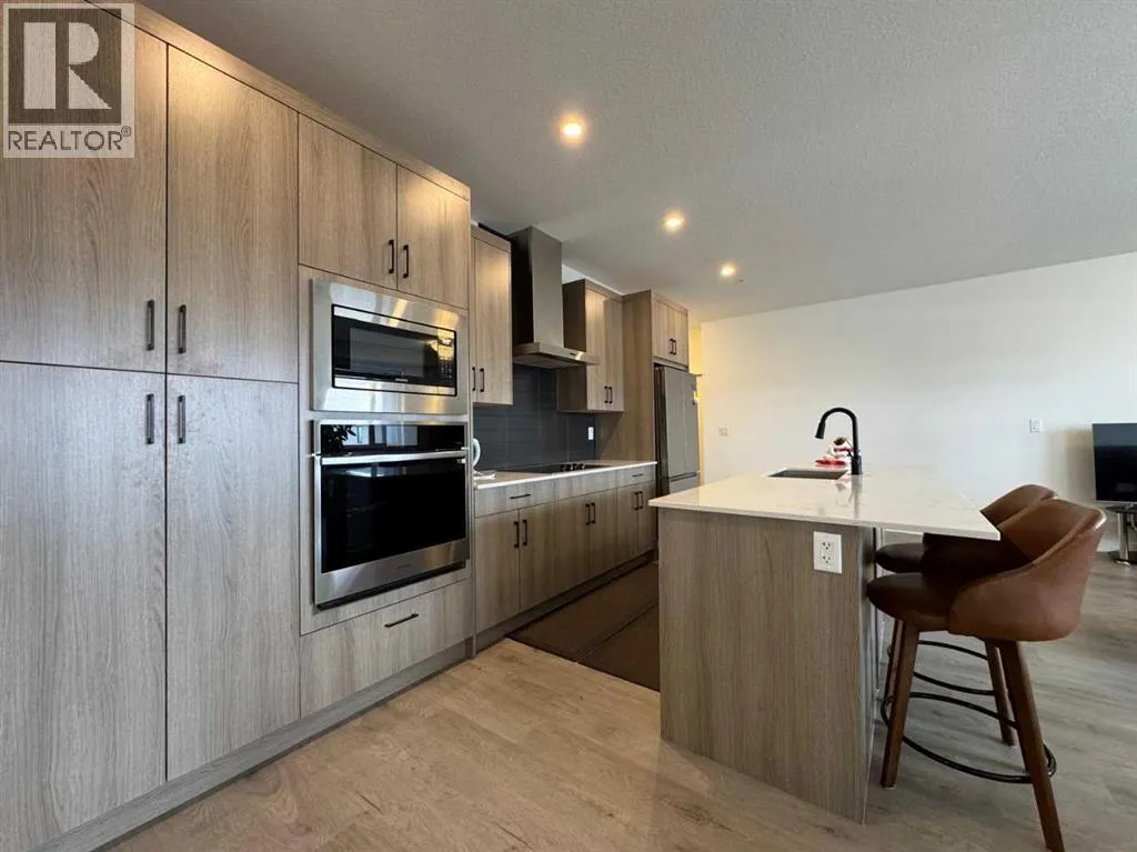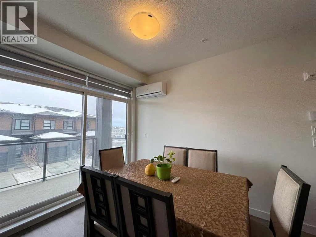 Bright and Spacious with Functional layout! Experience the comforts of modern living with this stunning 2-bedroom, 2-bathroom corner unit, loaded with upgrades, well located in Logel Homes' Livingston Views â Livingston's vibrant, growing community. This home offers easy access to airport, downtown, shopping, dining, and major highways including Stoney Trail & Deerfoot Trail. Enjoy the upgraded Executive kitchen with open design and upgraded with a premium stainless-steel appliance package; built-in wall oven and microwave cabinet tower, quartz counters, oversize center island with large undermount sink, overlooking the huge living room and dining room with patio doors to oversize balcony (20â5â x 6â2â) where you can enjoy your BBQ and decorate with your favorite patio furniture. The Spacious Master bedroom includes a large ensuite bath: with double sinks with large quartz counter, toilet with separate door and a walk in closet with door. Spacious 2nd bedroom: - with windows on both sides which is an added feature of this corner unit. 2nd bathroom upgrade includes a walk in shower with glass doors, quartz counters. Other features of this beautiful unit: - 9-Ft. Ceilings, a breathe easy with Logel Homes' exclusive fresh air intake system, in unit Air Conditioning unit, spacious entry and a large laundry room with ample storage space. This unit also comes with a titled heated underground parking and an assigned storage unit. Accessibility feature: Ram to exterior front building entrance from parking stall. (id:27476)