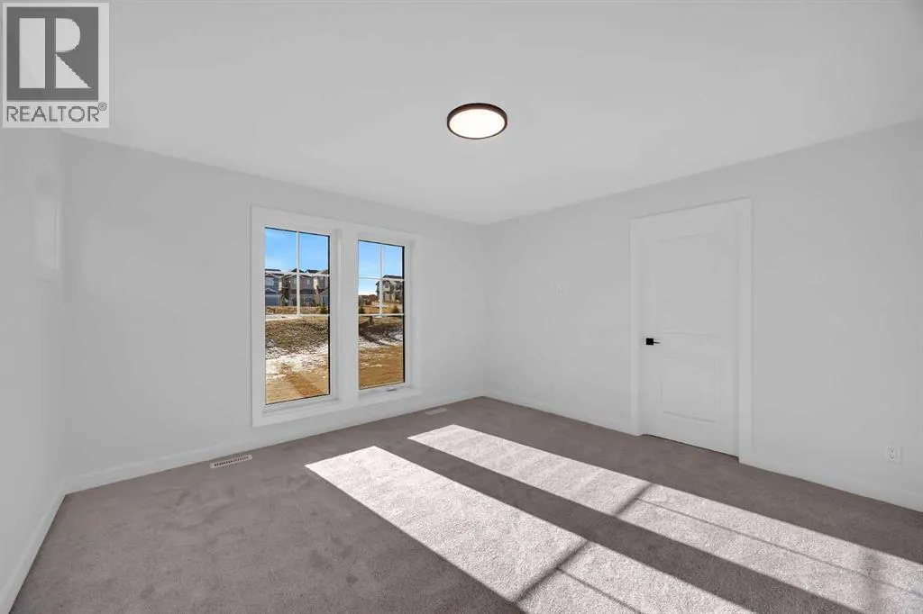 Welcome to the Concord II by Broadview Homes, a brand new home with a detached garage, Hardie exterior siding, and a rare park-facing lot in Vermilion Hill, one of Southwest Calgaryâs most nature-focused new communities. Offering 3 bedrooms, 2.5 bathrooms, a main floor flex room, and future basement suite rough-ins, this home delivers modern style with long-term flexibility. The main level features a versatile front flex space ideal for a home office or guest area, along with an open-concept layout designed for everyday living. The kitchen includes quartz countertops, a large 7â6â island, and cabinetry to the ceiling for a clean, elevated finish. The dining and great room flow seamlessly together, highlighted by an electric fireplace with stunning floor-to-ceiling tile detail. Upstairs, the primary suite offers a walk-in closet and a beautifully finished ensuite with dual vanities, a fully tiled shower, and a soaker tub. Two additional bedrooms, a full bathroom, and upper-level laundry complete the upper floor.Outside, enjoy a completed deck, detached garage, and the unique lifestyle benefit of fronting directly onto park space. Vermilion Hill is surrounded by exceptional outdoor amenities, just steps from Fish Creek Park with quick access to Weaselhead Flats, Glenmore Reservoir, and the Tsuutâina Trail. With mountain views, planned greenways, future parks, and Dark Sky community designation, this is a rare opportunity to own a new home in one of Calgaryâs most scenic southwest locations. (id:27476)