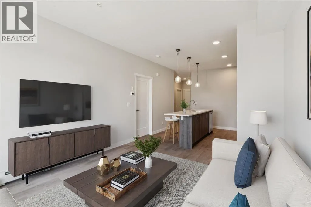 Modern 2-Bedroom Condo in Fish Creek Exchange Welcome to this brand-new 2-bedroom, 2-bathroom home in the 2025 Fish Creek Exchange development, located in the sought-after community of Shawnee Slopes. Offering 732 sq ft (builder size), this thoughtfully designed condo features high ceilings, luxury vinyl plank flooring, and a stylish kitchen complete with quartz countertops, stainless steel appliances, and full-height cabinetry. The open-concept layout extends to a private west-facing balcony, perfect for enjoying morning coffee, summer evenings, or a breath of fresh air with the best Calgary Sunsets. Convenience is built in with titled underground parking and a secure titled storage cage. Just steps from the Fish CreekâLacombe LRT Station and minutes from the trails of Fish Creek Provincial Park, this home combines modern living with easy access to nature, transit, and nearby amenities. (id:27476)