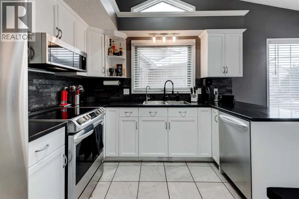 This meticulously maintained residence offers a rare blend of contemporary upgrades and structural integrity. From the sleek, updated aesthetic to the comprehensive mechanical updates, every detail has been curated to provide a turnkey living experience. The home features beautiful vaulted ceilings, high end culinary space equipped with new stainless steel appliances and premium soft-close cabinetry. The kitchens functionality is enhanced by a built in garburator and elegant new fixtures that flow seamlessly into the living area. Enjoy cozy evenings anchored by one of two gas fireplaces, or transform your down stairs space into a private theatre with the included projector system. Total peace of mind comes standard here, the current owner has invested heavily in the homes "bones" and efficiency. NO POLY-B, heavy duty asphalt shingles, upgraded siding and composite decking on the front porch. The home is also equipped with a new hot water tank and a furnace serviced annually for peak performance. The main floor has been intelligently reconfigured to include a discreet half bath with stacked laundry, maximizing convenience. Throughout the home you will find new remote controlled light fixtures and fans, fresh carpet on the stairs, and updated hardware on all the doors. Storage is abundant, including a clever utilization of space under the stairs. Beyond the interior, the single car garage serves as more than just parking; it is fully drywalled and insulated , featuring a new insulated door to keep the space temperate year round. For households with multiple vehicles, the driveway is impressively sized to accommodate two cars, with the added benefit of visitor parking steps away. The location offers a balance of recreation and convenience. Golf enthusiasts will appreciate the proximity to the public golf course and driving range. For your daily needs, a variety of boutique shopping and essential services are just minutes from your front door. (id:27476)