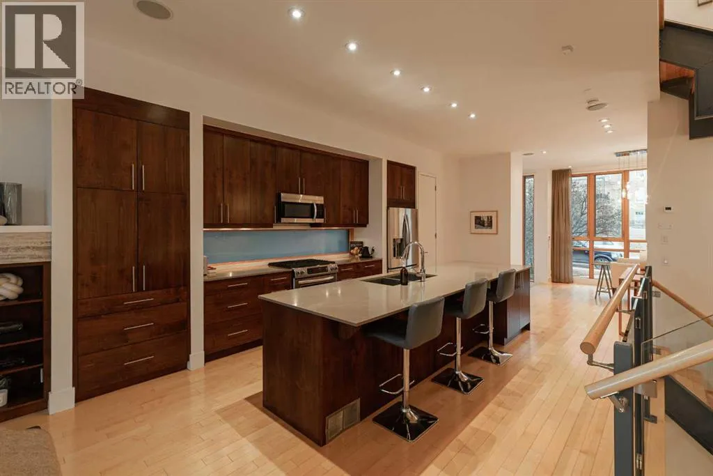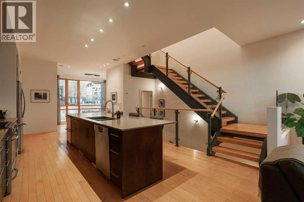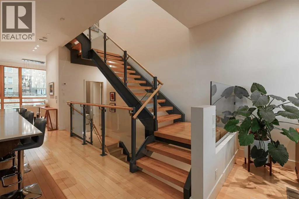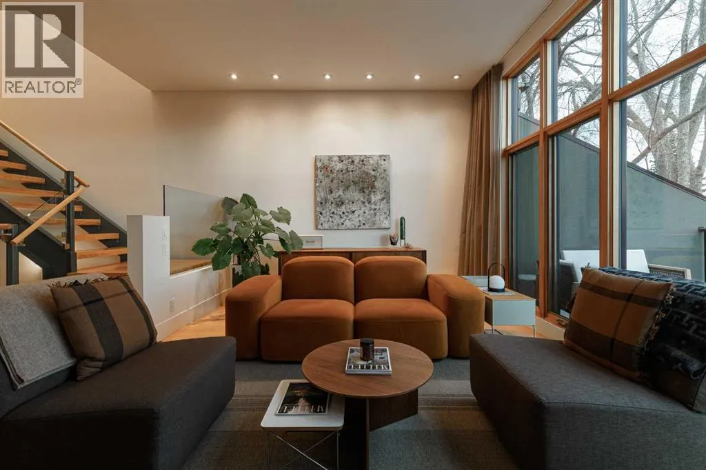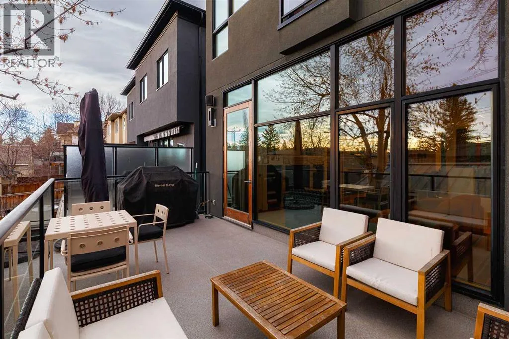 Welcome to an exceptional architectural collaboration by Gibbs Gage Architects and McIntyre Bills Interior Design, ideally located in the heart of vibrant Marda Loop and overlooking the historic King Edward School, now home to the inspiring cSPACE Arts Campus. This is inner-city urban living at its finest. Enjoy a truly walkable lifestyleâsteps to Marda Loopâs best shops, restaurants, cafés, and bars, and within easy walking distance to the Garrison Curling Club, Flames Community Arenas, Glencoe Club, and Sandy Beach. Just minutes to downtown Calgary with quick access to Crowchild and Glenmore Trails. From the moment you arrive, the home impresses with striking curb appeal and evident pride of ownership throughout. Step inside to an open-concept main level accented by gleaming hardwood floors and refined contemporary finishes with over 2400 sq feet of finished living space and 10 foot ceilings. The dining area is perfectly positioned to take in unobstructed views of the iconic limestone King Edward Schoolâan architectural backdrop few homes can offer. The chefâs kitchen is both beautiful and functional, featuring a large central island, sleek contemporary cabinetry, and stainless steel appliances, seamlessly flowing into a warm and inviting living room anchored by a natural gas fireplace. Step outside to your south-facing balcony, the perfect spot for summer dinners and sunset views. Upstairs, youâll find three generously sized bedrooms, including a stunning primary retreat with a spa-inspired ensuite and large walk-in closet. Two additional bedroomsâone ideal as a home officeâboth enjoy majestic views of the historic school grounds. Descend the striking floating staircase to the fully finished walkout basement, an award-winning design filled with natural light from expansive showcase windows. This level offers in floor radiant heating; a spacious family room with a second natural gas fireplace, a large fourth bedroom, a full bathroom, and a dedicated workout r oomâperfect for modern living. Outside, enjoy warm summer evenings in your private backyard, complemented by a double detached garage. This is a rare opportunity to own a thoughtfully designed, architecturally significant home in one of Calgaryâs most sought-after inner-city communities. Inner-city living at its absolute best. Call your favourite REALTOR® today to book your private viewing. (id:27476)