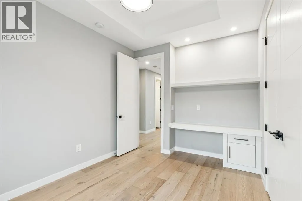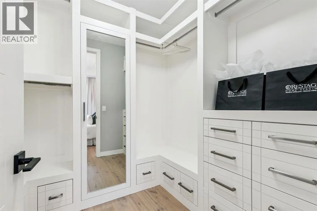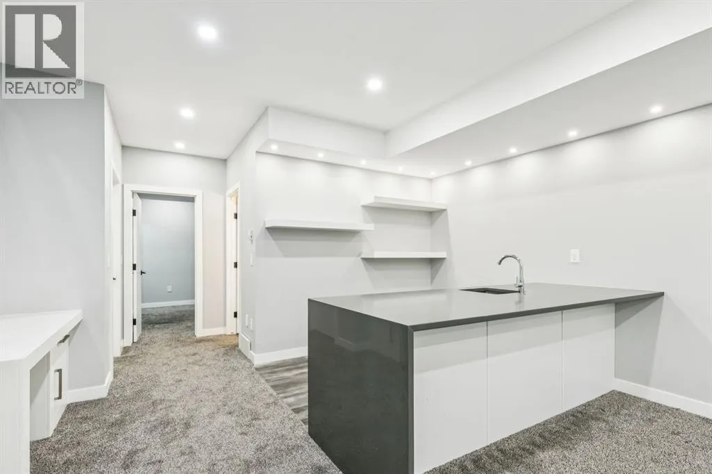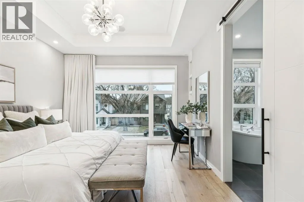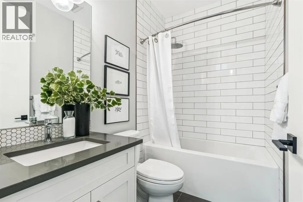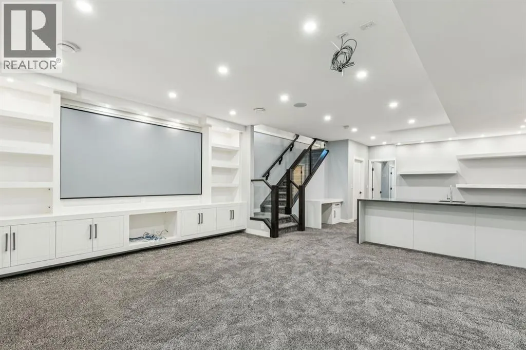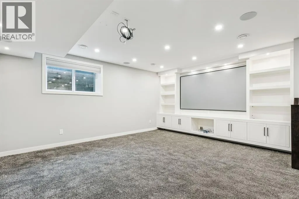 Proudly presenting this incredible family home ideally located in a welcoming, family friendly community just steps from Westmount Charter school, parks, and the Bow River pathway system. Offering over 2,700 sq ft of thoughtfully designed living space, this home blends modern luxury with everyday functionality. Stunning wide plank hardwood floors flow throughout the main and upper levels, while custom built-ins are seamlessly integrated throughout the home, adding both beauty and practical storage. The main floor is designed for connection with a beautifully panelled dining room, and centrally located chefâs kitchen ideal for gathering and entertaining. Highlights include white shaker cabinetry with glass accents, expansive waterfall quartz countertops, elegant pendant lighting, a high end Jenn-Air 6 burner gas cooktop and wall oven, and a premium kinetic water system. The inviting living area is showcases a sleek linear gas fireplace anchored by built-ins and a sliding glass door opens to a spacious composite deck, extending your area of entertainment. A tiled mudroom with built-in bench and abundant storage keeps daily life organized and stress free. Upstairs, natural light pours in through a large skylight, illuminating open riser stairs with glass railings and a bright second level that includes three generous bedrooms, a full bathroom with heated floors, and a convenient laundry room with sink. The primary retreat offers a peaceful escape with soaring ceilings, a large floor to ceiling picture window, custom walk-in closet, and a lavish ensuite featuring heated tile floors, a soaker tub, skylight, and tiled shower with bench and dual shower heads. The fully developed lower level is perfect for family movie nights and entertaining, featuring a large recreation room with built-in media wall, full bar with island seating and beverage fridge, a fourth bedroom, and a full bathroom. Additional lower level upgrades include rough-ins for Vacuflo, in-floor heating, and speakers. The backyard is thoughtfully designed for relaxation, with a large deck that flows into green space and leads to a double detached garage. Located close to Helicopter Park, Foothills Hospital, an off-leash dog park, and the Bow River Pathway system, this home offers an unbeatable lifestyle for families who value community, nature, and convenience. A prime opportunity to own a truly exceptional home in a welcoming neighbourhood, donât miss it. (id:27476)