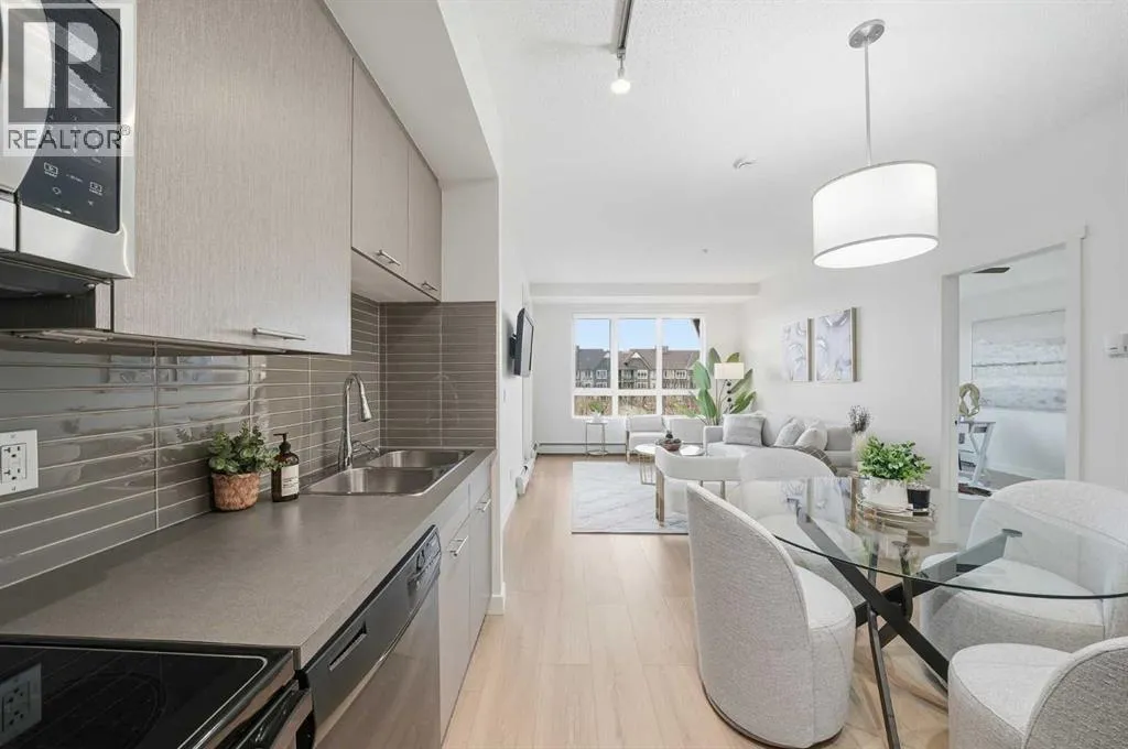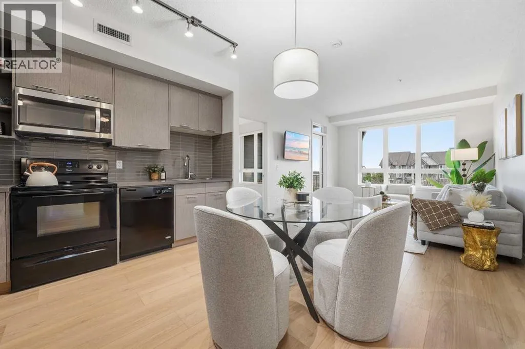 Rare opportunity backing onto 34 acres of protected green space adjoining Spruce Meadows. Located in the heart of Silverado, this well-maintained, move-in-ready home offers an exceptional blend of privacy, lifestyle, and long-term value in one of SW Calgaryâs most sought-after family communities. Surrounded by parks, playgrounds, walking paths, and an active community hub with a seasonal outdoor skating rink, the location is ideal for families, professionals, and downsizers alike. Highly regarded Catholic Kâ9 and French Immersion schools are nearby, with shopping, dining, and daily amenities just minutes away. Quick access to Stoney Trail, transit connections, and routes toward Bragg Creek, Kananaskis, and the Rocky Mountains adds everyday convenience and weekend adventure.This 748 sq ft, east-facing home features a smart, functional layout with 2 bedrooms and 2 full bathrooms, including a private ensuite. The L-shaped kitchen maximizes workspace and storage, flowing into a bright living area filled with natural light. Brand new flooring and modern finishes enhance the homeâs clean, contemporary feel.Located on the second level of a low-rise Homes by Avi building, the unit offers stair and elevator access, a spacious balcony, and added privacy between units. Condo fees include heat and water, providing predictable monthly expenses. The home also includes two parking stalls (one underground, one outdoor) plus an ample storage unit. Pet-friendly building with flexible possession available. (id:27476)