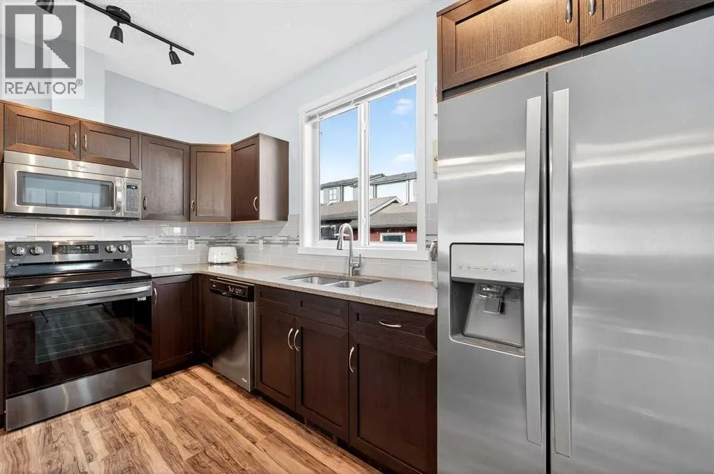 Welcome to this beautiful NO-CONDO-FEE townhome in the highly sought-after lake community of Mahogany, offering year-round access to the beach, clubhouse, and an array of outdoor amenities. This immaculate home combines comfort, functionality, and style, with a thoughtfully designed floor plan that takes full advantage of the abundant natural light streaming through the large windows.The main floor boasts 9-foot ceilings and an inviting open-concept layout that seamlessly connects the living, dining, and kitchen areasâperfect for both relaxing and entertaining. The kitchen is well-appointed with granite countertops, stainless steel appliances, and ample cabinetry, complemented by a blend of laminate and tile flooring that adds both warmth and durability.Upstairs, youâll find two spacious primary bedrooms, each offering a walk-in closet and private ensuite for ultimate convenience and privacy. One of the bedrooms also includes a versatile den area, ideal for a home office or cozy reading nook.The unfinished basement provides plenty of potential for future developmentâwhether you envision a recreation room, home gym, or extra storage space. Outside, enjoy a low-maintenance yard, a welcoming front porch, and a private backyard complete with a cement patio and gas grill hookup, perfect for summer barbecues and relaxing evenings. A detached double garage offers secure parking and additional storage.Recent upgrades include brand-new carpet (2025), a new hot water tank (2025), and a newer oven (2023), making this home truly move-in ready.With its excellent layout, modern finishes, and access to one of Calgaryâs most desirable lake communities, this Mahogany townhome is a perfect blend of lifestyle and value. (id:27476)