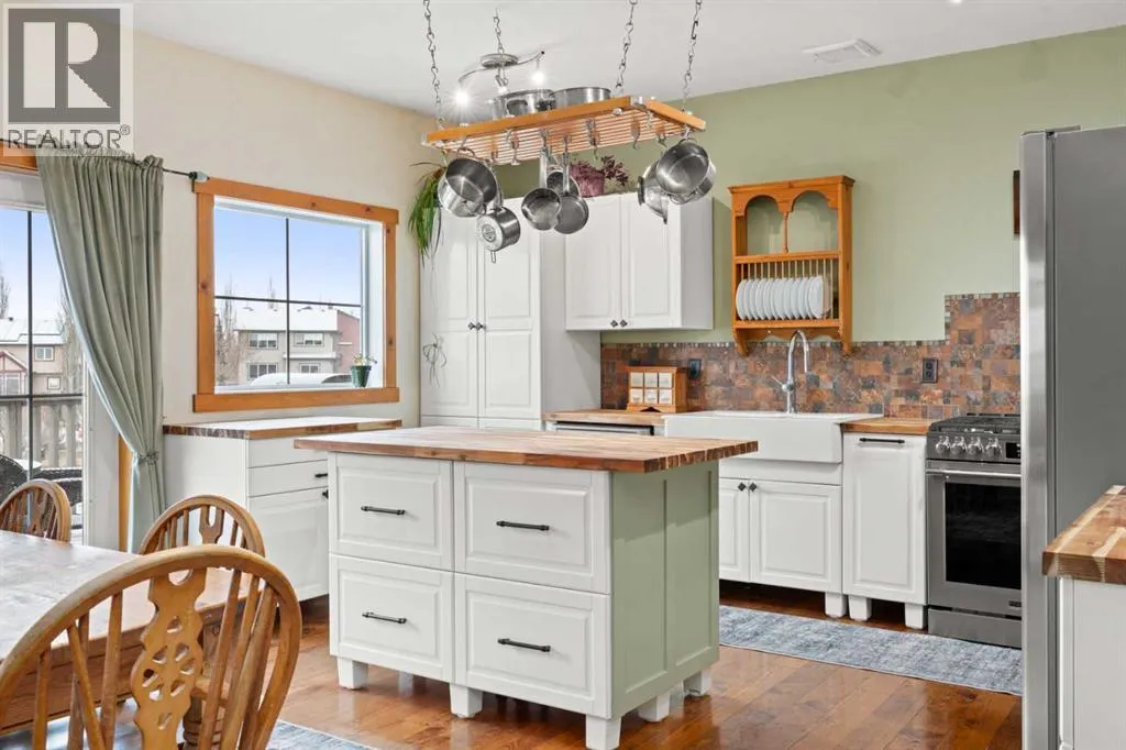 PUBLIC OPEN HOUSE - SUNDAY FEB 15th from 2:00PM-4:00PM - Discover the rare opportunity you've been waiting for in the highly coveted Estates section of Hanson Ranch, Hidden Valleyâone of Calgary's most desirable, nature-immersed communities.Nestled along gently rolling hillsides and the serene West Nose Creek corridor, Hanson Ranch dedicates an impressive 40%+ of its land to pristine green space, wetlands, and meandering pathways. Homes here rarely come available backing directly onto this tranquil greenspace, and this stunning property delivers exactly that: unparalleled privacy and forever views that make the city feel far away, while major arteries like Stoney Trail (ring road) and Beddington Trail keep your commute effortlessâjust 15â30 minutes to downtown Calgary.Pull into the peaceful, resident-only street and you're greeted by a warm, inviting exterior that sets the tone for what's inside. Step through the front door into a bright, welcoming main level designed for real family life. Picture holiday gatherings, everyday meals prepared in the beautifully renovated kitchen, cozy evenings by the fireplace, and golden afternoon light streaming through west-facing windows that frame your private greenspace oasis.Imagine mornings on the expansive back deck with coffee in hand, watching nature unfold right in your backyardâno neighbours behind you, just open space that feels like an extension of your own property.Upstairs, the thoughtfully designed floor plan offers four oversized bedroomsâplenty of room for everyone to spread out and grow. The fully finished walk-out basement is a true highlight: an additional 450 sq. ft. of bright, above-grade living space (complete with a fifth bedroom, full bathroom, and spacious rec room) plus 267 sq. ft. of smart storage. Large windows flood the lower level with natural light, so it never feels like a basementâit's simply more exceptional living area.Priced at $975,000, this home combines the best of Hanson Ranch living: d irect greenspace backing for that "country in the city" feel, modern updates, generous square footage, and access to top-rated local schools (Kâ9 public, French immersion, and Catholic options right in the community).Homes like thisâbacking greenspace, fully walk-out finished, 5 bedrooms total, in prime Hanson Ranch Estatesâdon't last long. If you're looking for space, serenity, privacy, and unbeatable location without sacrificing convenience, this is your chance. (id:27476)