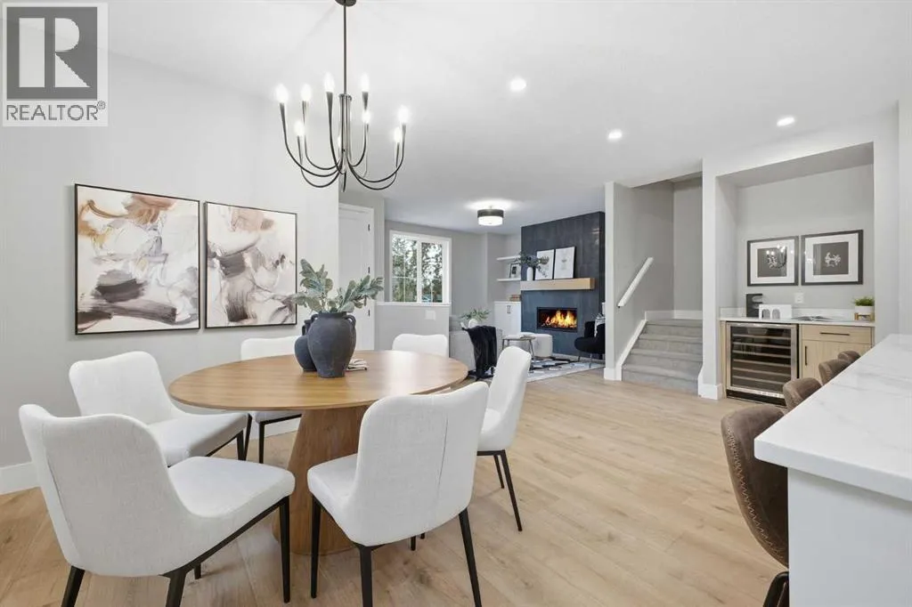 Beautifully designed and brand new, this 3+1 bedroom townhome built by Huber Homes in desirable Westgate offers nearly 2200 sq. ft. of developed living space with high-end finishes and modern comforts throughout! The open main level showcases, recessed lighting and a bright, airy floor plan. The kitchen is a true highlight, featuring a central island with eating bar, contrasting cabinetry, stainless steel appliances and a stylish dry bar. A spacious dining area and inviting living room with gas fireplace complete the main floor â the perfect layout for everyday living and entertaining alike.Upstairs youâll find 3 comfortable bedrooms, including a relaxing primary retreat with walk-in closet and spa-inspired ensuite with double sinks and contemporary finishes. Two good sized bedrooms, a full bath and conveniently located laundry room complete this level.The fully finished basement extends your living space with a generous family/media room, a fourth bedroom and a full bath â ideal for guests, teens or a home office setup.Additional highlights include a front deck with BBQ gas line, a single detached garage, and thoughtful design inside and out. Located just steps from schools, shopping, parks and transit, this home combines style, function and location in one of Calgaryâs sought-after southwest communities. (id:27476)