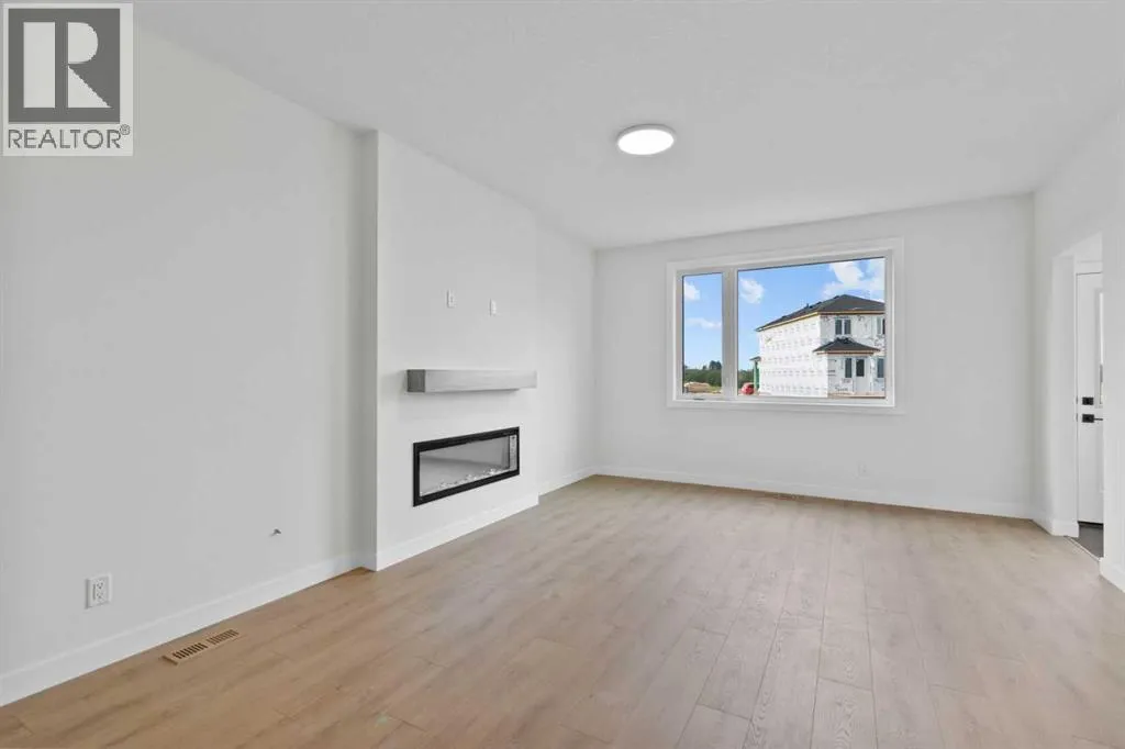***OPEN HOUSE Sunday February 15th 1pm- 3pm****IMMEDIATE POSSESSION | 1,927 SQ.FT. | 4-BED | 3-BATH | SPICE KITCHEN | SIDE ENTRANCE | 9' BASEMENT | BONUS ROOM | LARGE PIE SHAPED LOT | Step into this modern & versatile new home by Crystal Creek Homes. Offering an open-concept main floor with 9' ceilings, its sleek kitchen features quartz countertops, a large island, and a SPICE KITCHEN with a GAS RANGE and sink. A spacious great room with an electric FIREPLACE adds to the welcoming atmosphere. The main floor also includes a bedroom and a full bathroom, perfect for guests or multi-generational living. Upstairs, you'll find a BONUS ROOM, 3 bedrooms, each with walk-in closets, a main bath, and convenient UPPER-FLOOR LAUNDRY. The primary bedroom offers a luxurious 5-piece ensuite. Set on a large pie-shaped lot, the home features a durable HARDIE BOARD EXTERIOR and a REAR DECK for outdoor living. The 9' BASEMENT and SEPARATE SIDE ENTRANCE provides future legal suite potential (subject to approval and permitting by the City). Located near East Hills Shopping Centre, with quick access to Stoney Trail and a short drive downtown. This home has everything you need! Book your showing today before it's gone. (id:27476)