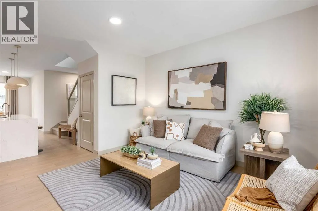 MOVE-IN READY, NO CONDO FEES, AND SITTING RIGHT WHERE FIRST-TIME BUYERS AND INVESTORS WANT TO BEâthis Savanna townhome checks ALL the boxes that actually matter. Immediate possession means no waiting, no guessing, and no monthly fees quietly eating into your budget.The main floor is open, efficient, and refreshingly well thought out. The kitchen anchors the space with a BREAKFAST BAR ISLAND, QUARTZ COUNTERTOPS, UPGRADED CABINETRY, matte black hardware, a CHIMNEY-STYLE HOOD FAN, and a BUILT-IN MICROWAVEâclean lines, practical finishes, and nothing overdone. Durable LVP hard-surface flooring keeps daily life low-maintenance, while the layout flows easily from cooking to dining to relaxing without wasted space.Upstairs, three bedroomsâincluding a comfortable primary with walk-in closetâare paired with UPPER-FLOOR LAUNDRY and two full bathrooms finished with matching quartz, keeping the look cohesive and easy to live with. The neutral palette is intentional: easy to furnish, easy to rent, and unlikely to date itself anytime soon.Downstairs, the unfinished basement leaves room to grow, add value, or keep things simple. Out back, rear lane access and a DEDICATED PARKING PAD add everyday practicalityâwithout the rules, boards, or monthly fees that often come with townhome living.Set in the heart of Savanna, with QUICK ACCESS TO TRANSIT, SCHOOLS, SHOPPING, AND EVERYDAY AMENITIES, this is the kind of property that works just as hard as you do. A smart entry point, a solid investment, and a home thatâs ready when you are. ⢠PLEASE NOTE: Photos are of a finished Showhome of the same model â fit and finish may differ on finished spec home. Interior selections and floorplans shown in photos. (id:27476)