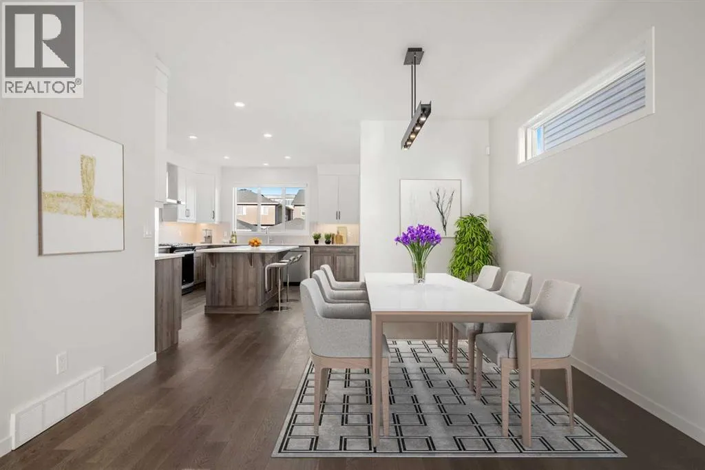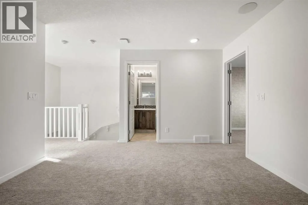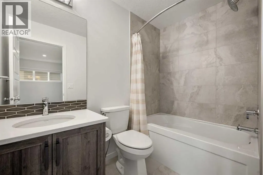 Welcome to 110 Wolf Creek Rise SE- a striking new, NEVER LIVED IN, FORMER TRICO SHOWHOME offering approximately 1,738 square feet of above-grade living space in the vibrant and family-friendly Wolf Willow community. This thoughtfully designed residence has GEM STONE LIGHTS and $70,000 worth of UPGRADES including CABINET HARDWARE, DRAPERY, ROPE LIGHTING UNDER CABINETS which blends modern functionality with comfortable living, making it ideal for families, first-time buyers, or anyone seeking a fresh start in a growing neighbourhood.As you enter through the welcoming foyer, you are immediately drawn into the open-concept main floor where the spacious living room flows seamlessly into the dining area and kitchen. The living room offers abundant natural light and a layout that accommodates both everyday living and gatherings around the GAS FIREPLACE with friends and family. Adjacent to this space, the dining area provides ample room for family meals and entertaining. The kitchen features a functional layout, UPGRADED APPLIANCES and a GAS RANGE with effortless access to the outdoor deck, making it perfect for summer barbecues or enjoying your morning coffee.Also on the main level, youâll find a conveniently located two-piece bathroom, a practical mudroom with direct entry from outside, and generous closet space to keep everyday items organized. The effortless flow of this level makes daily routines feel seamless while maintaining a welcoming environment.Upstairs, the design continues with three bedrooms with beautiful FEATURE WALLS and a versatile bonus room. The primary bedroom is complete with a walk-in closet and a four-piece ensuite bathroom that provides added privacy and comfort. Two additional bedrooms share access to a well-appointed main bathroom, making this level ideal for families or guests. The unfinished basement presents excellent potential for future development to suit your lifestyle needs, whether that includes additional living space, a recreat ion room, or enhanced storage options.Nestled in the Wolf Willow community, the location captures the best of southeast Calgary living. Residents enjoy quick access to scenic outdoor areas such as Fish Creek Provincial Park, Blue Devil Golf Course, and the Bow River Valley trail network, offering endless opportunities for walking, cycling, and enjoying nature. The neighbourhood is thoughtfully designed with pathways, parks, and future amenities, while still providing convenient access to major routes like Macleod Trail and Stoney Trail for easy commuting across the city. Wolf Willow continues to grow as a vibrant community that blends outdoor recreation with modern urban convenience. Don't miss your chance to view this property - book your private showing today! (id:27476)