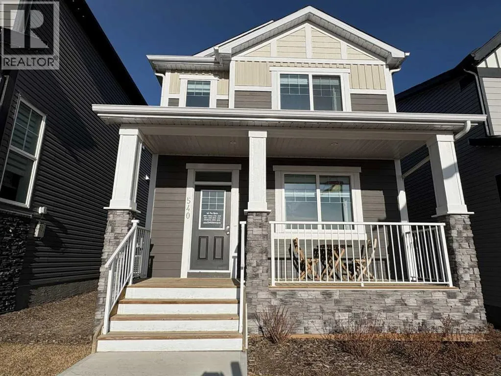 OPEN HOUSE SUNDAY FEB. 15th FROM 12:30 PM - 2:30 PM *Magnificent former showhome situated across the street from a large pond and a future estate area. Enjoy the view from your very own full width covered veranda. The home itself combines a bright, open layout with contemporary comfort. Once inside, the quality of the workmanship is extraordinary. From the retro partition wall in the foyer, to the cozy great room fireplace with its streamlined mantle, to the elegant metal railing on the staircase and the soaring high ceilings, you will feel right at home. From the front of the home to the back, it is one expansive open space.The kitchen is sensational, featuring a huge island with eating bar, drop down pendant lighting, a modern upgraded backsplash, sleek chimney hood fan, stainless steel appliances, and striking three tone cabinetry. It is truly a showstopper.As you head upstairs, the metal railing continues beyond the staircase and throughout the upper floor. The primary bedroom has it all, including a vaulted ceiling, a massive walk in closet with MDF shelving, and a grand five piece ensuite with double sinks and a five foot wide tiled shower. The spare bedrooms are located at the rear of the home, offering excellent separation for homeowners. The large laundry room includes a counter, cabinets above the washer and dryer, and additional shelving for linens.The basement is undeveloped and ready for future development, with rough in plumbing for a bathroom already in place. The double car garage provides secure parking and additional storage. Be the first to view this remarkable home. (id:27476)