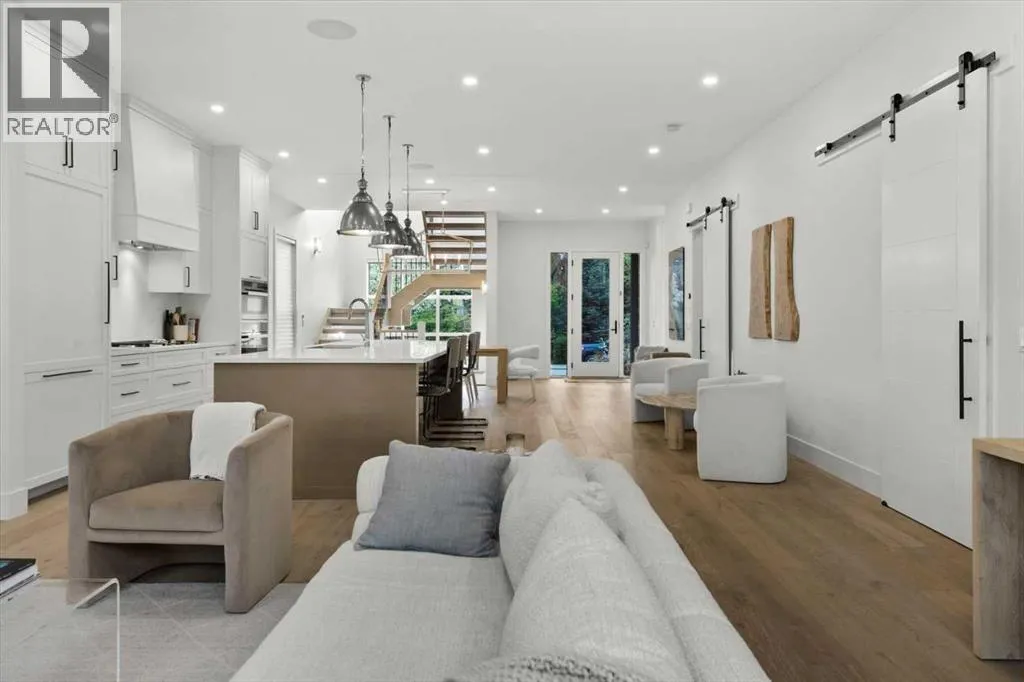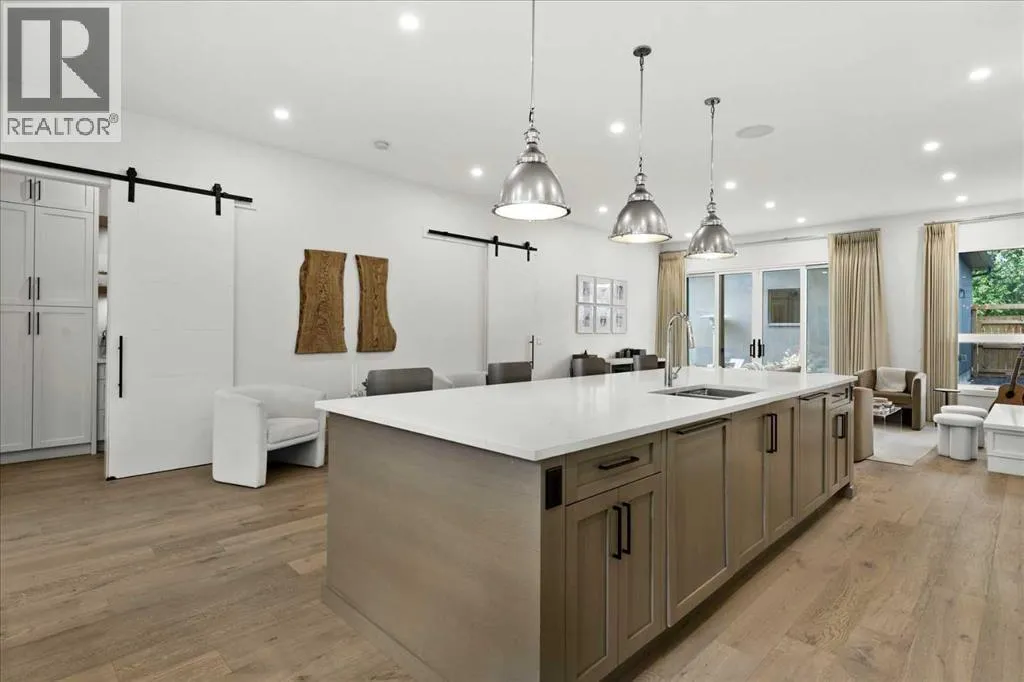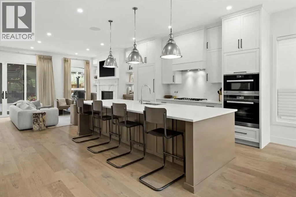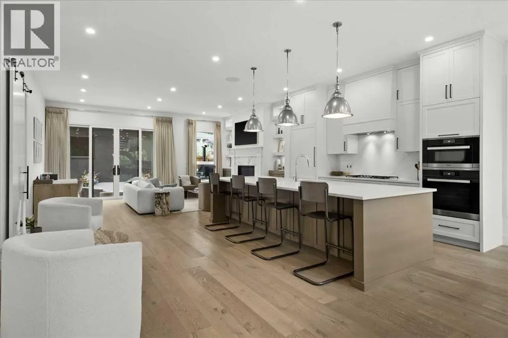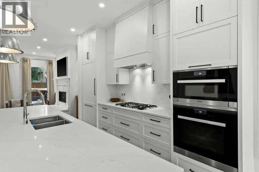 Welcome to this exceptional custom-built executive home offers over 3,700 sqft of beautifully curated living space in the heart of Altadore, one of Calgaryâs most sought after inner city communities. Thoughtfully designed with elevated finishes and timeless appeal, this residence features 10 ft ceilings on both the main and upper levels, wide-plank engineered white oak hardwood flooring, and west facing backyard ideal for enjoying a summer evening. The gourmet kitchen is complete with a Miele appliance package including a 5-burner gas cooktop, double wall ovens, paneled refrigerator, quartz countertops, an expansive island with storage, and a custom walk-through pantry complete with pull-out drawers, coffee station, and extensive custom built-ins. The open concept layout is filled with natural light and seamlessly connects the kitchen, designated dining space, and living room which features a gas fireplace with more custom built-ins providing for ample storage. This open concept layout is perfect for everyday living and entertaining. Upstairs, the luxurious primary retreat boasts soaring 12 ft ceilings, a spacious walk-in closet with built-ins, and a spa-inspired ensuite featuring a steam shower, stand-alone tub, dual vanities, heated floors, and designer finishes. Two additional oversized bedrooms with custom light fixtures and Restoration Hardware blackout window coverings, a full bath with dual sinks and in-floor heat, plus a spacious laundry room with ample storage complete the upper level. Be sure to admire the wainscotting detailing throughout the second level. The fully developed lower level offers 9 ft ceilings, in-floor heating, a large family room with wet bar and island, a dedicated glass-walled home gym with rubber flooring, an oversized fourth bedroom, and a stylish 3-piece bathroom. Enjoy the professionally landscaped outdoor space with low maintenance landscaping, west backyard, irrigation system, Gemstone lighting, built in gas BBQ line. Additiona l features include a double detached garage, security system, custom solid core doors, A/C, high-efficiency furnace, Navien boiler, radon mitigation system, built-in speakers, and extensive designer lighting and finishes throughout. Steps from top-rated schools (Altadore Elementary, Rundle Academy, Masterâs Academy, Lycée Louis Pasteur), minutes to Sandy Beach, Glenmore Reservoir, River Park, and a quick commute to downtown and the vibrant Marda Loop district, this is inner-city living at its finest with every space curated for comfort, beauty and function. Viewings by private appointment only. (id:27476)