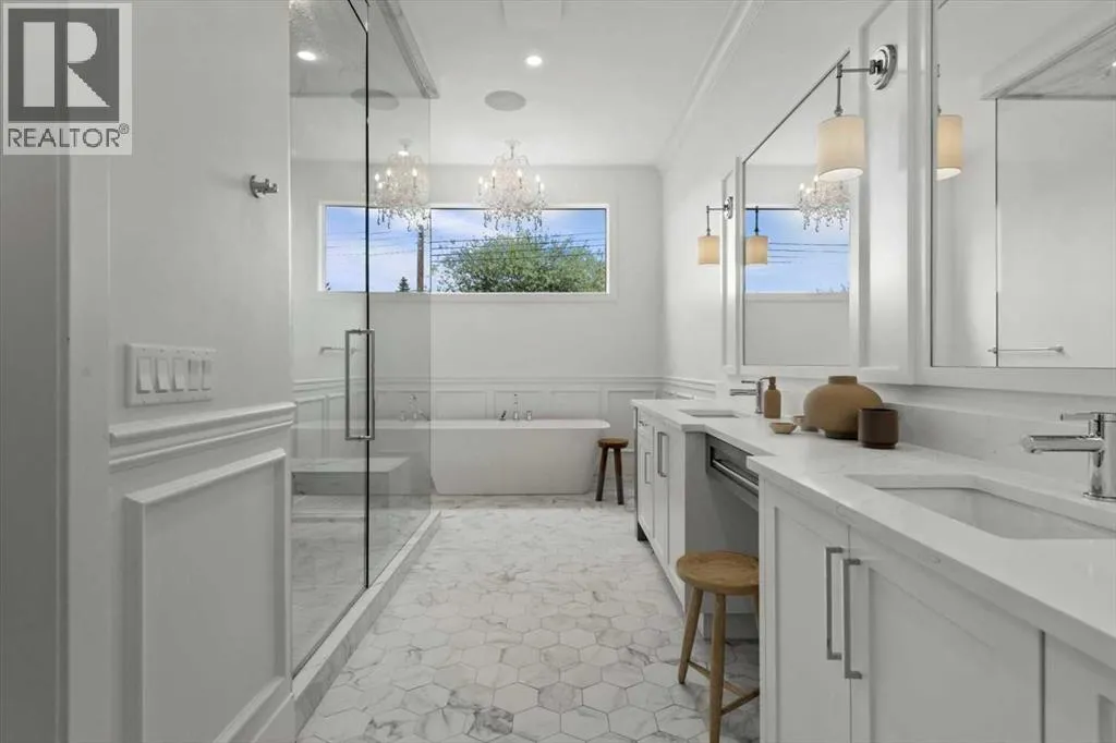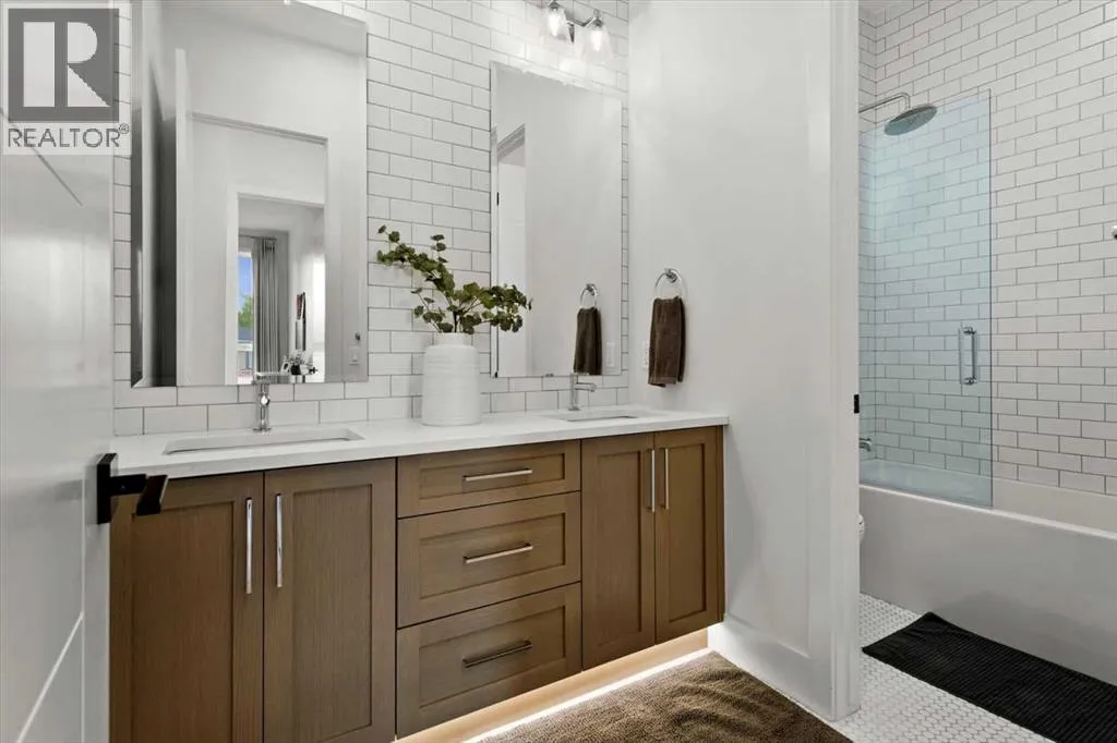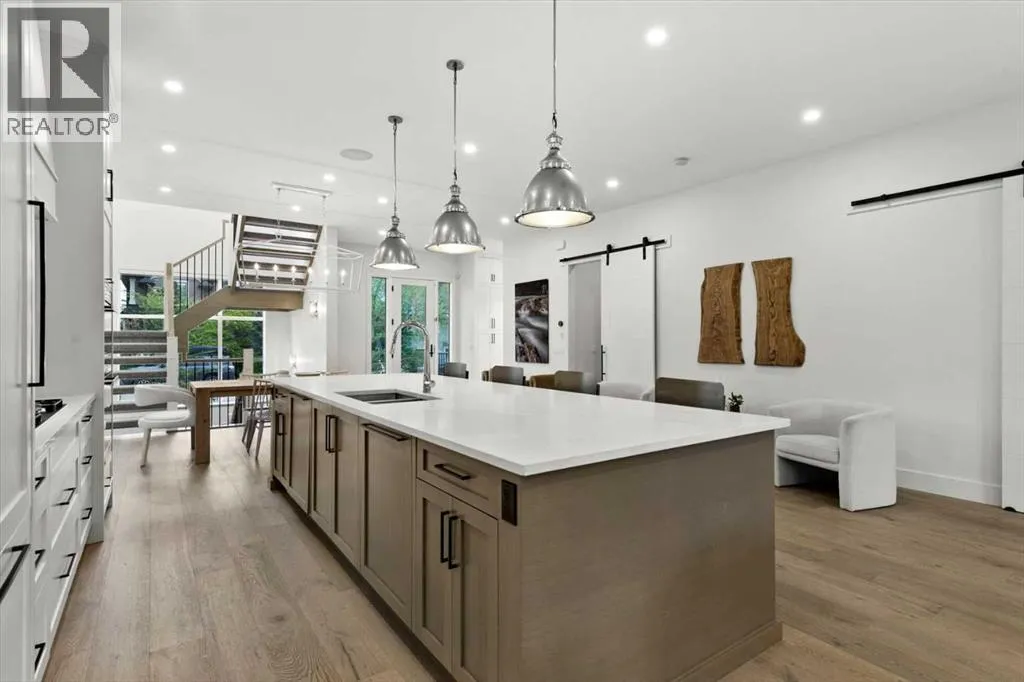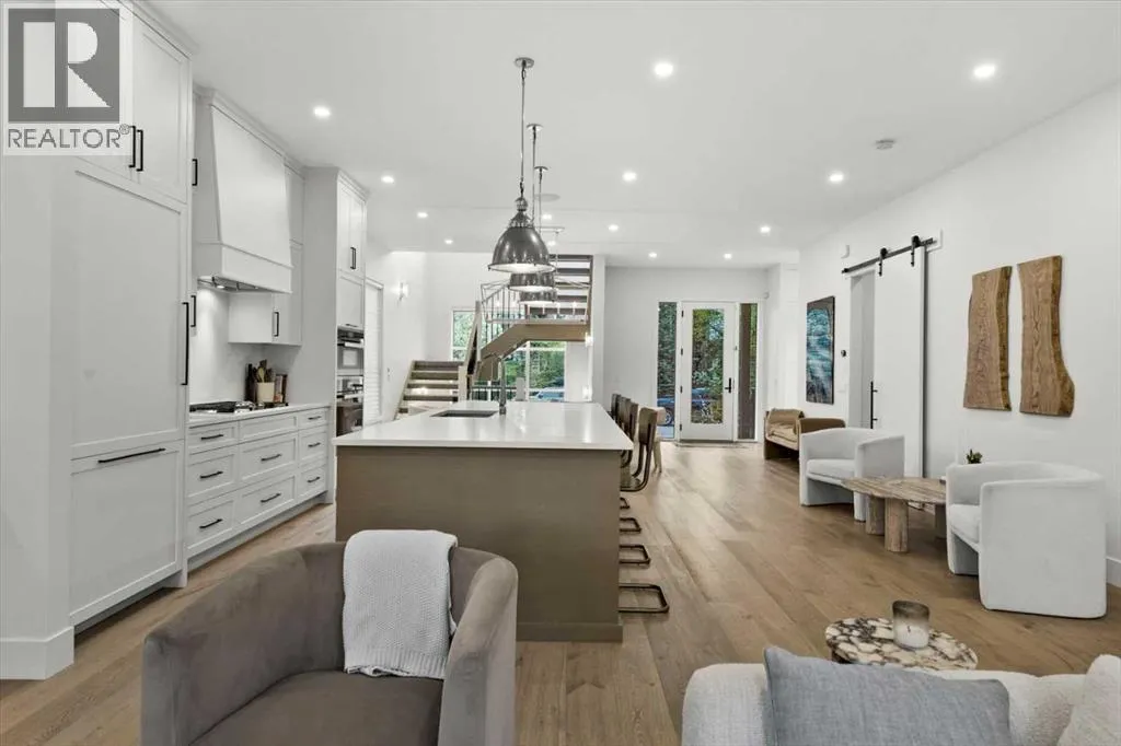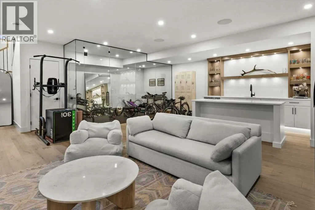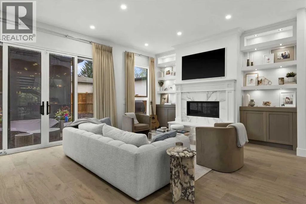 Welcome to this exceptional custom-built executive home offers over 3,700 sqft of beautifully curated living space in the heart of Altadore, one of Calgaryâs most sought after inner city communities. Thoughtfully designed with elevated finishes and timeless appeal, this residence features 10 ft ceilings on both the main and upper levels, wide-plank engineered white oak hardwood flooring, and west facing backyard ideal for enjoying a summer evening. The gourmet kitchen is complete with a Miele appliance package including a 5-burner gas cooktop, double wall ovens, paneled refrigerator, quartz countertops, an expansive island with storage, and a custom walk-through pantry complete with pull-out drawers, coffee station, and extensive custom built-ins. The open concept layout is filled with natural light and seamlessly connects the kitchen, designated dining space, and living room which features a gas fireplace with more custom built-ins providing for ample storage. This open concept layout is perfect for everyday living and entertaining. Upstairs, the luxurious primary retreat boasts soaring 12 ft ceilings, a spacious walk-in closet with built-ins, and a spa-inspired ensuite featuring a steam shower, stand-alone tub, dual vanities, heated floors, and designer finishes. Two additional oversized bedrooms with custom light fixtures and Restoration Hardware blackout window coverings, a full bath with dual sinks and in-floor heat, plus a spacious laundry room with ample storage complete the upper level. Be sure to admire the wainscotting detailing throughout the second level. The fully developed lower level offers 9 ft ceilings, in-floor heating, a large family room with wet bar and island, a dedicated glass-walled home gym with rubber flooring, an oversized fourth bedroom, and a stylish 3-piece bathroom. Enjoy the professionally landscaped outdoor space with low maintenance landscaping, west backyard, irrigation system, Gemstone lighting, built in gas BBQ line. Additiona l features include a double detached garage, security system, custom solid core doors, A/C, high-efficiency furnace, Navien boiler, radon mitigation system, built-in speakers, and extensive designer lighting and finishes throughout. Steps from top-rated schools (Altadore Elementary, Rundle Academy, Masterâs Academy, Lycée Louis Pasteur), minutes to Sandy Beach, Glenmore Reservoir, River Park, and a quick commute to downtown and the vibrant Marda Loop district, this is inner-city living at its finest with every space curated for comfort, beauty and function. Viewings by private appointment only. (id:27476)