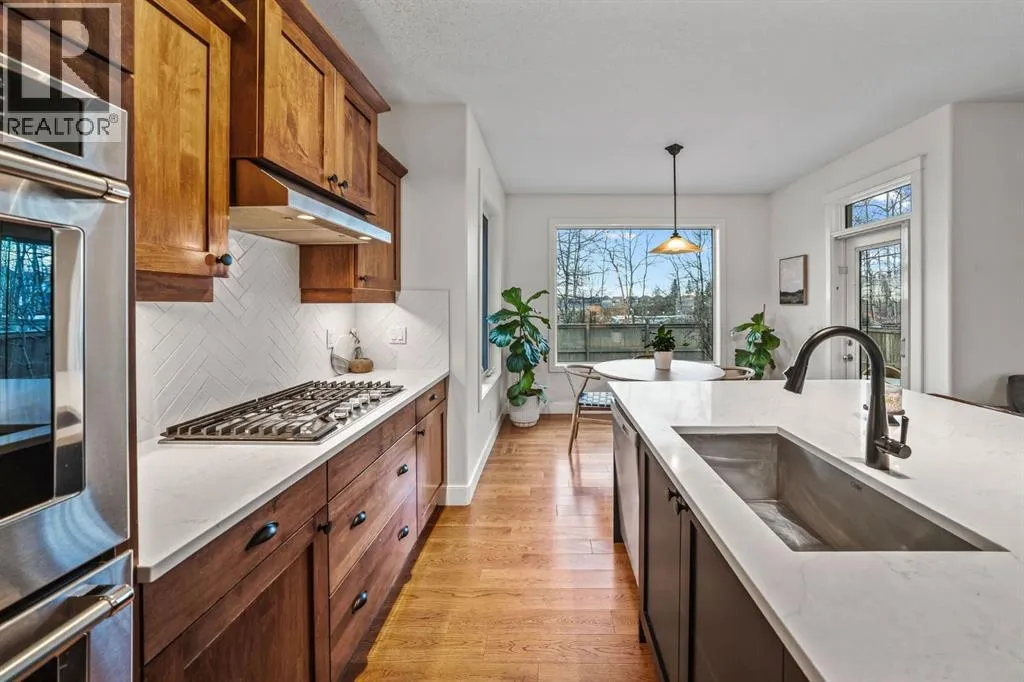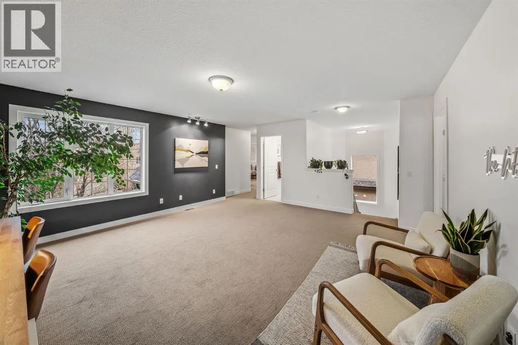 Welcome to this immaculate 4 bedroom, 3.5 bathroom home in the prestigious community of Wentworth. This home is located on a south facing lot, folded with natural light during the day and is perfectly situated minutes from top rated schools, parks, shopping, and playgrounds. Upon entry, you are greeted by rich hardwood flooring and a modern open floor plan. The spacious living room features elegant built-in cabinetry complete with a gas fireplace. The gourmet kitchen is every cooks dream, featuring double ovens, a gas cooktop, stainless steel appliances, a large island with a breakfast bar, and dedicated wine storage. The adjacent sunny breakfast nook offers easy access to the private backyard, while the expansive formal dining room is perfectly framed by oversized windows. The upper level offers a versatile bonus room, perfect for movie nights that separate the two spacious secondary bedrooms from the primary retreat. The primary bedroom features a luxurious 5-piece ensuite with a soaking tub and a walk-in closet. The fully finished lower level is an entertainerâs dream, complete with a large recreation room, a second fireplace, a fully equipped wet bar, and a fourth bedroom with a 3-piece bath. Outside, enjoy the privacy of a lush, fully landscaped backyard with a massive deck with a treed walking path behind. Walking distance to Wentworth Woods, grocery stores, and West Springs Green, with seamless access to the LRT, downtown, and the mountains. Upgrades include a new furnace in 2025, window treatments, Gemstone lighting, new shed and Air Conditioning. (id:27476)
