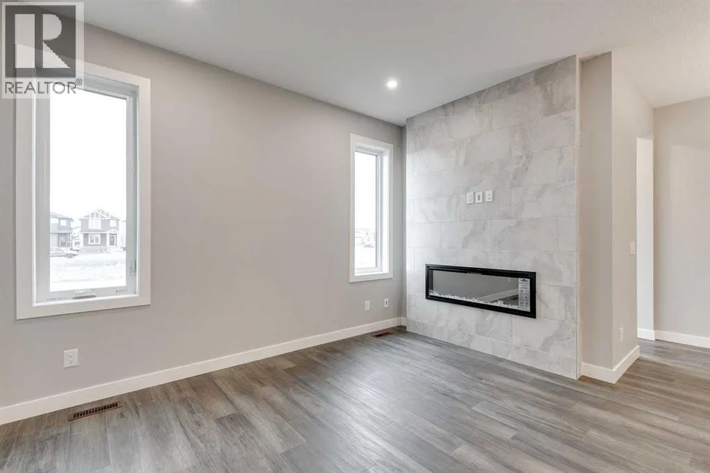 Discover the Concord II by Broadview Homes, a new-construction opportunity in Hotchkiss, one of southeast Calgaryâs newest master-planned communities. Offering a thoughtful layout with a main floor flex room, upstairs loft, side entrance, and basement rough-ins for future development, this home is designed to grow with your lifestyle. Step inside to a welcoming front flex space that can easily serve as a home office, playroom, or study area. The heart of the home is the open-concept kitchen, featuring a spacious 7â6â island, abundant cabinetry, and a large walk-in pantry that keeps everything organized and within reach. The dining area connects seamlessly to the great room, where an electric fireplace adds warmth and character to the space. The side entrance provides direct access to the undeveloped basement, complete with rough-ins already in place, creating excellent potential for additional living space, extra bedrooms, or a future lower-level retreat. Upstairs, the central loft offers valuable flexibility, perfect for a second family room, homework zone, or cozy movie-night lounge. Two additional bedrooms, a full bathroom, convenient upper-floor laundry, and a linen closet complete the upper level. The primary suite is a private escape with a walk-in closet and a well-appointed ensuite. Located in Hotchkiss, this southeast Calgary community is surrounded by scenic pathways, expansive green space, and a stunning 30-acre wetland, with future parks, schools, and shopping planned nearby. Enjoy quick access to Stoney Trail and Highway 22X, making it easy to reach Seton, the YMCA, South Health Campus, and major retail amenities. A fantastic chance to own a brand new Broadview home in SE Calgary, offering modern design, future development potential, and everyday functionality in a vibrant new neighbourhood. (id:27476)