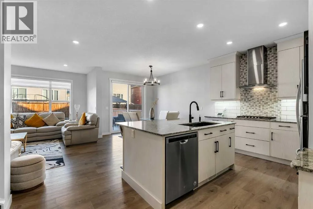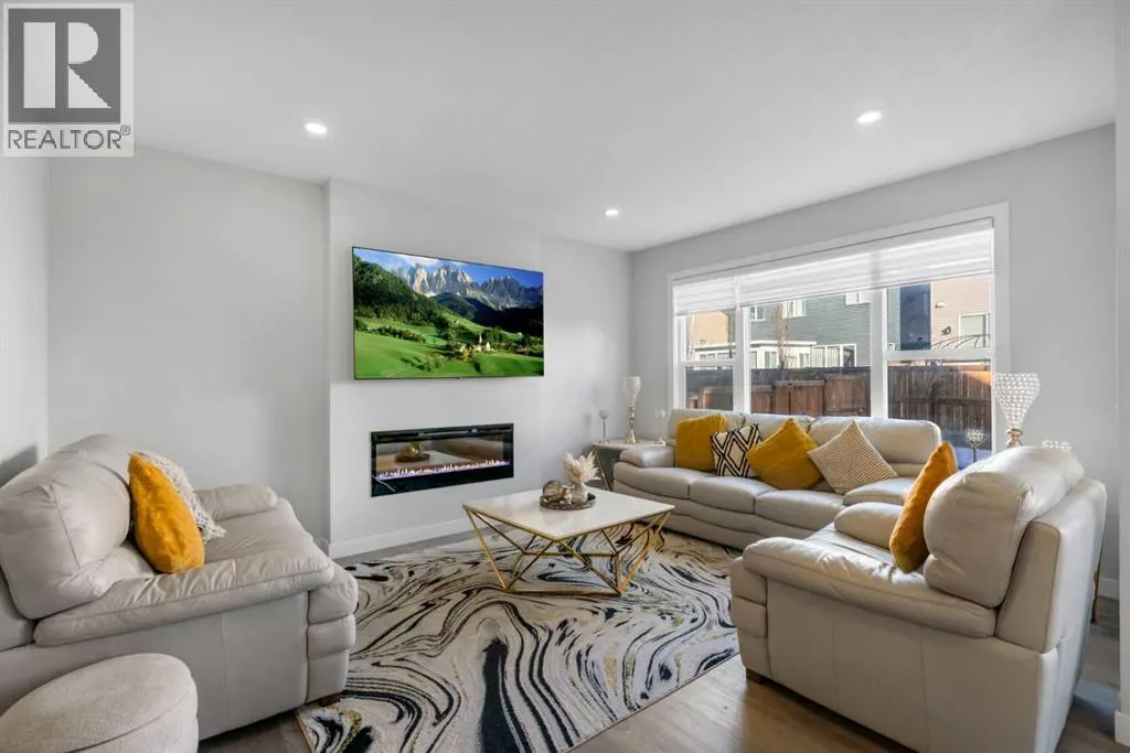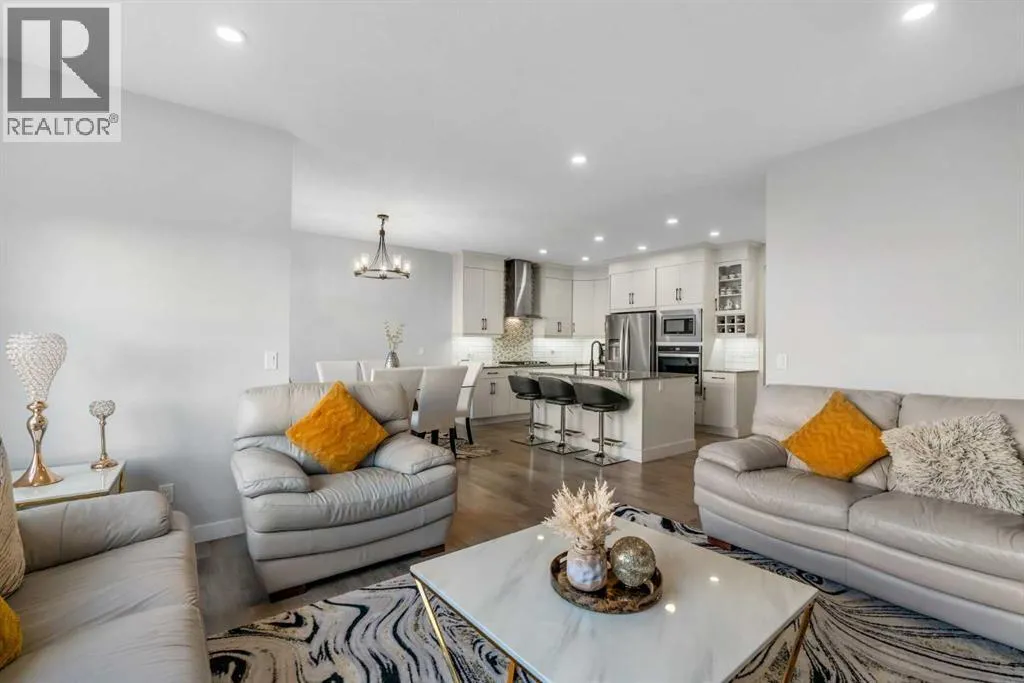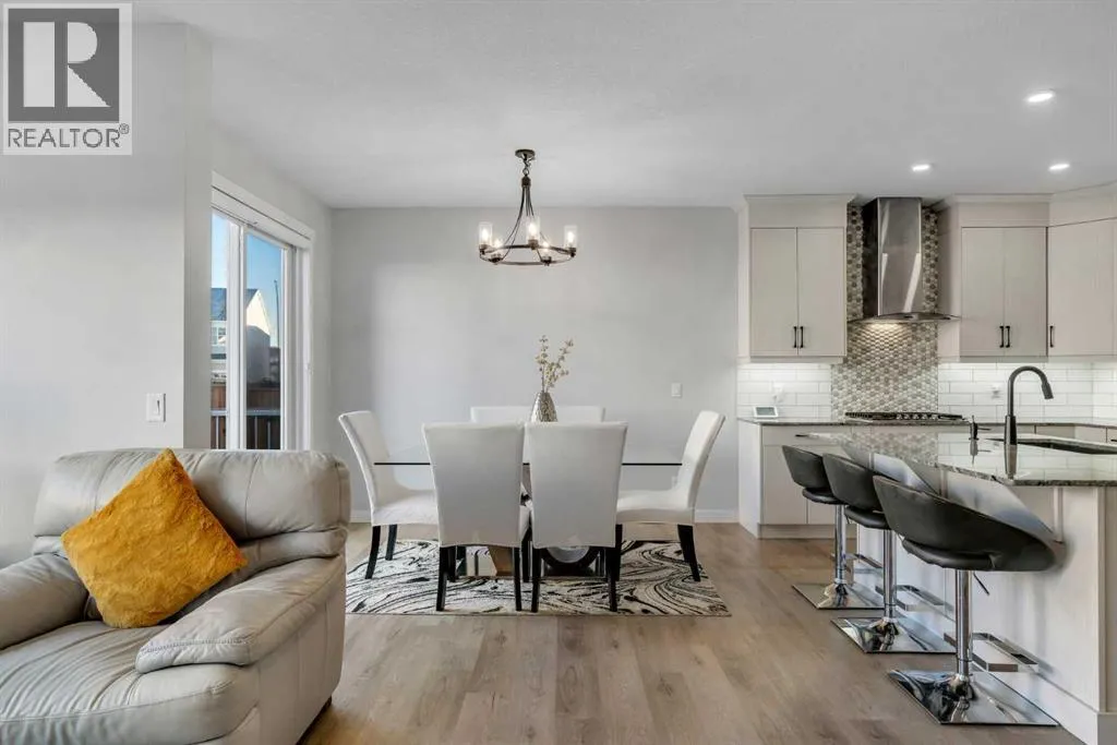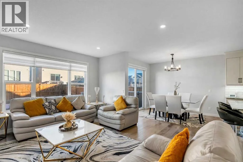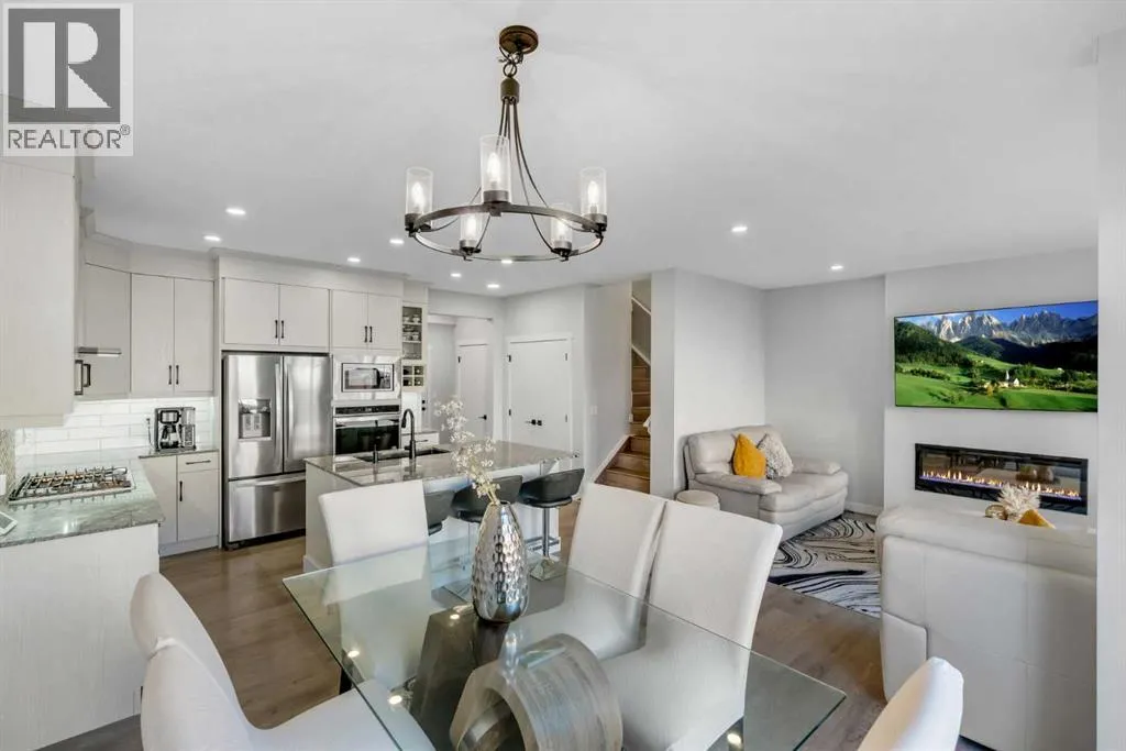*Watch the video* Open House feb 14th: 11:30 am - 1:30 pm. Home Sweet Home! Fall in love at first sight with this picture-perfect home where luxury meets everyday functionality in the heart of Carrington NW. This fully upgraded, nearly 2,000 SQFT, move-in ready Trico-built home showcases high-end finishes and modern elegance â prepare to be impressed! Located on a quiet, family-oriented street just steps from walking trails and the pond, this home offers the perfect setting for nature lovers. Excellent Location | Bright & Open Floor Plan | Generous Size Backyard | Stunning Chef's Kitchen | Top of the Line Appliances | 3 Spacious Bedrooms (All with walk-in closets) | Vinyl Flooring Throughout | Bonus Room with Vaulted Ceilings | Side Entrance | 9FT Basement Ceilings. Upon entry, a warm and inviting foyer welcomes you into an open floor plan filled with natural light. The state-of-the-art chefâs kitchen is the true showstopper â featuring gorgeous quartz countertops, extensive cabinetry including glass cabinets and wine shelving, sleek black hardware, an upgraded designer backsplash, and a massive island perfect for entertaining. The elegant living room is framed by large windows and a cozy fireplace, creating a warm and inviting space for winter evenings. The spacious dining area comfortably accommodates a 6â8 seat table for family gatherings. Upstairs, upgraded vinyl flooring continues throughout â no carpet whatsoever! The vaulted bonus room is ideal for movie nights or a kidsâ retreat. This level offers three generous bedrooms, including a primary suite with a walk-in closet and a private ensuite featuring a tub, glass shower, and dual sinks. Two additional bedrooms with walk-in closets, a full bathroom, and a convenient laundry room complete the upper floor. And with a separate side entrance and an unfinished basement with rough-ins for a future bathroom, wet bar, and laundry, youâre not just buying a home â youâre investing in future potential. Ample of backyaar d space - something which would find as a rare feature now days - your kids would love to play around and your summer gatherings would be amazing. Located in a desirable NW Calgary community with quick access to Stoney Trail, schools, parks, and shopping, this home offers the perfect blend of luxury, space, and modern convenience. Donât miss your chance to own this fully loaded dream home. (id:27476)
