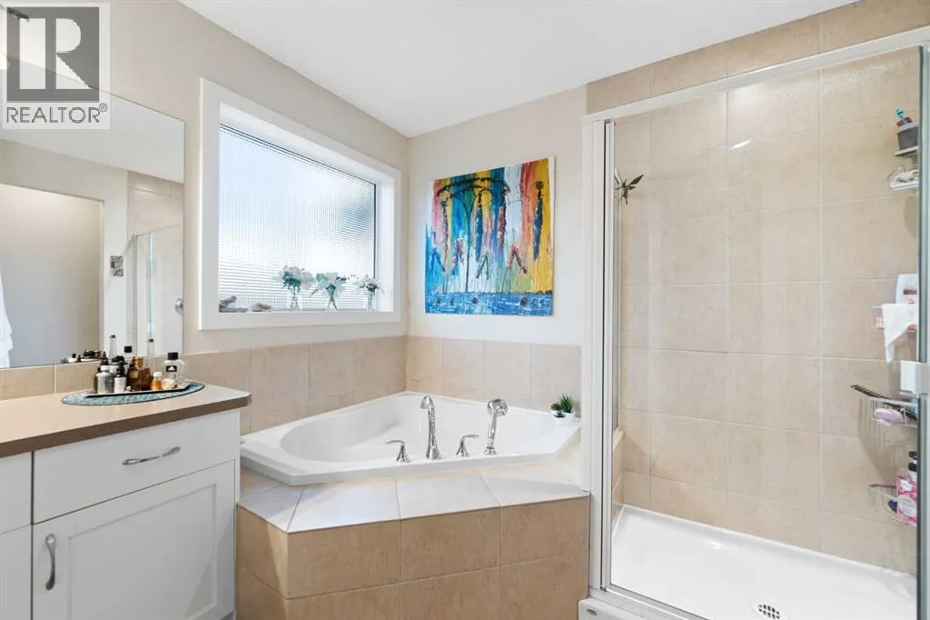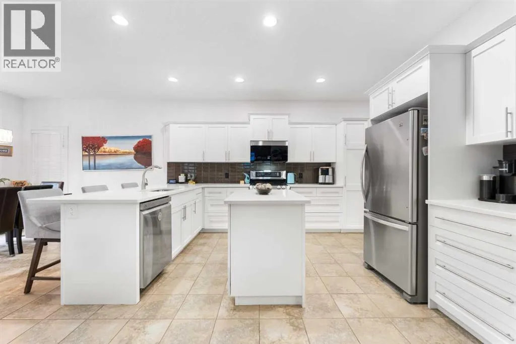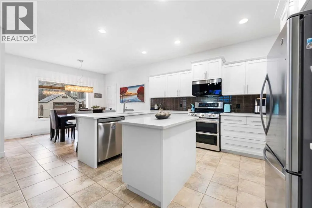 OPEN HOUSE Sat Feb 14th from 1:00 - 4:00 PM! Wow! Check out this well maintained home located in a quiet location and very close to numerous schools, parks, playgrounds and so much more! The main floor starts out with low maintenance tiled flooring running throughout and as you make your way into the main living areas you will LOVE the central kitchen where you will gather with family and friends! It features beautiful quartz countertops, LOADS of cabinet and counter space, an island with storage space, there are stainless steel appliances, subway tiled backsplash, gorgeous white cabinetry, a perfect office space just between the mudroom and the kitchen and there is a large pantry! Beside the kitchen you have a generous dining space and there is a cozy living room with a gas fireplace, mantle and an amazing feature wall! The main floor is finished off with a half bathroom for your guests and easy access to the back yard from the dining room! Upstairs you will LOVE the bonus room with SEVEN windows and partial mountain views!! Down the hallway there is a lovely primary bedroom with a walk in closet and a full ensuite bathroom with a soaker tub and a separate shower! There are 2 additional bedrooms upstairs, another full bathroom for the kids AND upper laundry! The basement is fully finished with a FOURTH bedroom, an awesome rec room and ANOTHER full bathroom that features a seated walk in jetted tub! The yard is made to enjoy with a great concrete patio and still plenty of grass for the kids and pets to enjoy! Here is a list of the recent upgrades and features: Stove & Dishwasher (2024), Central A/C (2023), Microwave (2023), Paint, sink, counters and faucet in the kitchen (2023), Feature wall & mantle (2023), Paint on baseboards and trim (2023), shingles (2022), water tank (2021), washer & Dryer (2019) AND furnace maintenance in 2024 and dryer vent maintenance in 2025! So as you can see there have been plenty of upgrades and maintenance performed in this move in read y home! (id:27476)