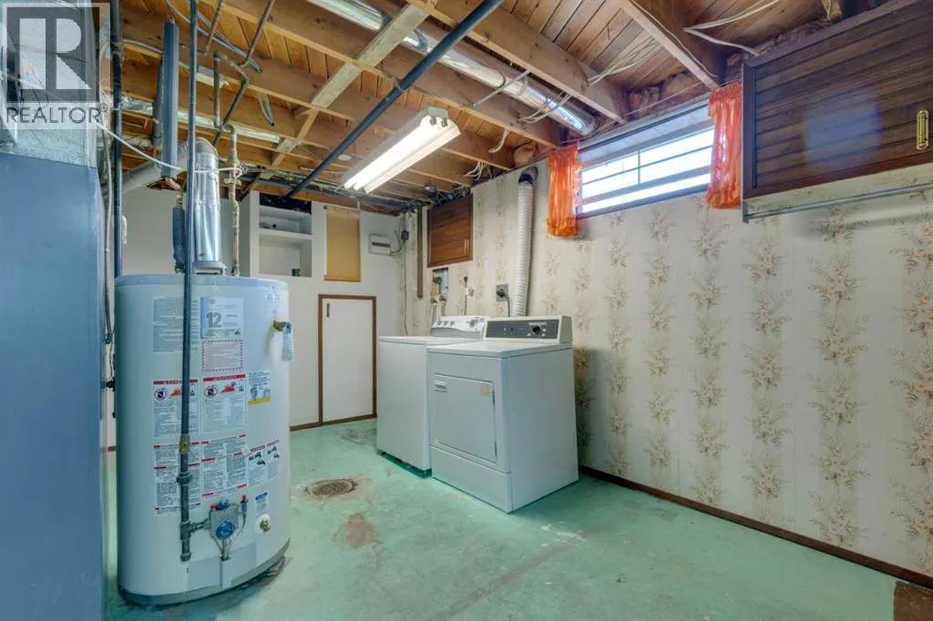 Welcome to Huntington Hills to this well cared for bungalow that features over 2200 sq. ft. of living space on two finished levels. On a huge pie lot (6049 SF), on a beautiful street, this 1108 sq. ft. home welcomes you with an abundance of natural light flooding in. You enter into the separate living dining areas, then moving to the back of the house to the gleaming white kitchen over looking the yard, down the hall to the 3 bedrooms and the 4pc bathroom. There used to be a wood burning stove in the dining room, that is still vented, which is now in the garage and can be reinstalled. On the lower level there's a large rec room, wet bar, a bedroom, a 4 pc bathroom and the laundry/storage areas. The yard is fenced, faces North, features plenty of room for all your toys, has fenced parking for your RV, and has a single oversized garage. We're close to great schools, shopping and this home is available for a quick possession. Please call your favorite realtor to view. (id:27476)