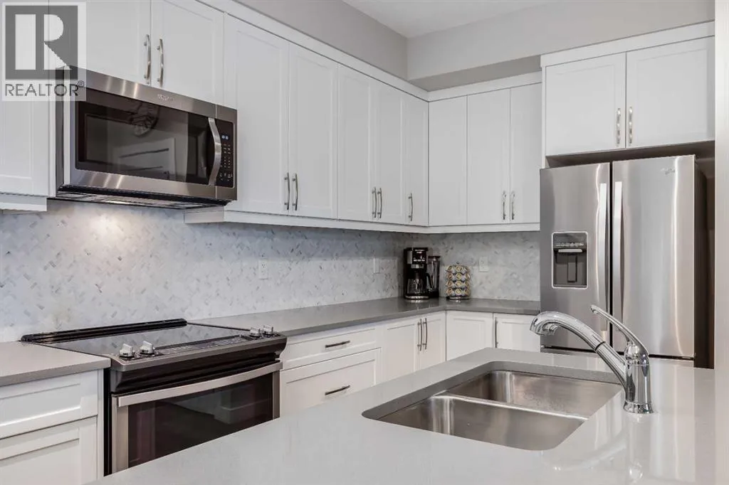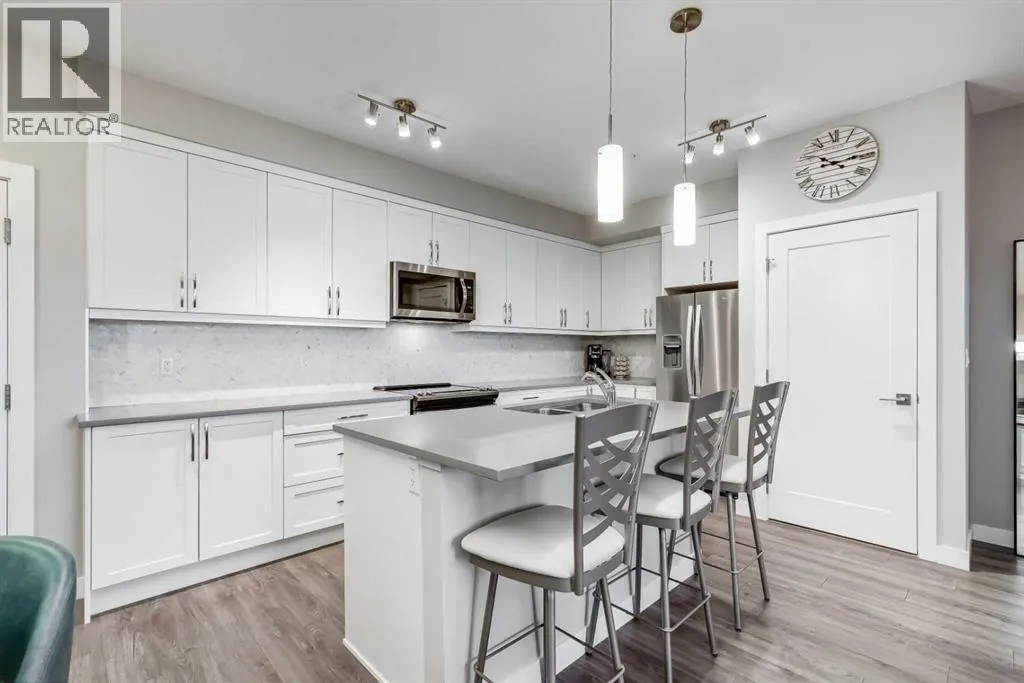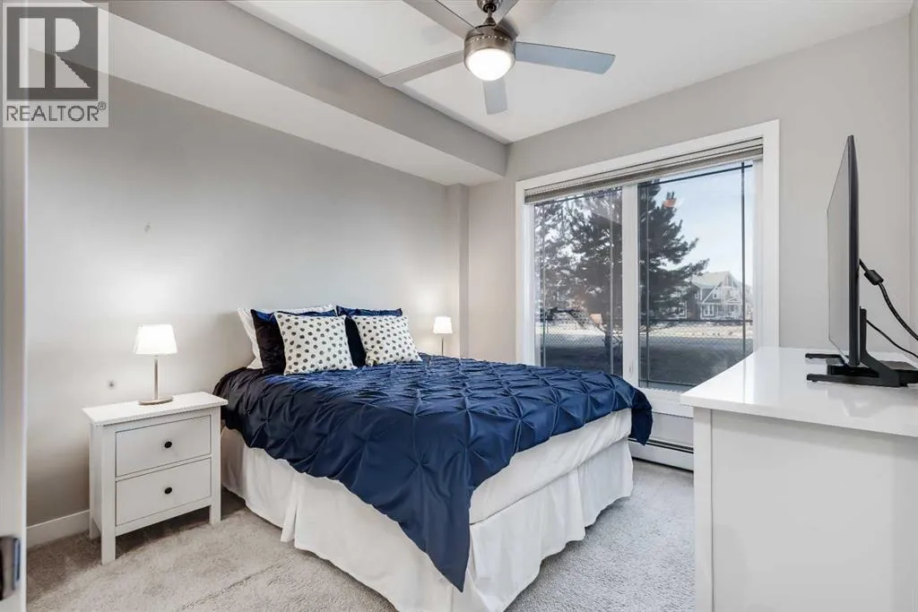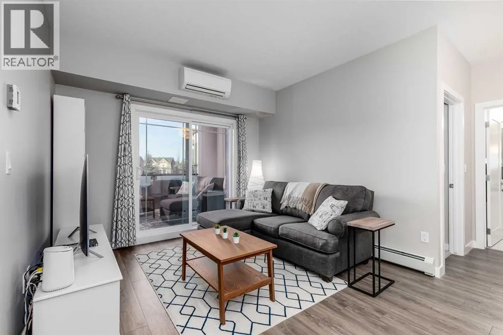 Welcome to the Regatta in Auburn Bay. Discover the thoughtfully designed Delta floorplan, offering a spacious kitchen with quartz countertops, stainless steel appliances, ample cabinetry, generous counter space, large island and in suite laundry âperfect for everyday living or entertaining. Added upgrades include in-unit air conditioning and sun-control window film on all windows, ensuring year-round comfort while helping reduce heat and glare from direct sunlight.Both bedrooms are a great size and are separated by the living space to allow for privacy. The primary bedroom has a walk-in closet leading to a 4 piece ensuite complete with double sinks and quartz countertops. Both bedrooms offer park like views. In-suite storage provides added functionalityâideal for a freezer, sports gear, or seasonal items.Backing directly onto green space, this unit enjoys a peaceful, park-like setting with serene views and easy access to walking paths and outdoor amenities such as a dog wash station and a Bocce Ball court! Enjoy all the benefits of lake community living, including year-round recreation, while being walking distance to shopping, transit, and major traffic routes nearby.All this located in a well managed complex, an ideal opportunity for first-time buyers or downsizers, seeking location, lifestyle, and value. (id:27476)