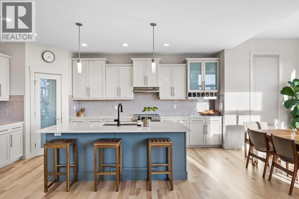 **OPEN HOUSE - Sunday, Feb 15 (11-1pm)**Discover refined living in the sought-after community of Springbank Hill, where elegance meets everyday convenience. Ideally positioned on a sunny corner walkout lot, this extensively updated Montreux residence offers over 3,200 square feet of thoughtfully designed living space, steps from scenic walking and biking paths, playgrounds, and minutes from Calgaryâs top private schools.The sun-filled main level showcases refinished hardwood floors, smooth modern ceilings (popcorn removed throughout the main and upper levels), and a seamless layout designed for both family living and entertaining. The refreshed kitchen features newly sprayed cabinetry, quartz countertops, an updated backsplash, stainless steel sink, and a newer range (2023 with extended warranty), creating a polished space for daily life and hosting. A private main-floor den provides an ideal work-from-home retreat, while the living room is anchored by a reimagined fireplace with a classic brick surround.Significant system upgrades offer peace of mind and modern efficiency, including two new Lennox furnaces (2023), a new hot water tank and boiler (2023), radon mitigation (2023), upgraded roof insulation (2025), professionally sealed doors and windows, Google Nest thermostats, LED lighting throughout, an under-sink water filtration system, and a new LG washer (2025).Upstairs, three generous bedrooms, a full family bathroom, and a spacious bonus room with custom decorative wood screening continue the homeâs refined aesthetic. New wool carpet with premium underlay adds comfort and durability. The primary suite serves as a serene retreat, offering mountain views, a well-appointed ensuite, and solar-control window film for year-round comfort and efficiency.The fully finished walkout basement adds versatility with two additional bedrooms, a full bathroom, recreation space, and a kitchenâideal for guests, extended family, or multi-generational living. Outside, the south-facing backyard is maturely landscaped with an upper walkout deck and covered lower patio, both recently sanded and refinished.Offering the charm of an established neighborhood with the confidence of extensive recent upgrades, this move-in-ready Springbank Hill home presents a rare opportunity for luxury, space, and long-term value. Homes in this exceptional neighborhood rarely become availableâschedule your private showing today and secure your place in one of Calgaryâs most prestigious communities. (id:27476)