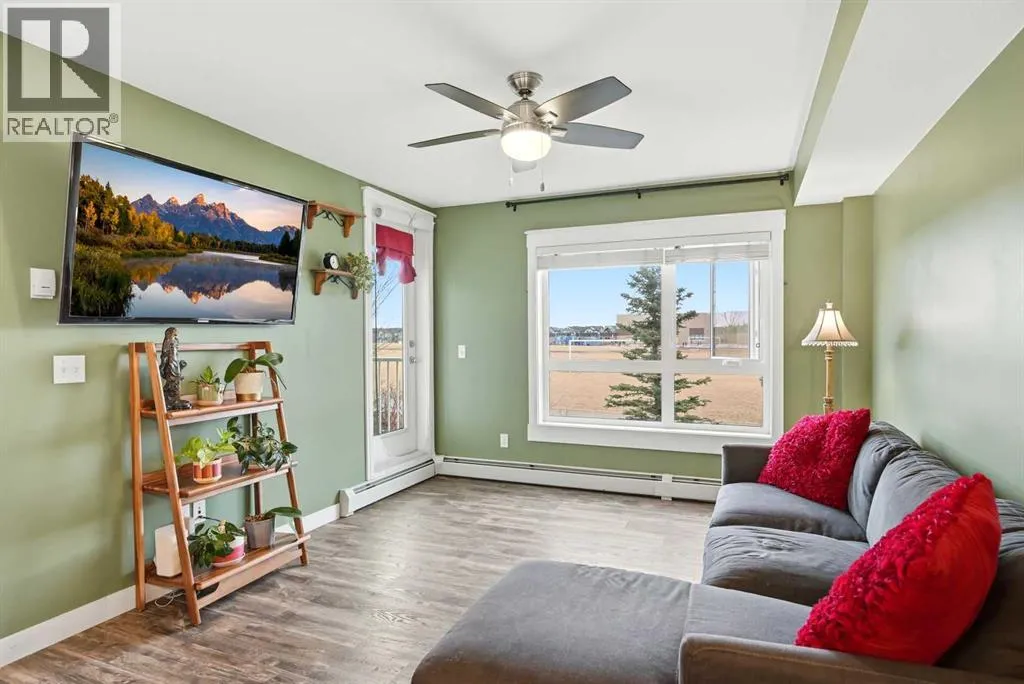 Welcome to this 2 bedroom unit in "Orchard Sky" in Skyview Ranch Overlooking Greenspace. Get amazing value in this gorgeous and well-maintained second-floor unit. This unit features a modern open concept design with large windows for lots of natural light. 1 titled parking stall, a spacious kitchen which boasts quartz counter-tops, tiled back-splash, and stainless-steel appliances, 4pc bathroom. In addition, the unit features patio doors that leads to a patio over Looking green space for them perfect summer evenings. Walking distance to public transit, playgrounds, schools, shopping, dining and easy access to major traffic routes in Calgary. You don't want to miss this opportunity to own this amazing property. (id:27476)
