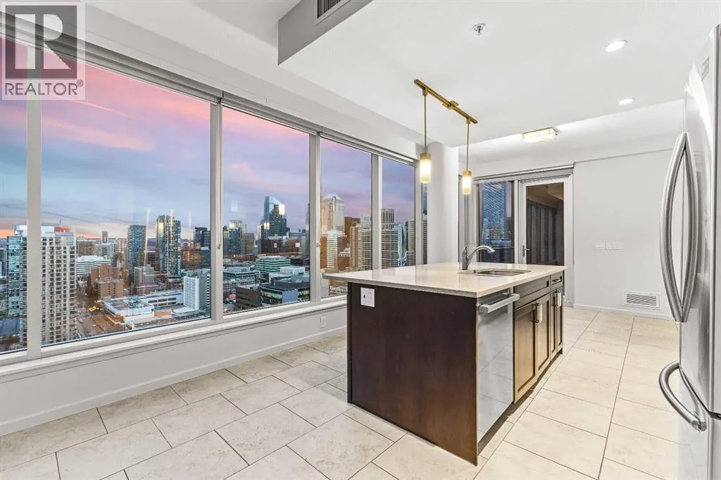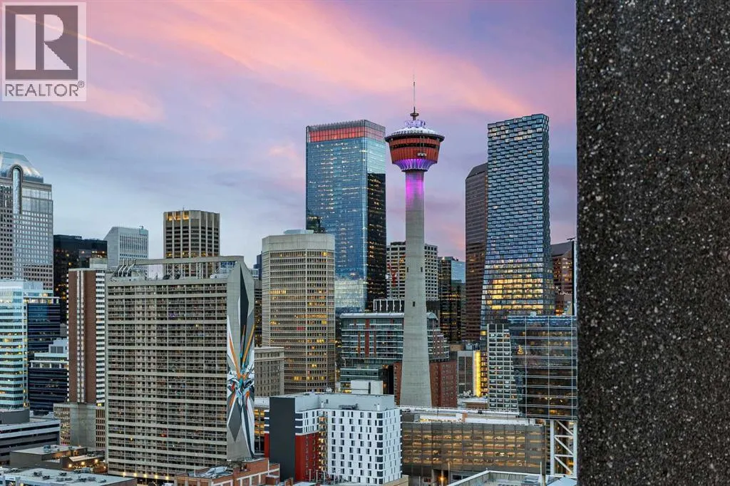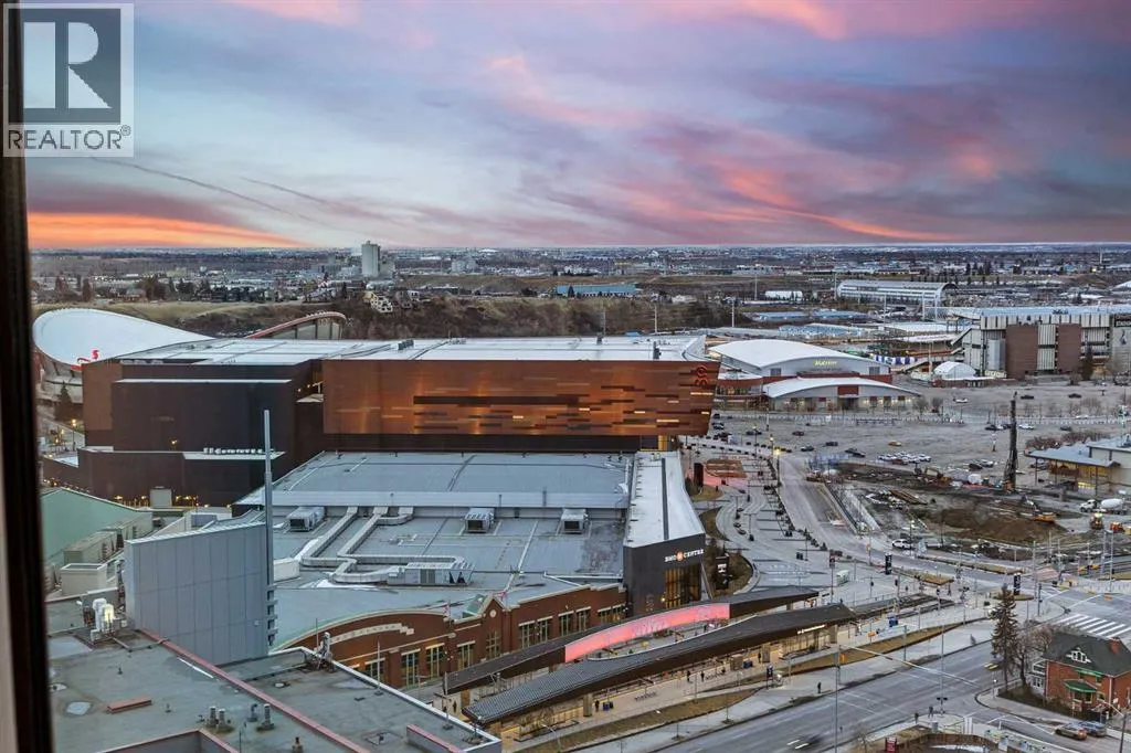 RISING above the city in the striking NuEra building, this exceptional 22nd-floor CORNER residence offers truly BREATHTAKING, UNOBSTRUCTED VIEWS of DOWNTOWN Calgary, the distant ROCKY MOUNTAINS, and Stampede Park. Framed by floor-to-ceiling windows and enhanced by 9-foot ceilings, the condo is flooded with natural light and delivers a SPECTACULAR SKYLINE backdropâstunning by day and absolutely MAGICAL at night. Enjoy a front-row seat to the Stampede FIREWORKS, visible right from your bed, along with unforgettable SUNSETS and panoramic cityscapes. The thoughtfully designed OPEN CONCEPT layout is ideal for both everyday living and entertaining. The modern kitchen features custom cabinetry, GRANITE COUNTERTOPS, STAINLESS STEEL APPLIANCES and a LARGE ISLAND that flows seamlessly into the living and dining areas. The primary bedroom showcases expansive windows, a walk-through closet and a private ensuite. The second bedroom is positioned on the opposite side of the unit for added privacy. It offers SPECTACULAR DOWNTOWN VIEWS and convenient access to a sleek 3-piece bathroomâperfect for guests, a home office, or a roommate setup. Just PROFESSIONALLY PAINTED. Additional highlights include in-suite laundry, secure UNDERGROUND parking, a storage locker, bike storage, and visitor parking. Residents enjoy premium amenities such as a fully equipped FITNESS CENTRE, residentsâ lounge, OUTDOOR TERRACE and professional CONCEIRGE service. Ideally located in the heart of Victoria Park, just steps from Stampede Park, the new ENTERTAINMENT district, 17th Avenue, the C-Train, Sunterra Market and some of Calgaryâs best DINNG, shopping, and NIGHTLIFE. This is downtown living at its finest. Embrace this opportunity to own a high-rise condo with UNMATCHED VIEWS, lifestyle and convenience. An opportunity not to be missed â ideal for those right-sizing, purchasing their first home, or seeking an investment. (id:27476)