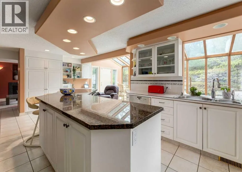 An incredible opportunity awaits for RENOVATORS, FLIPPERS, INVESTORS and all SAVVY buyers in the highly desirable community of Hawkwood. This executive-style home backs directly onto GREEN SPACE and offers breathtaking VIEWS of the ROCKY MOUNTAINS and foothills. With over 3000 SQUARE FEET above grade, this spacious home is perfect for buyers looking to renovate and add their personal touch while appreciating a well-designed layout and unbeatable location. The main floor features VAULTED CEILINGS, elegant spindle railings, and TIMELESS architectural details. Enjoy a formal living room with a gas fireplace and custom precast concrete mantle, a generous dining room, and a functional kitchen with granite countertops. One of the homeâs standout features is the bright glass-enclosed sunroomâperfect for family breakfasts, dinners, or simply soaking in the views and nature year-round. A cozy family room with a second fireplace, a private office, and a powder room complete the main level. Upstairs, the large primary bedroom includes a private sundeck with PANORAMIC MOUNTAIN VIEWS, a luxurious ensuite with jetted tub and walk-in shower, and ample closet space with built-ins. Two additional bedrooms, a full bathroom, and an upper-floor laundry room offer added convenience for family living. The fully finished basement features a media room with a wood stove, a games area, flex space that could be used as a 4th bedroom, and another full bathroomâideal for entertaining or guest accommodation. Outside, the private tiered backyard offers a peaceful retreat surrounded by mature trees, flowering shrubs, and a tranquil pond/fountain. A multi-level deck with gas line for BBQ makes outdoor dining and entertaining easy. Notable upgrades include some vinyl windows, two hot water tanks, and a durable metal roof. Located just minutes from Crowfoot Shopping, Melcor YMCA, the LRT, the University of Calgary, and with easy access to Stoney Trail and the mountains, this home combines space, vie ws, and incredible potential in one of NW Calgaryâs most sought-after communities. Donât miss this rare chance to create your dream home in an exceptional location. Click the media icon for the video tour and book your private showing today! (id:27476)