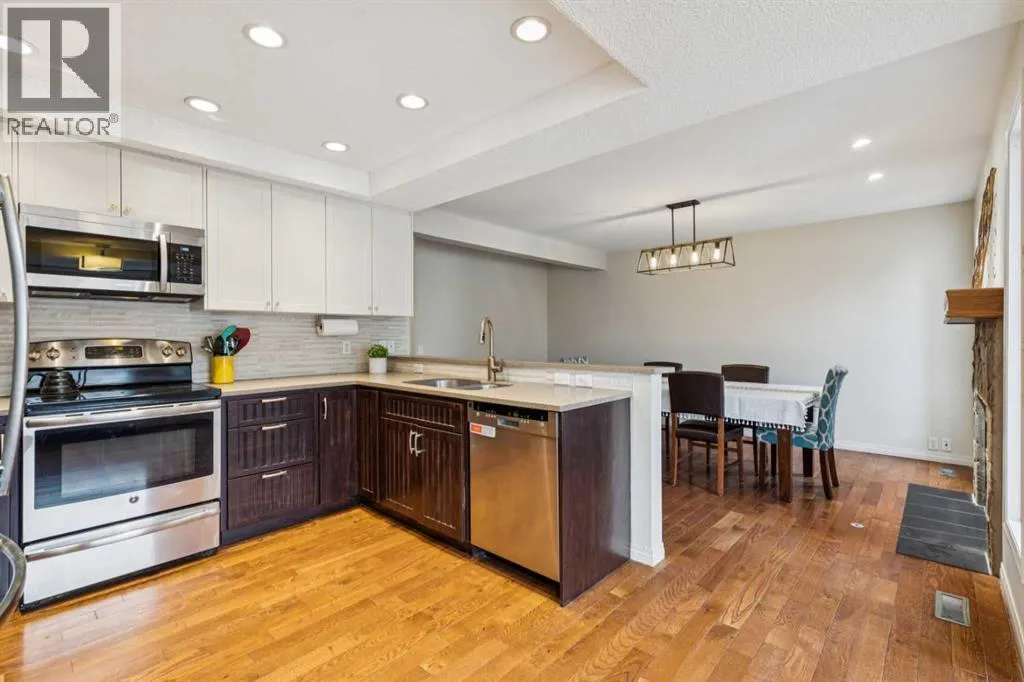 Welcome to your bright and breezy family haven in Woodbineâwhere comfort, style, and practicality all decided to move in together....Step inside to a main floor that feels instantly welcoming, with vaulted ceilings and a beautiful bay window that drenches the living room in natural light. Rich hardwood flooring leads you into the dining area, where a modern chandelier sets the mood and an impressive stone-faced fireplace adds both warmth and a touch of drama....The updated kitchen is ready for both everyday meals and weekend entertaining, featuring stainless steel appliances and a raised breakfast bar that overlooks the dining roomâperfect for chatting with guests or supervising homework while you cook....Head upstairs to find three generously sized bedrooms. The serene primary retreat offers a walk-in closet and a private full ensuite, creating your own little escape at the end of the day. Two additional bright bedrooms share another full bathroom, giving everyone space and privacy (and reducing the morning line-up)....Everyday living is made easier with a convenient main-floor laundry room, complete with a modern LG washer and dryerâbecause hauling baskets up and down stairs is overrated....Outside, the backyard is truly an extension of your living space. A fully fenced yard offers peace of mind, while the wooden deck and permanent pergola over the paved patio set the stage for al fresco dining, sunset lounging, or a quiet coffee before the day begins. The massive childrenâs play structure will make you very popular with the younger crowd....The basement offers a flexible space that can adapt as your life doesâhome office, gym, hobby room, or extra storageâitâs ready for whatever you need...A practical bonus: the double attached garage keeps your vehicles warm, your storage organized, and your snow shoveling time to a minimum....Set in the established community of Woodbine, this home enjoys a prime southwest location. Youâre conveniently close to the Ring Road, gi ving you easy commuting access around the city and a quick escape to the west and the mountains for weekend adventures. Adjacent to the community, Fish Creek Provincial Park offers endless nature trails, biking paths, and river viewsâso you can trade screen time for green time in just a few minutes...Tucked on a quiet, family-friendly crescent, with nearby schools, parks, major transit routes, and essential amenities, this is a home where everyday life becomes just a little more effortlessâand a lot more enjoyable. (id:27476)