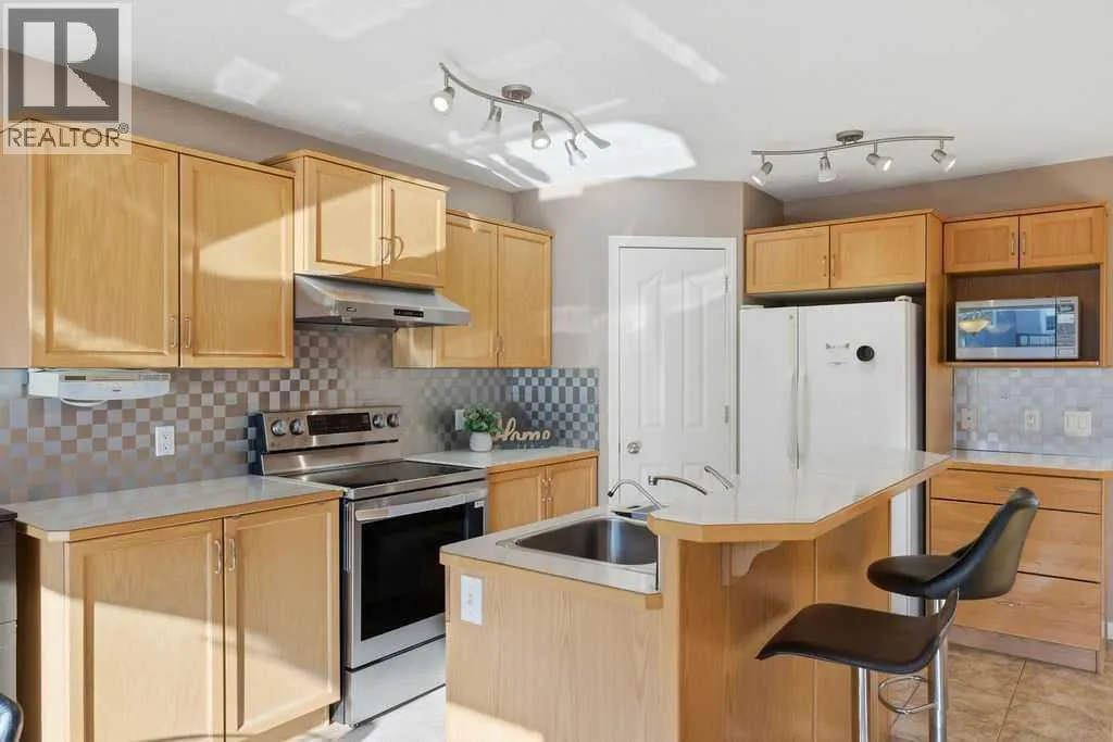 This is a fantastic place to call your first home. Well Mantained house Ideally located in Kincora on a quiet crescent, thereâs plenty of space for kids to safely run and play right out front. Situated on a generous 4833sf huge lot, the home features a spectacular south-facing backyard and huge deckâsoaked in sunshine all day long. Offering almost 1,800sq. ft. above grade, this home includes three bedrooms plus a spacious bonus room upstairs youâll absolutely love. The main level showcases a large great room with beautiful maple hardwood floors, along with an open-concept kitchen featuring a breakfast bar, generous dining area, and direct access to the deck and backyardâperfect for keeping an eye on the kids while preparing meals. The kitchen is equipped with newer appliances (excluding the fridge), making it move-in ready and functional for everyday living. Upstairs, the primary suite includes a walk-in closet and a private 4-piece ensuite. Two additional well-sized bedrooms and a stunning bonus room with vaulted ceilings complete the upper level. Recent upgrades include a new roof (2024)and new furnace(2026), offering peace of mind for years to come. The basement provides a wide open layout with plumbing already roughed-in, making it easy to customize and grow into over time. Donât miss this opportunityâcall today to book your private showing. (id:27476)