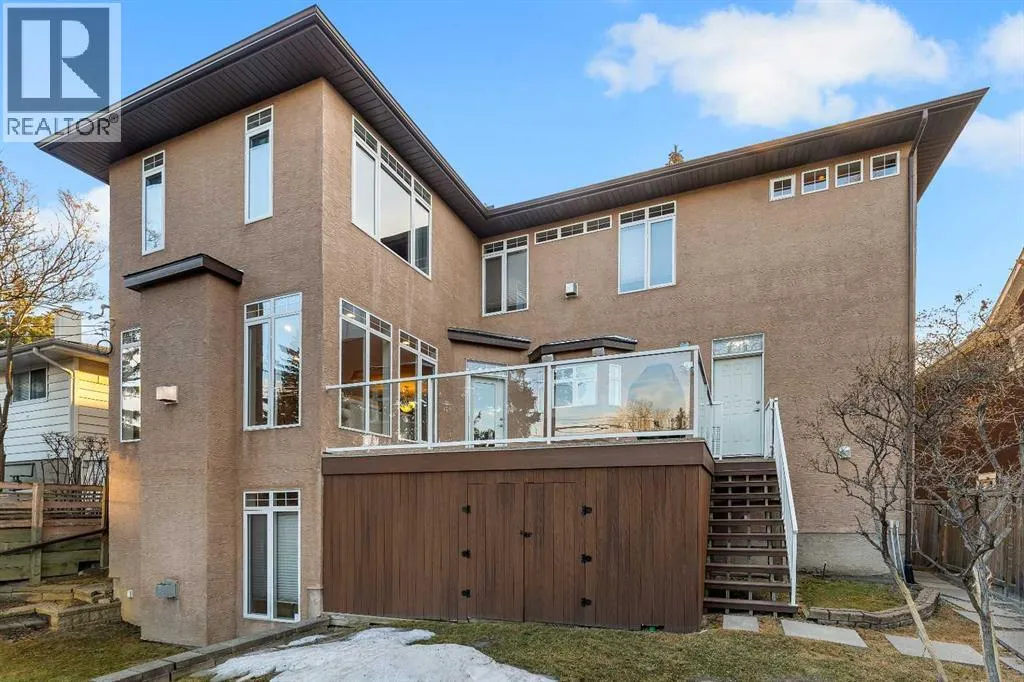 Located on one of the most sought after streets in Rosemont. This large executive style home is only steps away from the fabulous Confederation Park with wonderful walking and cycling pathways. Conveniently located close to public transit, easy access in and out of the community, and best of all there are great schools all the way from pre-school to University. This home features a total of four good size bedrooms which includes a bedroom on the main floor with it's own en-suite. A main floor office for those working from home, a wonderful open floor plan ideal for large family gatherings and entertaining. There is a huge expansive balcony/deck just off the living room; a great extension of entertaining space in the summer and a wonderful mudroom just off the kitchen. The kitchen features a built-in oven along with a gas cooktop and a warming drawer, and lots of cabinets for storage. The upper floor has three large bedrooms including a bonus room or TV room. The primary bedroom retreat features a large walk-in closet and a five piece en-suite and also has it's own fireplace; ideal for those cold wintry nights. The basement features a huge two part storage area just off the stairway; very unique feature indeed. The family or recreation room features all custom built-in cabinets. The mechanical room features two high efficiency furnaces, HRC unit and also has two A/C units for year round comfort. This home is in move-in condition; sit back and enjoy a morning coffee on the front porch or relax on the deck for a BBQ. Don't miss out on this opportunity to live on one of the best street in Rosemont. Call for your own private tour today. (id:27476)