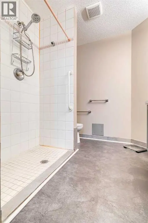 FULLY WHEELCHAIR ACCESSIBLE! This completely customized condo was designed at the build stage for fully independent wheelchair living. Offering 945 square feet, this bright, open concept corner unit is filled with natural light from large windows and only shares one wall, giving you both privacy and peace. The doorframe into the unit , onto the balcony and all interior doors are a full 36â wide so there are no barriers for a wheelchair to move around in the space. Plus the floor in the condo is a combination of laminate and vinyl plankâ¦.no carpet at all so movement is easy.The kitchen is a functional design with countertops set at 32 inches around both the sink and peninsula island for comfortable everyday use (Counter around the stove is standard height). The primary bedroom is spacious and can easily fit your king bed and furniture plus there is already a ceiling track present that can accommodate a lift. The ensuite features a fully wheel-in shower with a grab bar, designed for ease and safety. The bathroom vanities are also built at 32â height for good accessibility. Closet doors have already been removed for easy access and function. Accessibility extends beyond the unit itself, with ramp access into the building and onto the private balcony plus there is an elevator for access to the parkade. The unit comes with a storage locker and an assigned parking stall thatâs wider than most giving you more room to get in and out of the van. Located in a convenient area with easy access to shopping (TnT is across the street), services, and transit, this home offers true accessibility without compromise. This is a purpose built space that genuinely meets the needs of someone using a wheelchair while still feeling like home. A rare offering that requires no work or modifications. Move-in ready for those needing a wheelchair accessible, barrier free living! (id:27476)